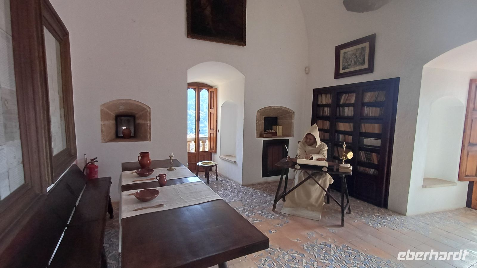 Valldemossa, ein malerisches Dorf mit schönen Wohnhäusern aus dem 16. und 17. Jahrhundert, vielen Geschäften und dem hübschen Kartäuserkloster, war heute unser Ziel. Die Reiseliteratur schreibt über den kleinen Ort " Wer Valdemossa nicht besucht, hat Mallorca nicht gesehen''. Berühmt wurde das Örtchen, weil Frédéric Chopin und seine Geliebte, die französische Schriftstellerin George Sand den Winter 1838/29 hier verbrachten. In dem Roman „Ein Winter auf Mallorca" kann man viel über das Leben der Mallorquiner zur damaligen Zeit erfahren. Im Kloster sind nicht nur Chopin's Wohnräume zu sehen, sondern auch eine historische Apotheke, die alte Bibliothek, eine Kunstausstellung, die schöne Kirche und ein gestalteter Klostergarten. Ein kleines Konzert mit Klaviermusik von Chopin rundete den interessanten Besuch ab.