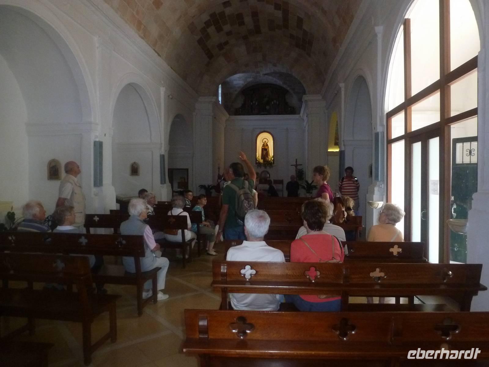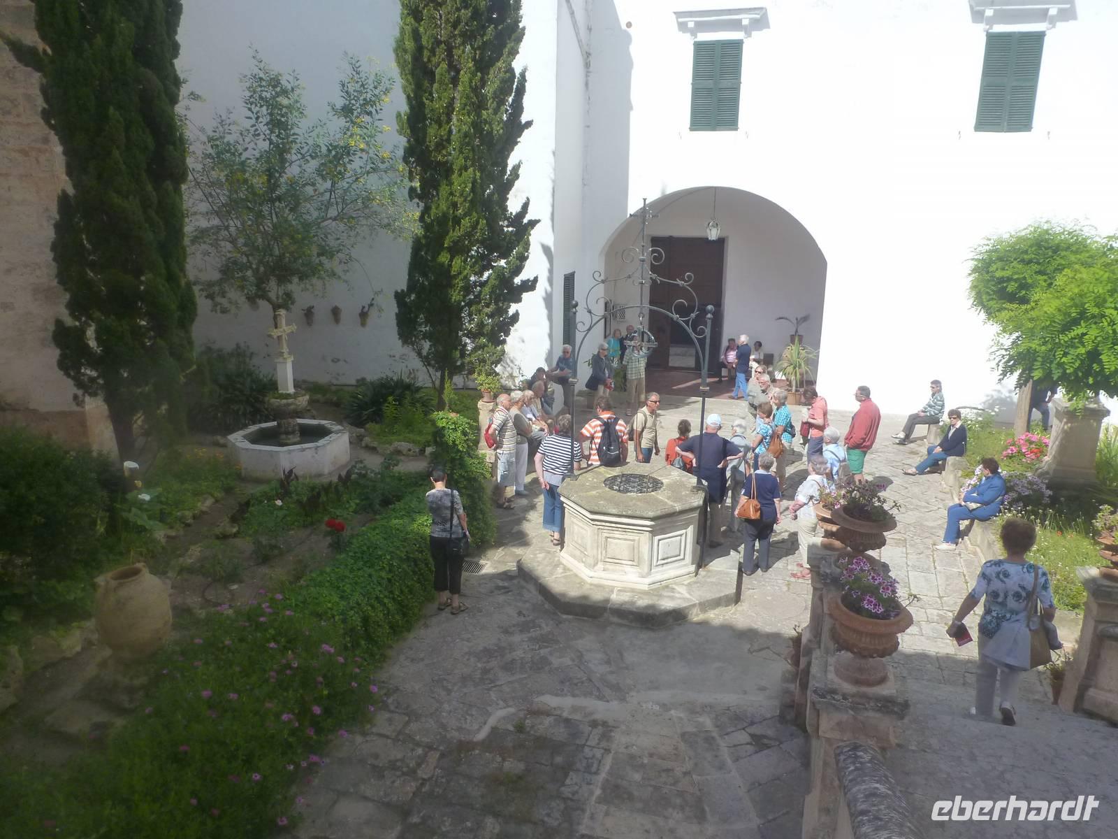 Ein Höhepunkt des Tages war die Auffahrt auf den höchsten Berg Menorca's , den 357 m hohen El Toro. Wir konnten einen phantastischen Rundblick, bei herrlich klarem Wetter über die ganze Insel genießen. Der durch die Menorquiner als heilig verehrte Berg trägt eine bedeutende Wallfahrtsstätte, das ehemalige Augustinerkloster mit der Marienkapelle.