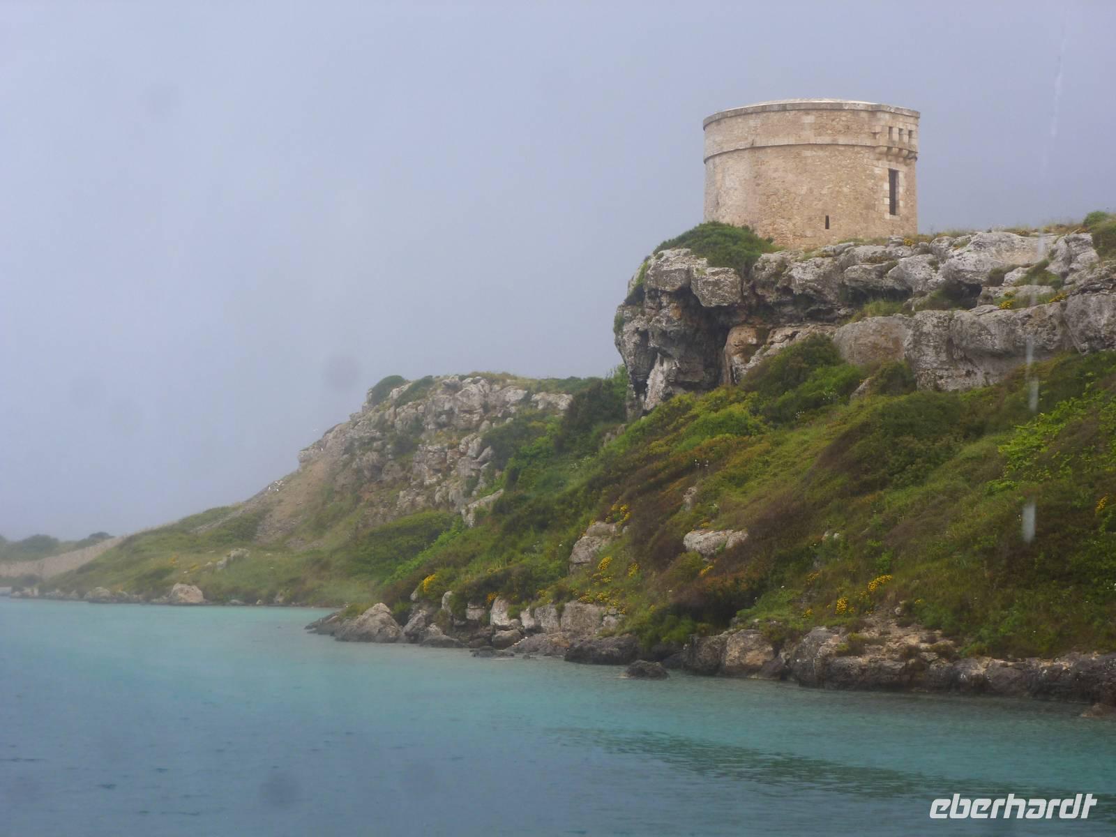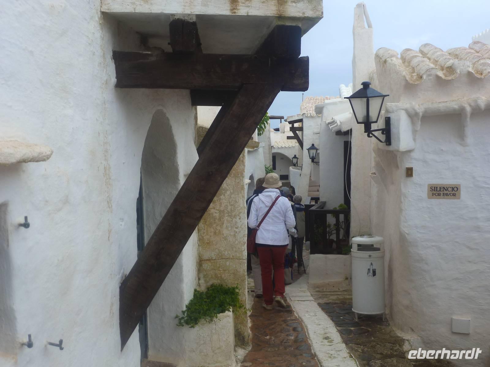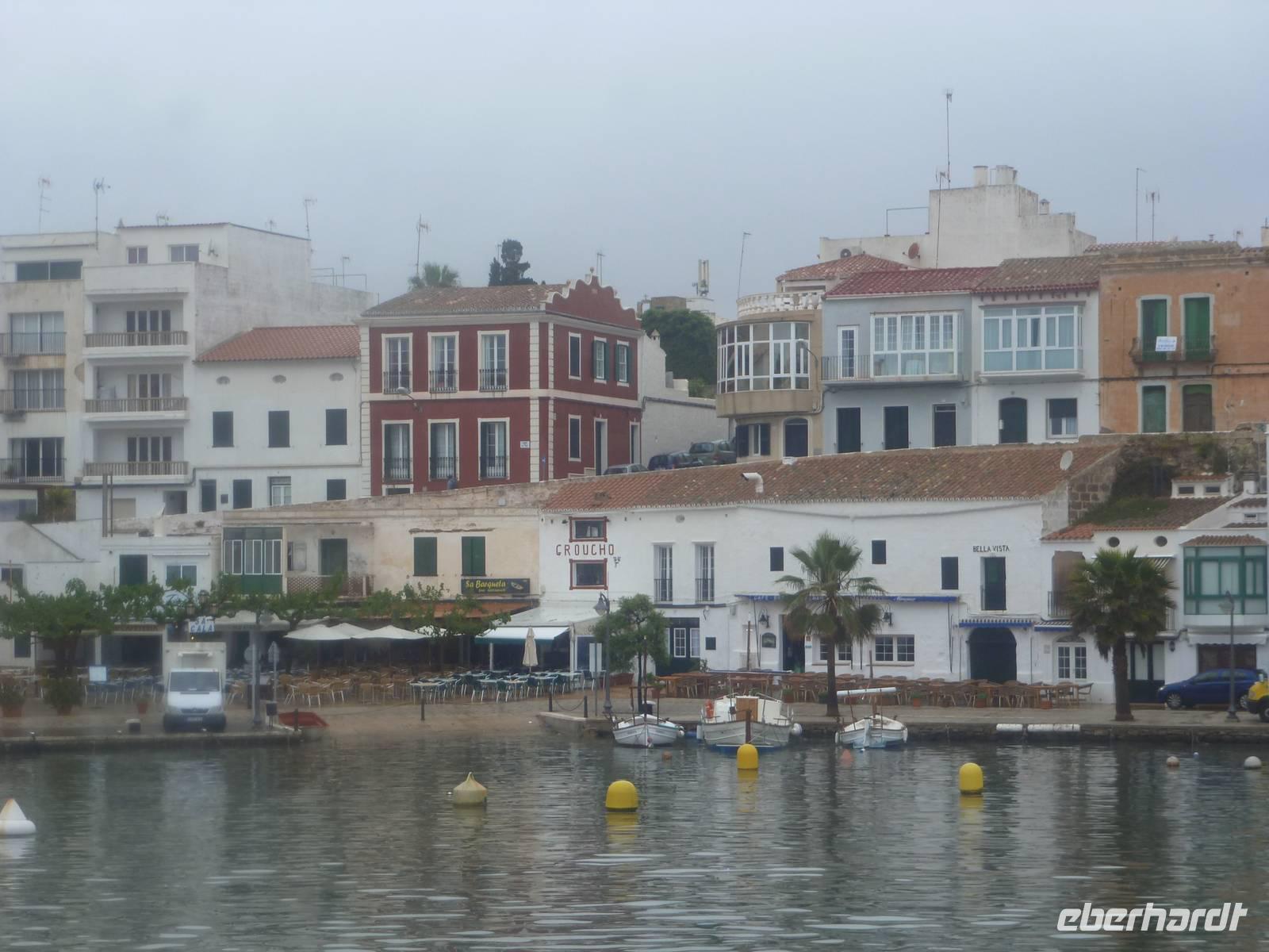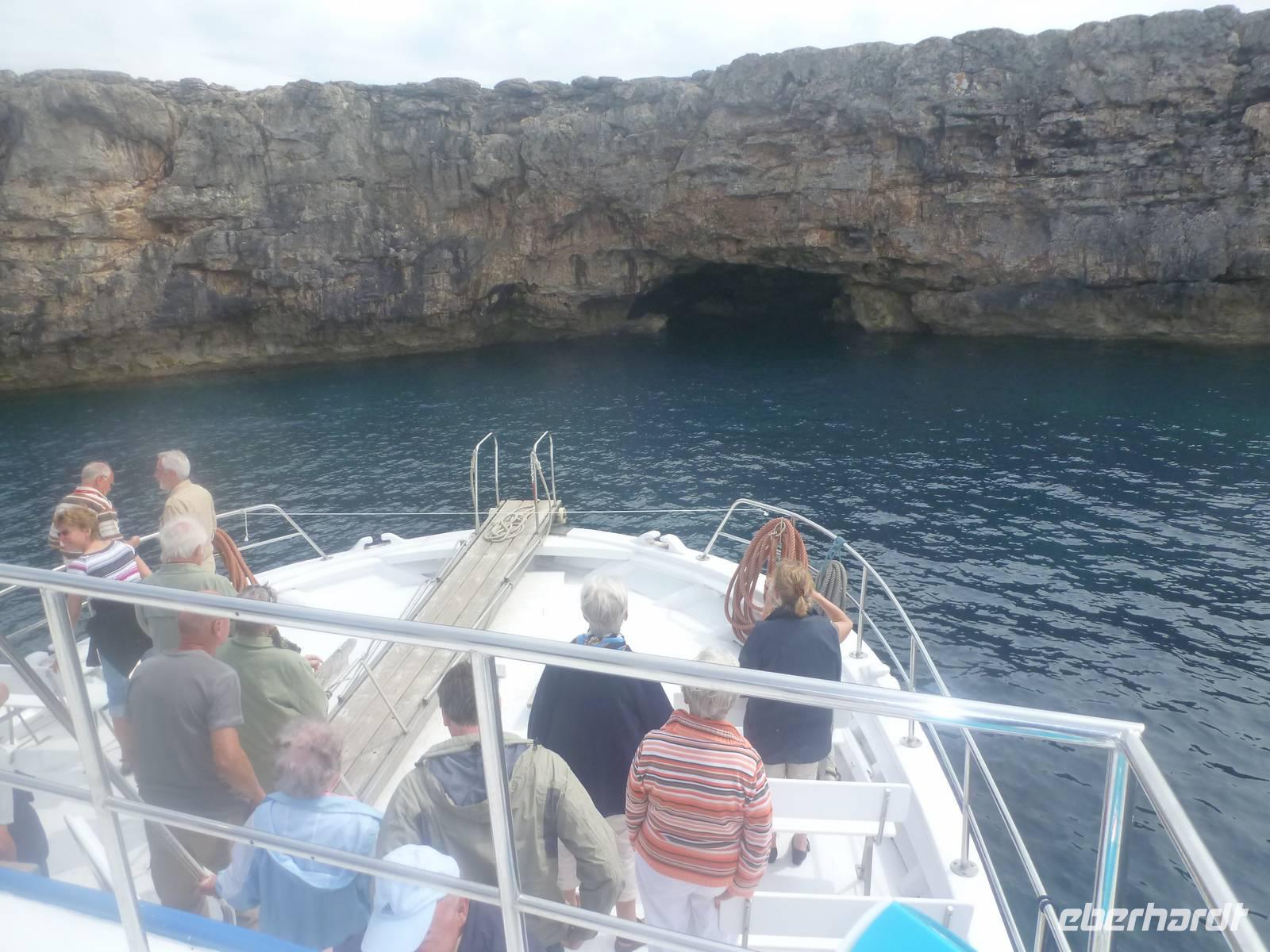 Bei einer Bootsfahrt durch den zweitgrößten Naturhafen der Welt, welchem Mahon seine Bedeutung verdankt, konnten wir einen Teil der Hauptstadt entdecken. Leider hatte der Himmel seine Schleusen geöffnet und es regnete in Strömen. In der Destillerie ''Xoriguer'' konnten wir uns bei einem kräftigen Schluck Gin oder Hierbas für den anschließenden Stadtrundgang stärken. Die Placa de s'Esplanada ist der Hauptplatz der Stadt. Von hier führte unser Weg durch die engen Straßen der Inselhauptstadt vorbei am alten Theater - 1829 erbaut, zur sehenswerten Marienkirche und zum Karmelitenkloster. Die schönsten Bauwerke und Paläste stammen aus dem 18. Jahrhundert. Am traditionellen Fischmarkt endet unser gemeinsamer Rundgang und jeder hat Zeit Mahon ein wenig auf eigene Faust zu erkunden.Nach der kleinen Mittagspause besuchen wir den Küstenort Binibeca - das weiße Dorf. Die Straßen des Ortes sind so schmal, das man nur hintereinander laufen kann. Die Cova d'en Xoroi, langgestreckte Naturhöhlen im Felsen, sind unser letzter Programmpunkt. Leider regnet es wieder in Strömen. Mit Regenschirmen bewaffnet erreichen wir über die Aussichtsterrassen das zu einer Diskothek umgestaltete Höhleninnere. Viele Tunnel, versteckte Nischen und kleine Tanzflächen machen Lust auf einen tollen Tanzabend mit einem romantischen Sonnenuntergang.