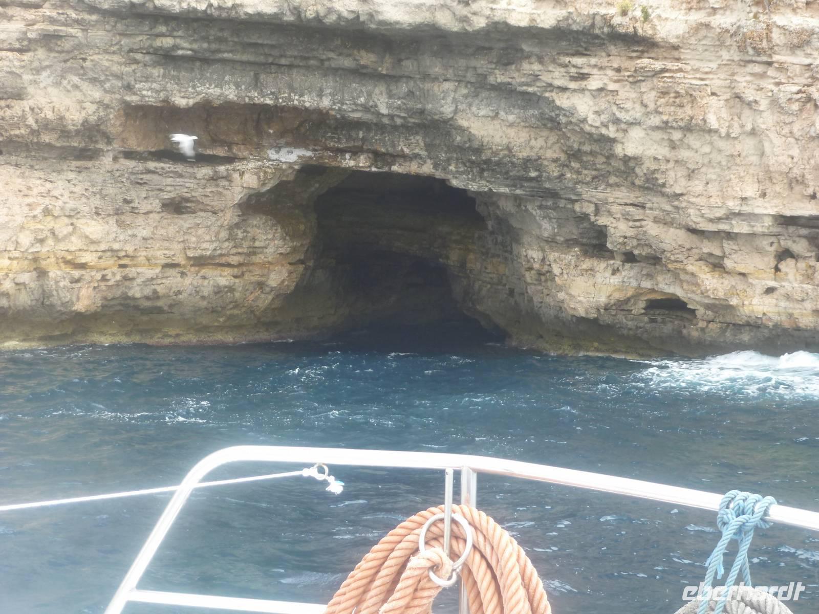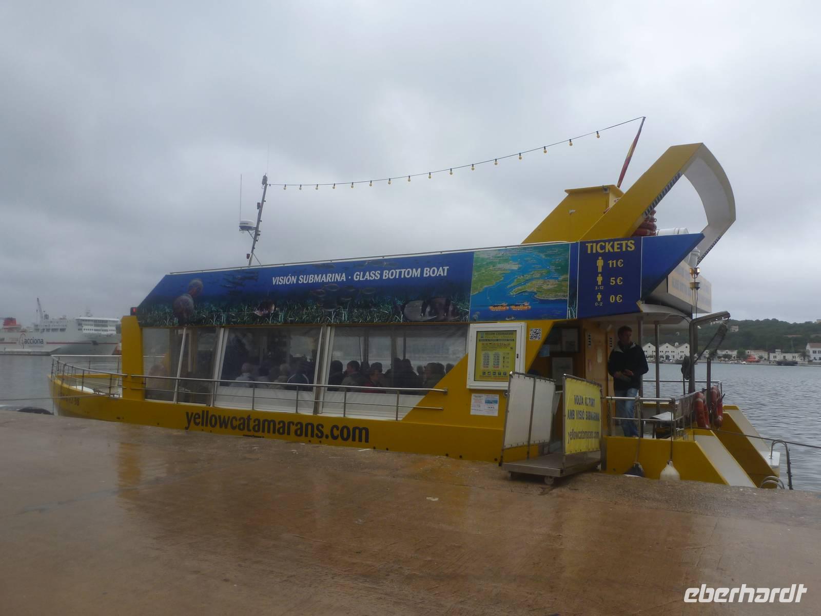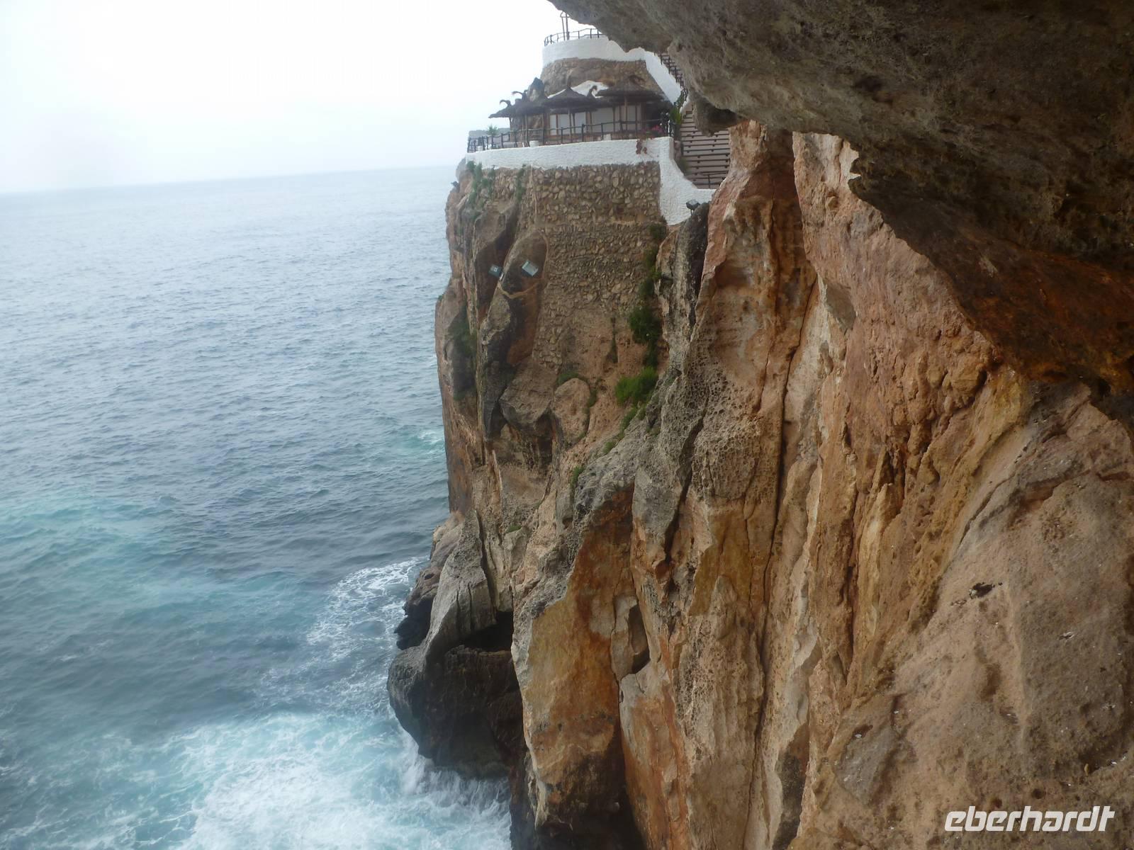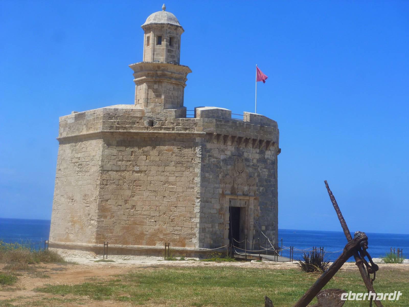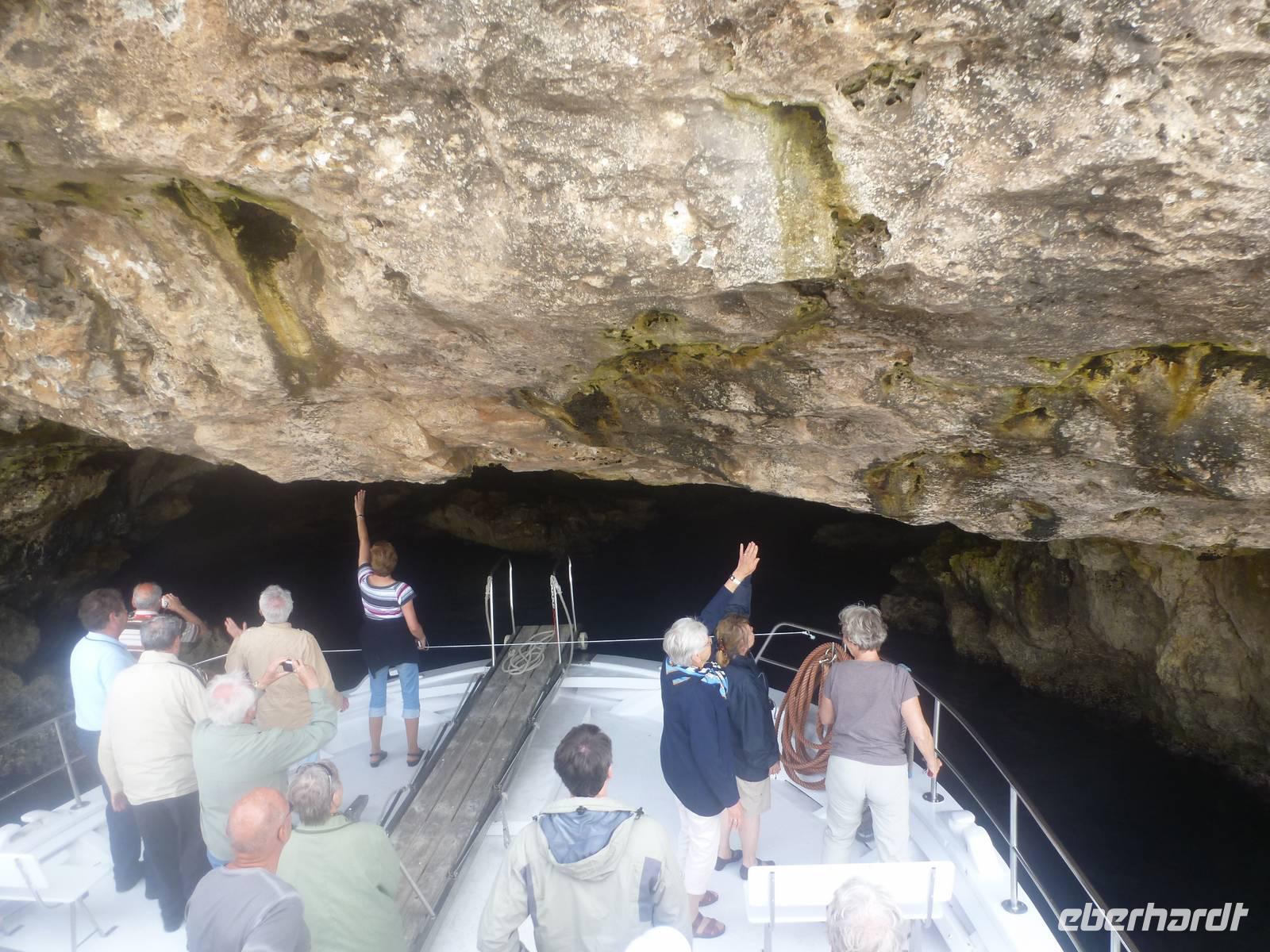 Bei einer Bootsfahrt durch den zweitgrößten Naturhafen der Welt, welchem Mahon seine Bedeutung verdankt, konnten wir einen Teil der Hauptstadt entdecken. Leider hatte der Himmel seine Schleusen geöffnet und es regnete in Strömen. In der Destillerie ''Xoriguer'' konnten wir uns bei einem kräftigen Schluck Gin oder Hierbas für den anschließenden Stadtrundgang stärken. Die Placa de s'Esplanada ist der Hauptplatz der Stadt. Von hier führte unser Weg durch die engen Straßen der Inselhauptstadt vorbei am alten Theater - 1829 erbaut, zur sehenswerten Marienkirche und zum Karmelitenkloster. Die schönsten Bauwerke und Paläste stammen aus dem 18. Jahrhundert. Am traditionellen Fischmarkt endet unser gemeinsamer Rundgang und jeder hat Zeit Mahon ein wenig auf eigene Faust zu erkunden.Nach der kleinen Mittagspause besuchen wir den Küstenort Binibeca - das weiße Dorf. Die Straßen des Ortes sind so schmal, das man nur hintereinander laufen kann. Die Cova d'en Xoroi, langgestreckte Naturhöhlen im Felsen, sind unser letzter Programmpunkt. Leider regnet es wieder in Strömen. Mit Regenschirmen bewaffnet erreichen wir über die Aussichtsterrassen das zu einer Diskothek umgestaltete Höhleninnere. Viele Tunnel, versteckte Nischen und kleine Tanzflächen machen Lust auf einen tollen Tanzabend mit einem romantischen Sonnenuntergang.