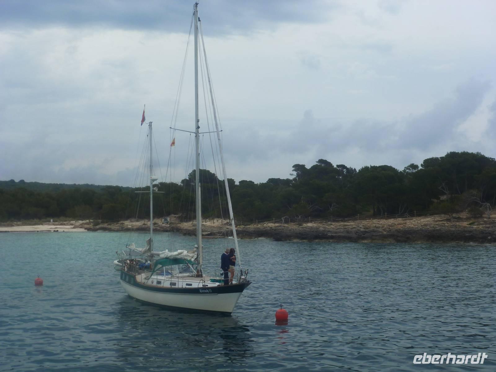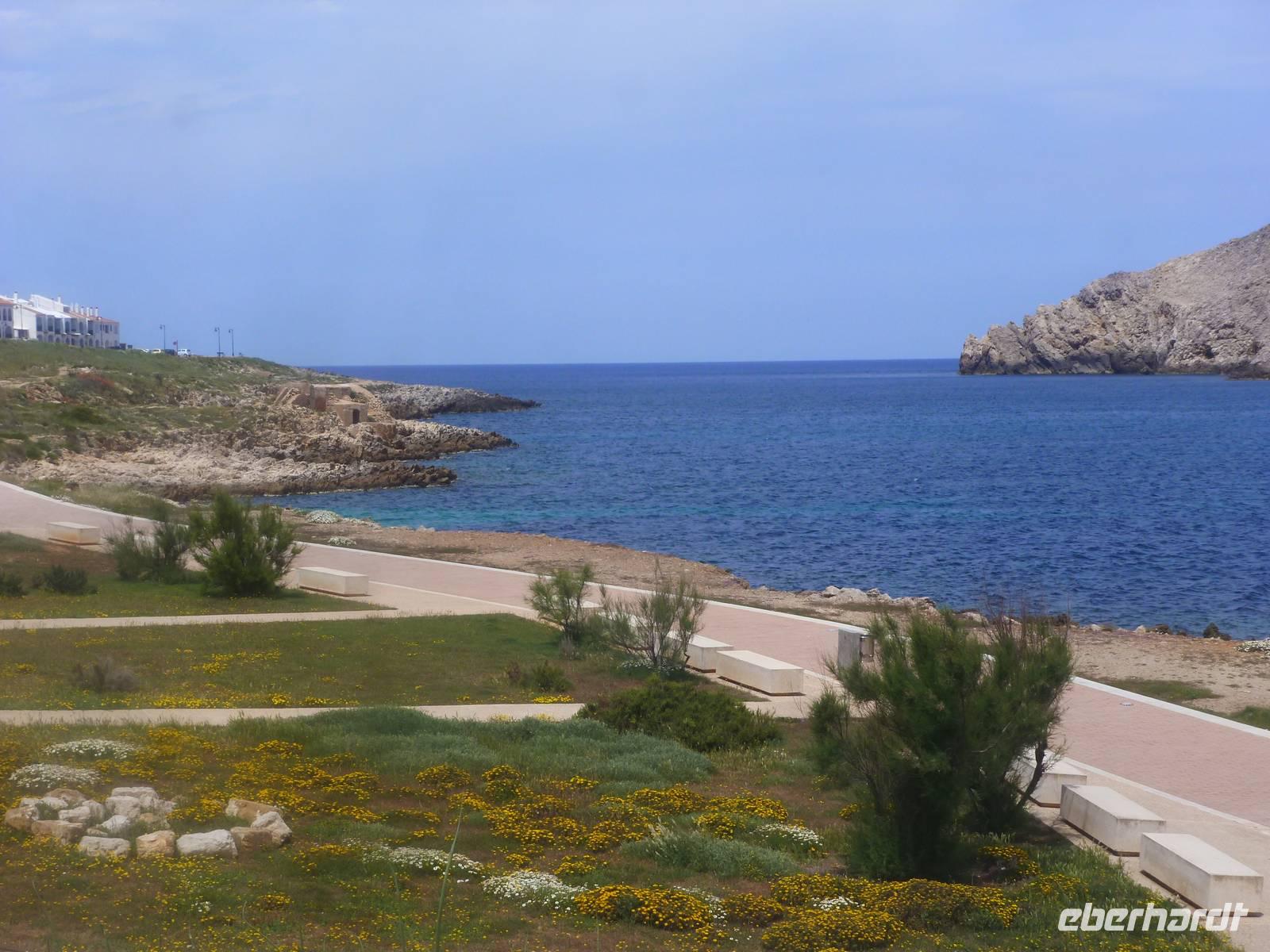 Zur Mittagszeit erreichen wir den kleinen Fischerort Fornells. Hier gibt es nicht nur herrlichen Sandstrand, sondern auch viele Restaurants und Bars. Die bekanntesten unter ihnen bieten als Spezialität Langustensuppe an und mindestens einmal im Jahr kommt der spanische König hierher, um diese Spezialität zu geniessen. Zwischen 50 und 80 € kostet das kulinarische Vergnügen, nix für uns.