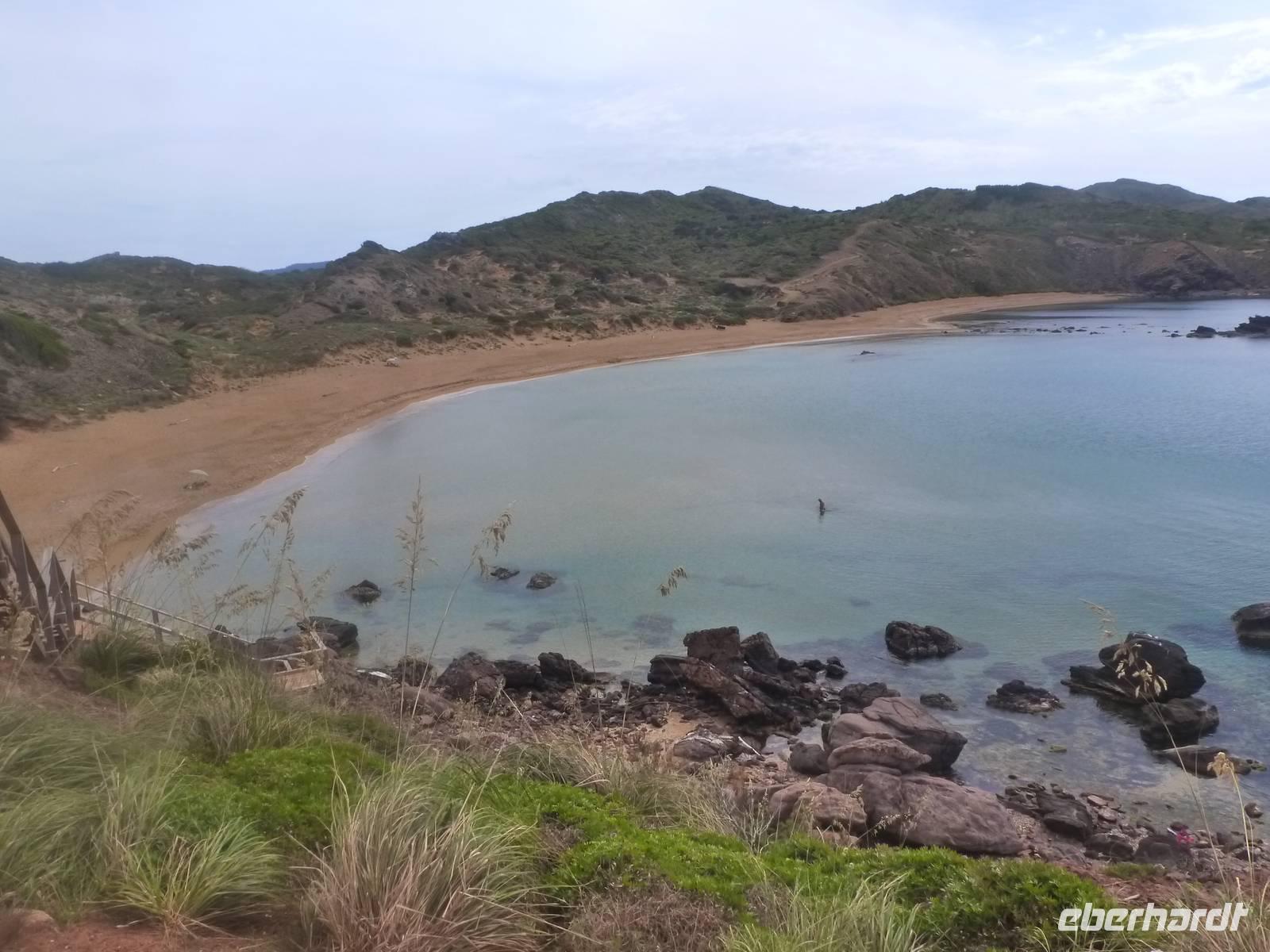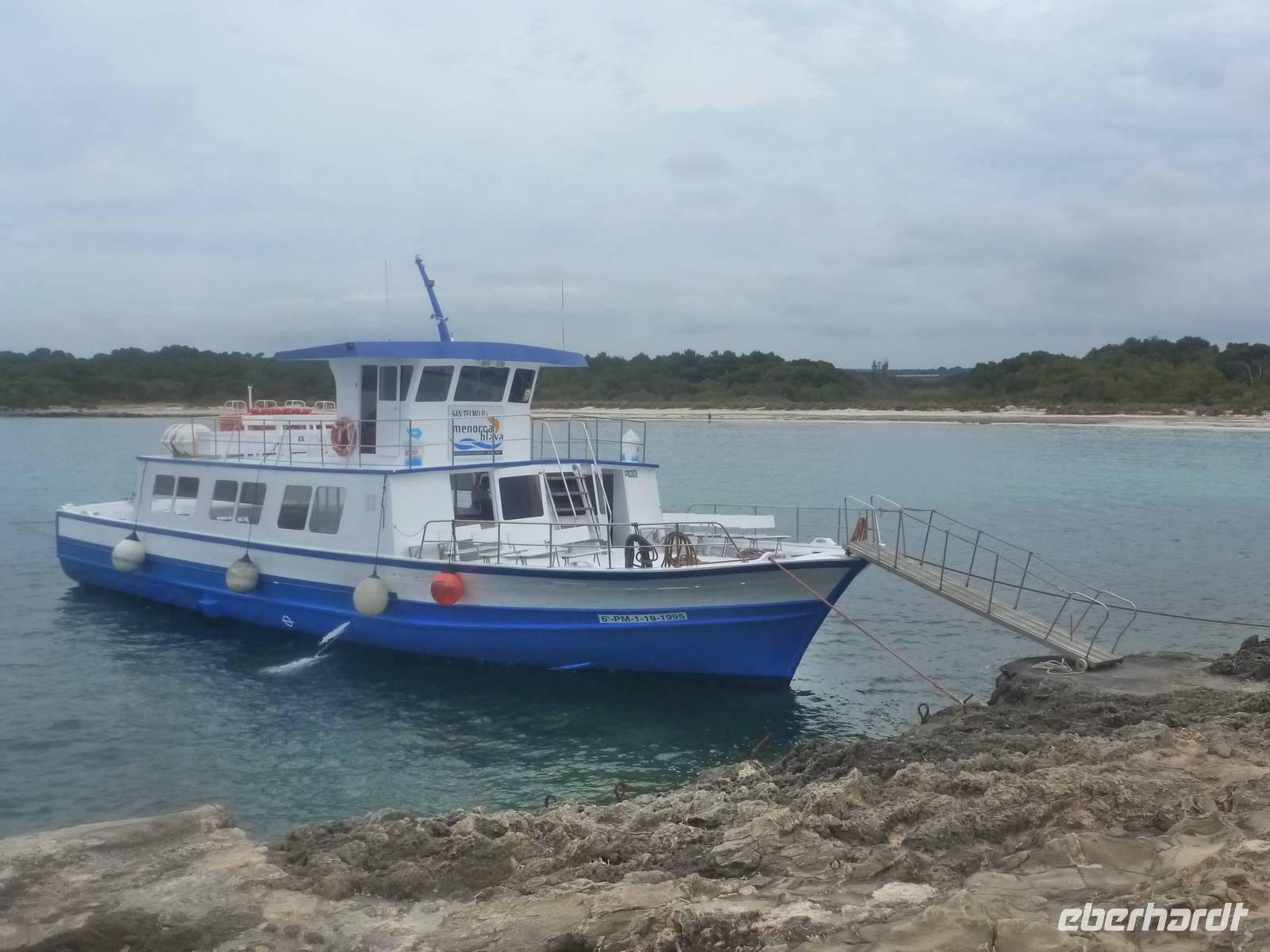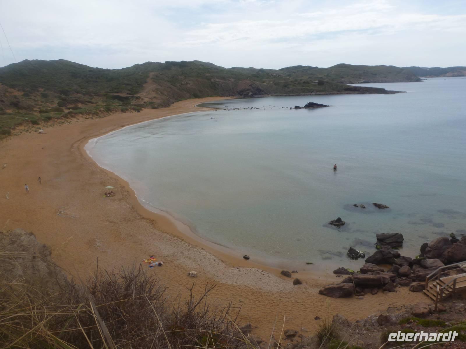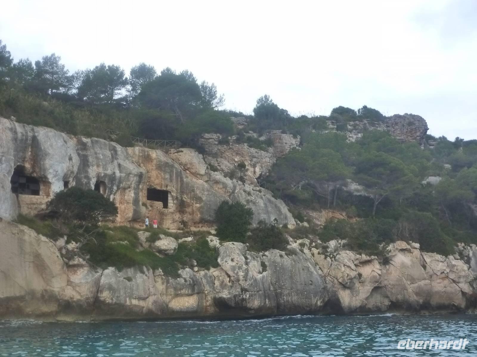 Nach einem gemütlichen Frühstück fahren wir zum Hafen von Ciutadella und besteigen das Ausflugsschiff „San Telmo". Schade heute ist es bewölkt also nix mit Sonnenbaden. Mit unserer Crew schippern wir auf das offene Meer und erreichen nach ca. 90 Minuten die Bucht von Son Saura, unserem ersten Halt. Während die Paella zubereitet wird, wandern wir mit Ronald entlang des Küstenwanderweges zur Naturbucht Es Talaier. Wir erhalten viele Informationen zu Flora und Fauna der Insel und erleben fast unberührte Natur. Auf dem Rückweg springen einige Mutige aus unserer Gruppe ins kühle Nass und gleichzeitig fängt es auch noch an zu regnen. An Bord zurück ließen wir uns eine leckere von der Besatzung zubereitete Paella schmecken. Danach ging es entlang der felsigen Küste bis zur Cala Galdana an der Westküste Menorcas und weiter zur Cala Turqueta, unserem nächsten Stopp. Über kleine Wege entlang der steilen Küste erreichen wir die wunderschöne, kleine ruhige Badebucht mit herrlichem Sandstrand und kleinen Felshöhlen in denen Wanderer, Angler und Jugendliche gelegentlich übernachten. Bei zum Teil ruhiger See erreichen wir am Nachmittag wieder unsere Heimathafen.