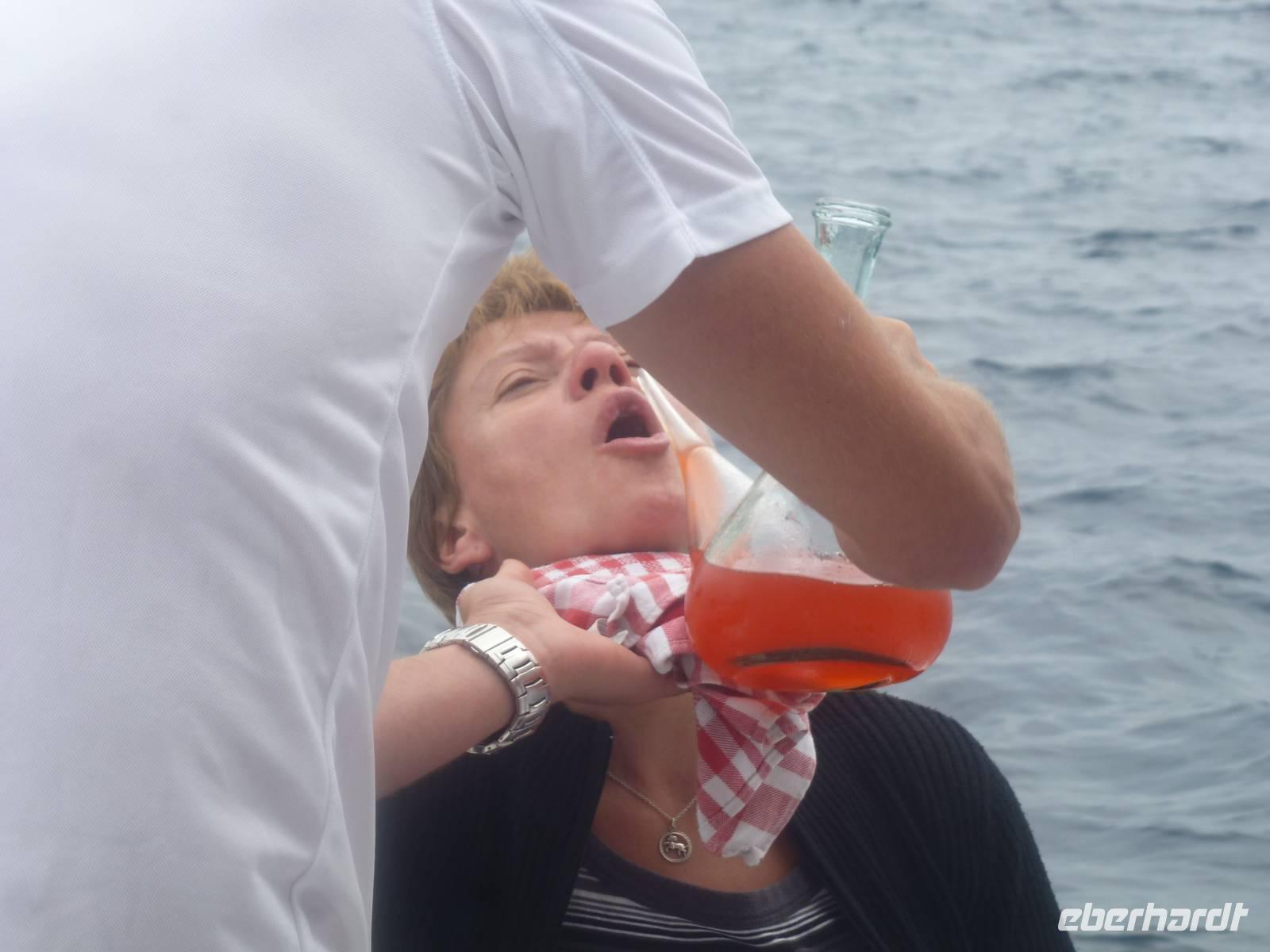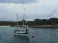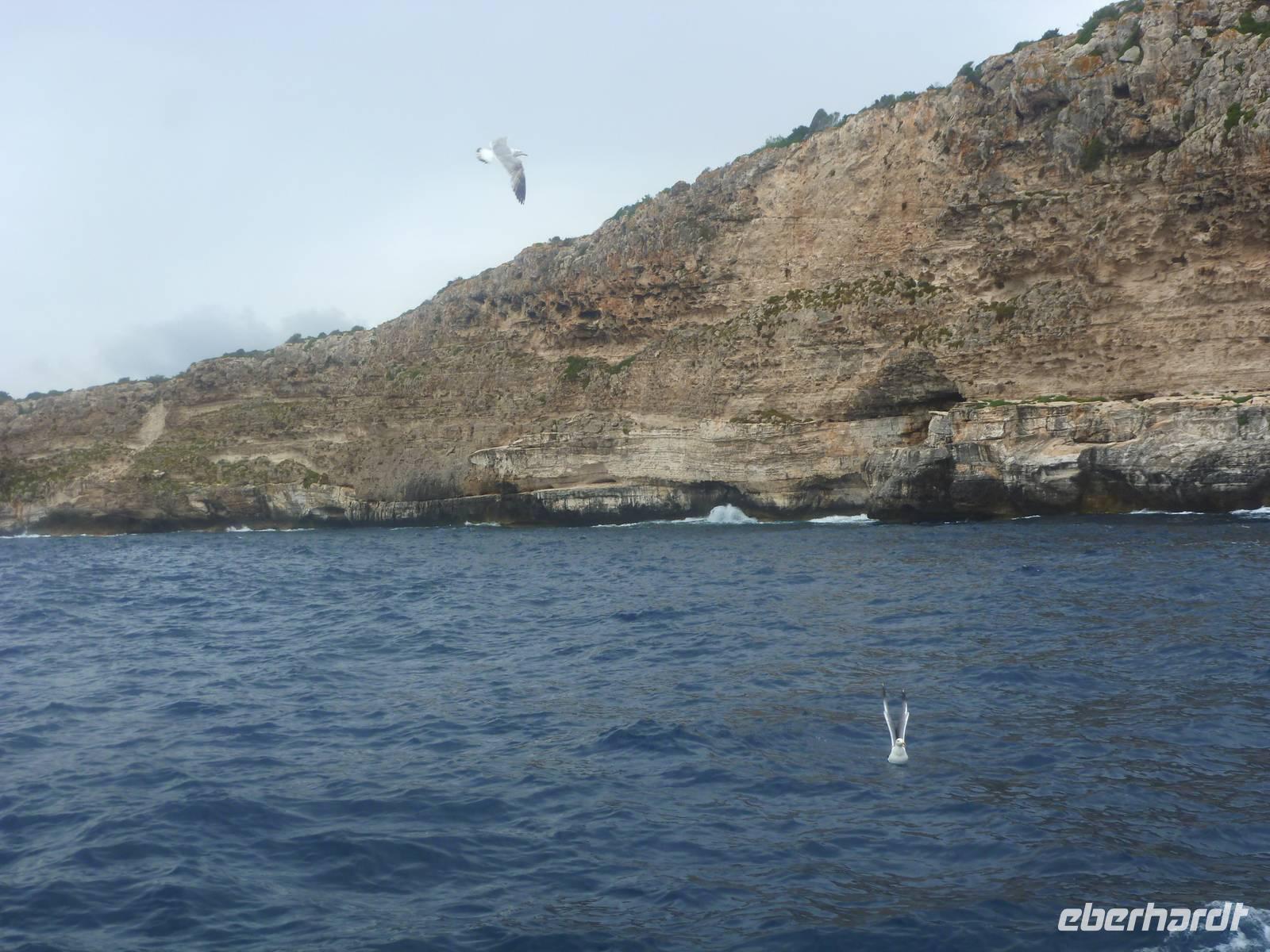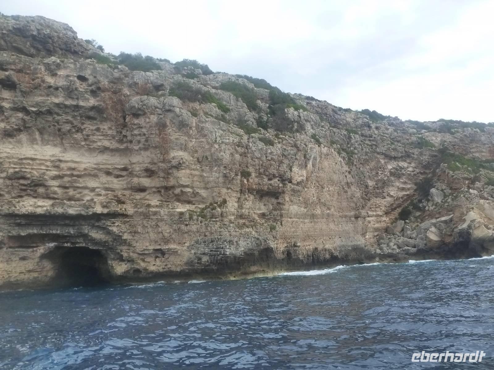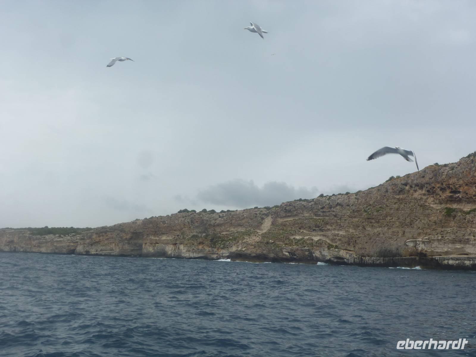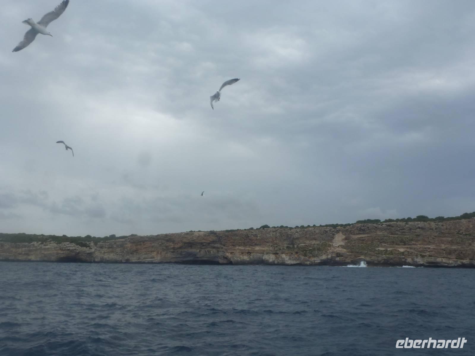Nach einem gemütlichen Frühstück fahren wir zum Hafen von Ciutadella und besteigen das Ausflugsschiff „San Telmo". Schade heute ist es bewölkt also nix mit Sonnenbaden. Mit unserer Crew schippern wir auf das offene Meer und erreichen nach ca. 90 Minuten die Bucht von Son Saura, unserem ersten Halt. Während die Paella zubereitet wird, wandern wir mit Ronald entlang des Küstenwanderweges zur Naturbucht Es Talaier. Wir erhalten viele Informationen zu Flora und Fauna der Insel und erleben fast unberührte Natur. Auf dem Rückweg springen einige Mutige aus unserer Gruppe ins kühle Nass und gleichzeitig fängt es auch noch an zu regnen. An Bord zurück ließen wir uns eine leckere von der Besatzung zubereitete Paella schmecken. Danach ging es entlang der felsigen Küste bis zur Cala Galdana an der Westküste Menorcas und weiter zur Cala Turqueta, unserem nächsten Stopp. Über kleine Wege entlang der steilen Küste erreichen wir die wunderschöne, kleine ruhige Badebucht mit herrlichem Sandstrand und kleinen Felshöhlen in denen Wanderer, Angler und Jugendliche gelegentlich übernachten. Bei zum Teil ruhiger See erreichen wir am Nachmittag wieder unsere Heimathafen.
