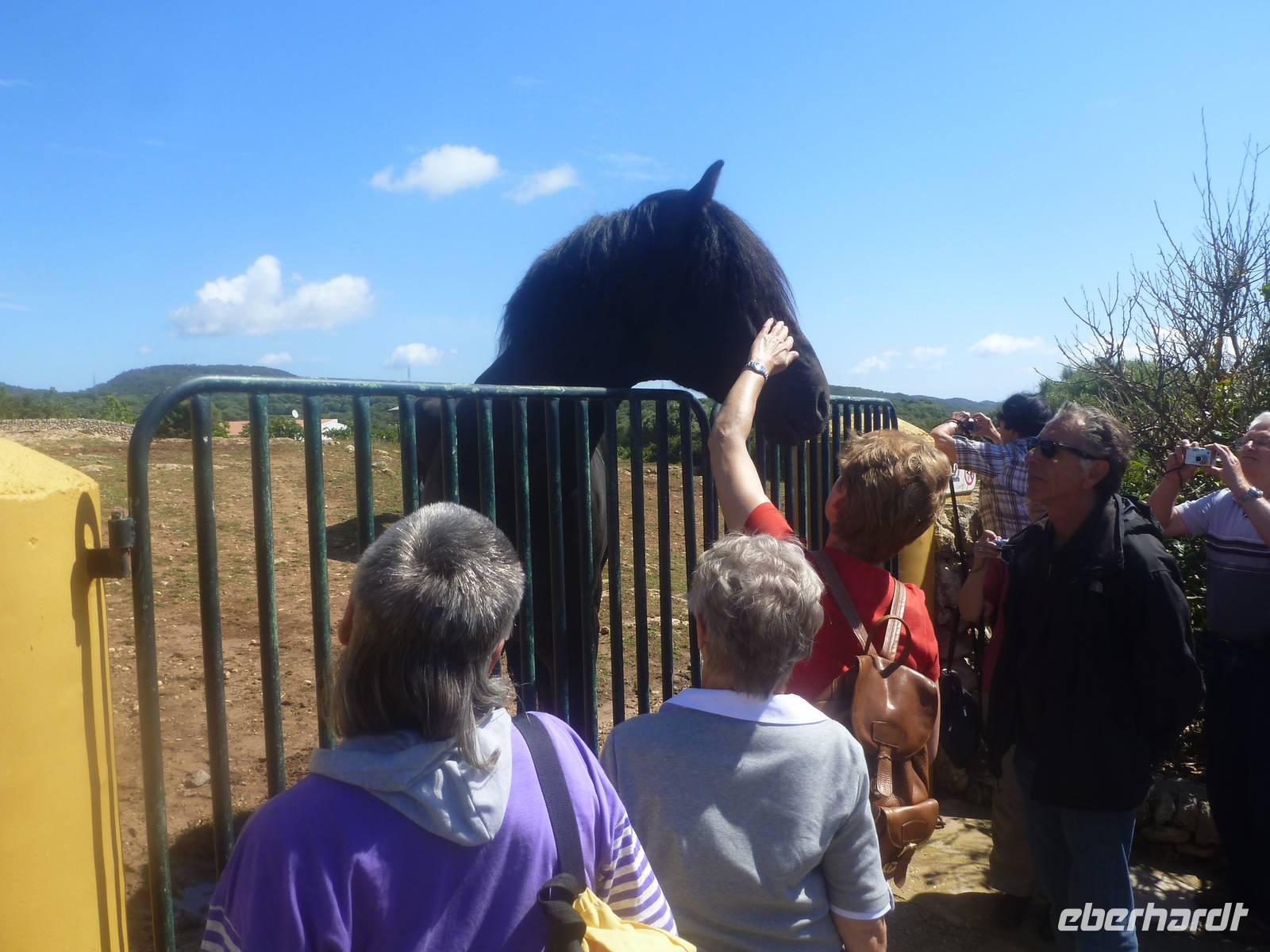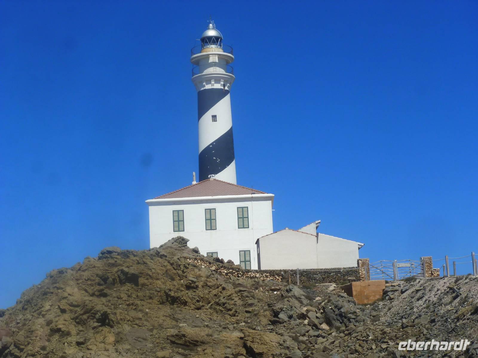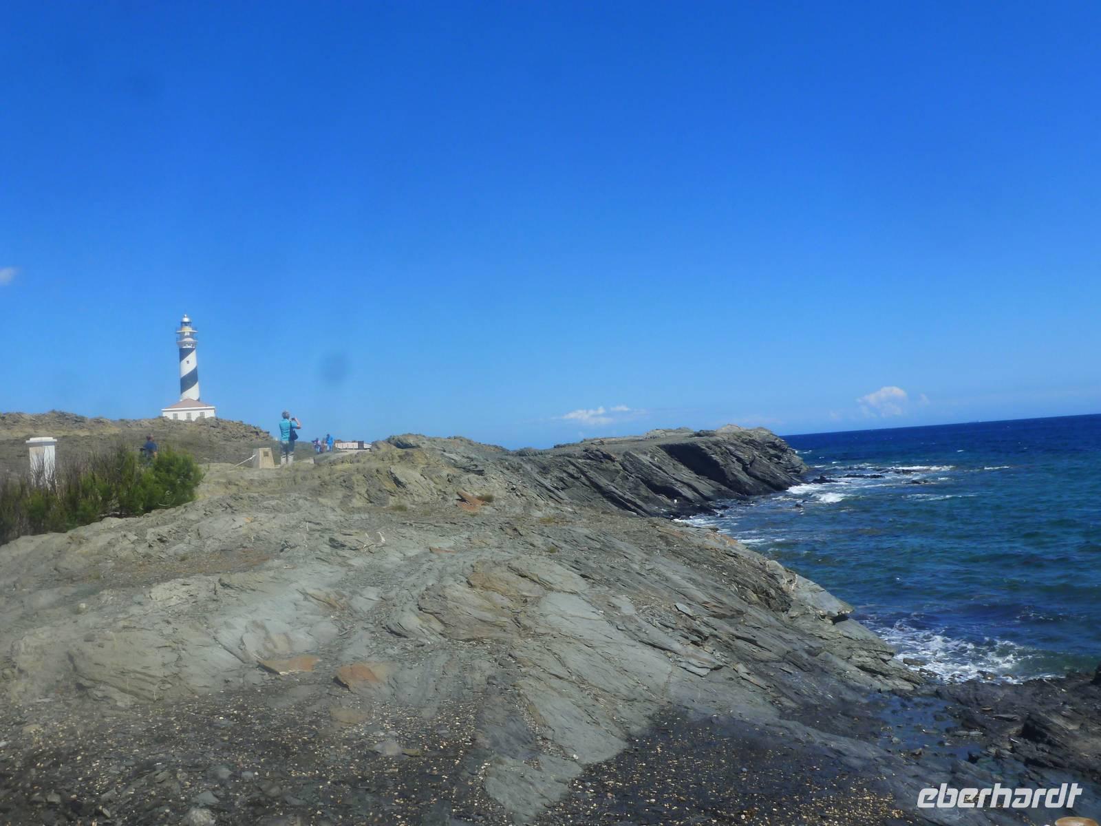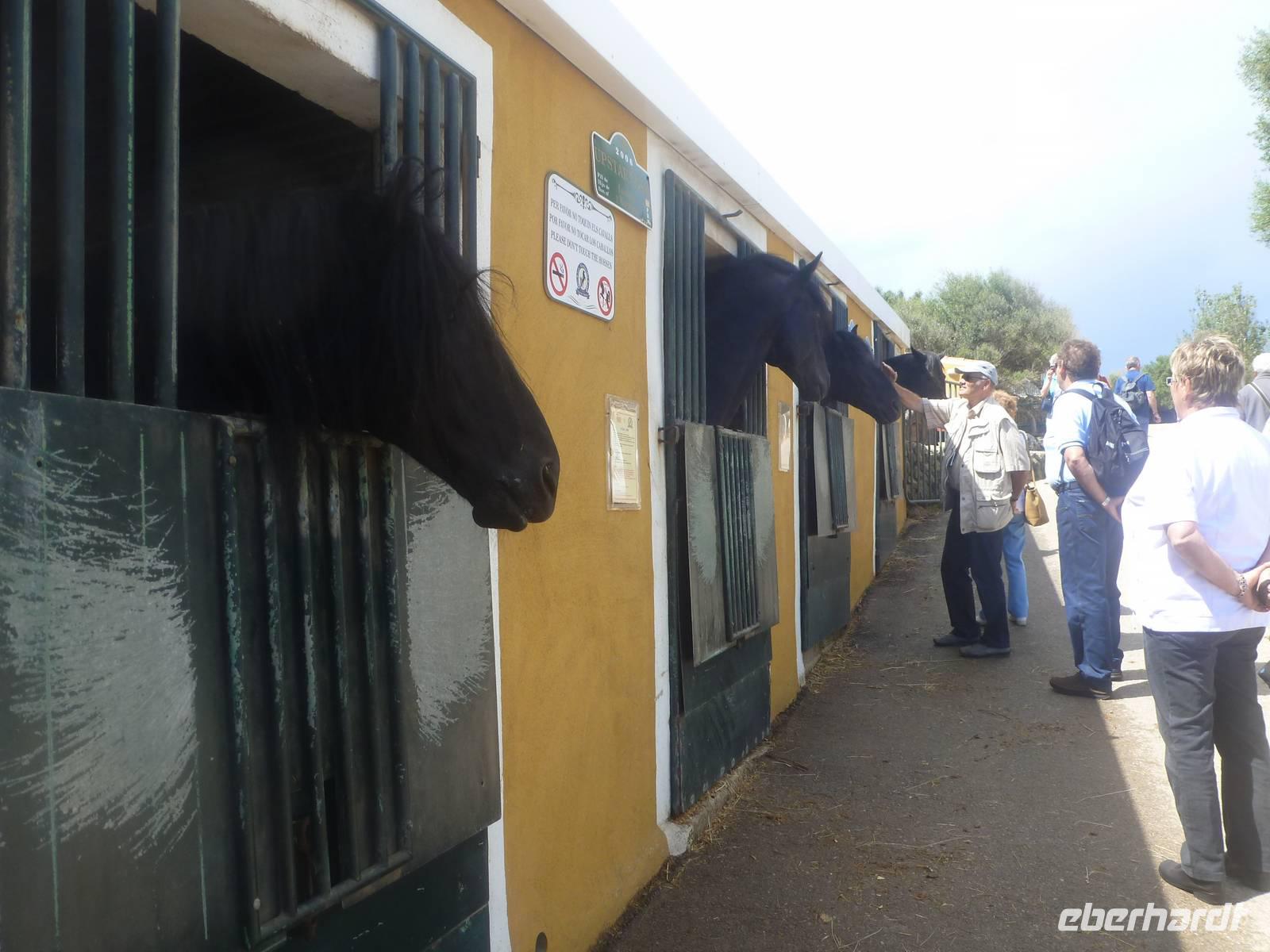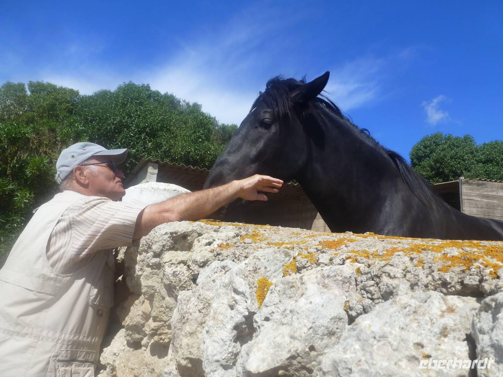 Auf einer kleinen privaten Finca erfahren wir die Geheimnisse der Herstellung des berühmten Mahon-Käses. Eine Verkostung durfte natürlich nicht fehlen, dazu konnten wir einen guten einheimischen Wein genießen. Unweit der Finca bestaunten wir auf einem Gestüt die berühmten menorquinische Rassepferde. Herrlich wilde und kräftige Tiere. Natur pur erwartet uns im Naturpark S'Albufera des Grau, ein Paradies für Wanderer, Ornithologen und Geologen. Bei einer kleinen Wanderung durch Kiefernwälder und Olivenhaine, sowie entlang der Bucht von Addaia erzählt uns Roland viel über den Schutz seltener Tier- und Pflanzenarten, sowie die vielen notwendigen Maßnahmen zum Erhalt des Reservates. Dann geht es zum Cap Favaritx, dem erdgeschichtlich ältestem Teil der Insel, man nennt es auch „das Ende der Welt". Inmitten tiefschwarzer kahler Schieferlandschaft steht der schwarz-weiß gestreifte Leuchtturm und warnt vorbeifahrende Schiffe vor den gefährlichen Felsen der zerklüfteten Küste. Nur die Sonne und der stürmische Wind begleiten uns auf unserem kleinen Spaziergang.