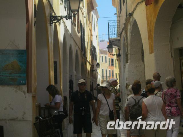 Nach dem Frühstück erwartete uns Ramon am Bus u. wir sollten bald erfahren, warum jeder menorquinische Bauer "steinreich ist". Zuerst ging es in die Vergangenheit, zu den ältesten, erhaltenen, aus Steinen aufgeschichteten, Grabmälern. Diese wurden 1400 v.Ch angelegt aber erst 1960 (dank einer Beihilfe)ausgegraben u.restauriert. Dort erklärte uns Ramon auch den Gebrauch einer Steinschleuder,die für die Geschichte Menorcas von Bedeutung war. Steine der Neuzeit sollten uns einen weiteren Einblick verschaffen. Dazu besuchten wir einen alten Steinbruch. Dieser wird sogar für Sommerkonzerte genutzt u. ein botanischer Garten, als Ruheoase , wude angelegt. Wir genossen die Stille u.die Düfte der verschiedenen Kräuter. Jetzt sollte es etwas lebendiger werden u. wir fuhren zur ehem.Inselhauptstadt Ciutadella. Dort konnten wir nun wiederum bestaunen, was aus den abgebauten Kalksteinen, des Steinbruchs, geworden ist. Tolle verwinkelte Straßen mit alten Stadtpalästen, ließen uns an eine längst vergangene Zeit denken.