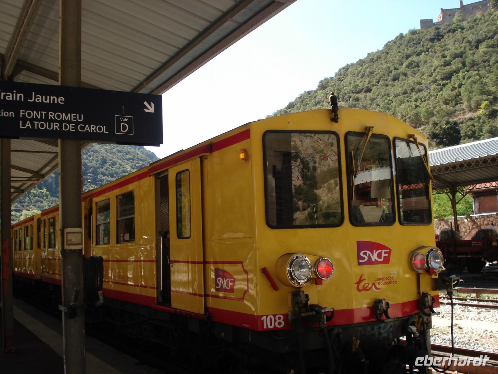 Der heutige Tag begann in Gruissan und endete in Andorra, unserem neuen Übernachtungsort. Perpignan, die Hauptstadt des Roussillon, war Ziel unseres ersten Ausfluges. Am alten Stadttor begannen wir unseren gemeinsamen Rundgang und stellten fest, dass die Stadt ist sehr hübsch und gemütlich zum Bummeln und Shoppen ist. Uns fiel der Abschied daher nicht leicht, aber ein weiterer Höhepunkt wartete auf uns: die Fahrt mit dem Gelben Zug. Auf unserer Busfahrt nach Villefranche-de-Conflent, der Bahnstation, bekamen wir einen ersten Eindruck von der beeindruckenden und schönen Bergwelt der Pyrenäen. Dank des schönen Wetters und der hervorragenden Sicht konnten wir viele Gipfel dieses über 3000 m hohen Gebirges gut sehen - u.a. den Canigou. Villefranche selbst ist ein Bergdorf wie aus dem Bilderbuch, überragt von einer adlernestartigen Festung. Wir nutzten die Zeit hier zum Bummeln und zum Mittagessen, bevor wir in den Gelben Zug nach Font Romeu