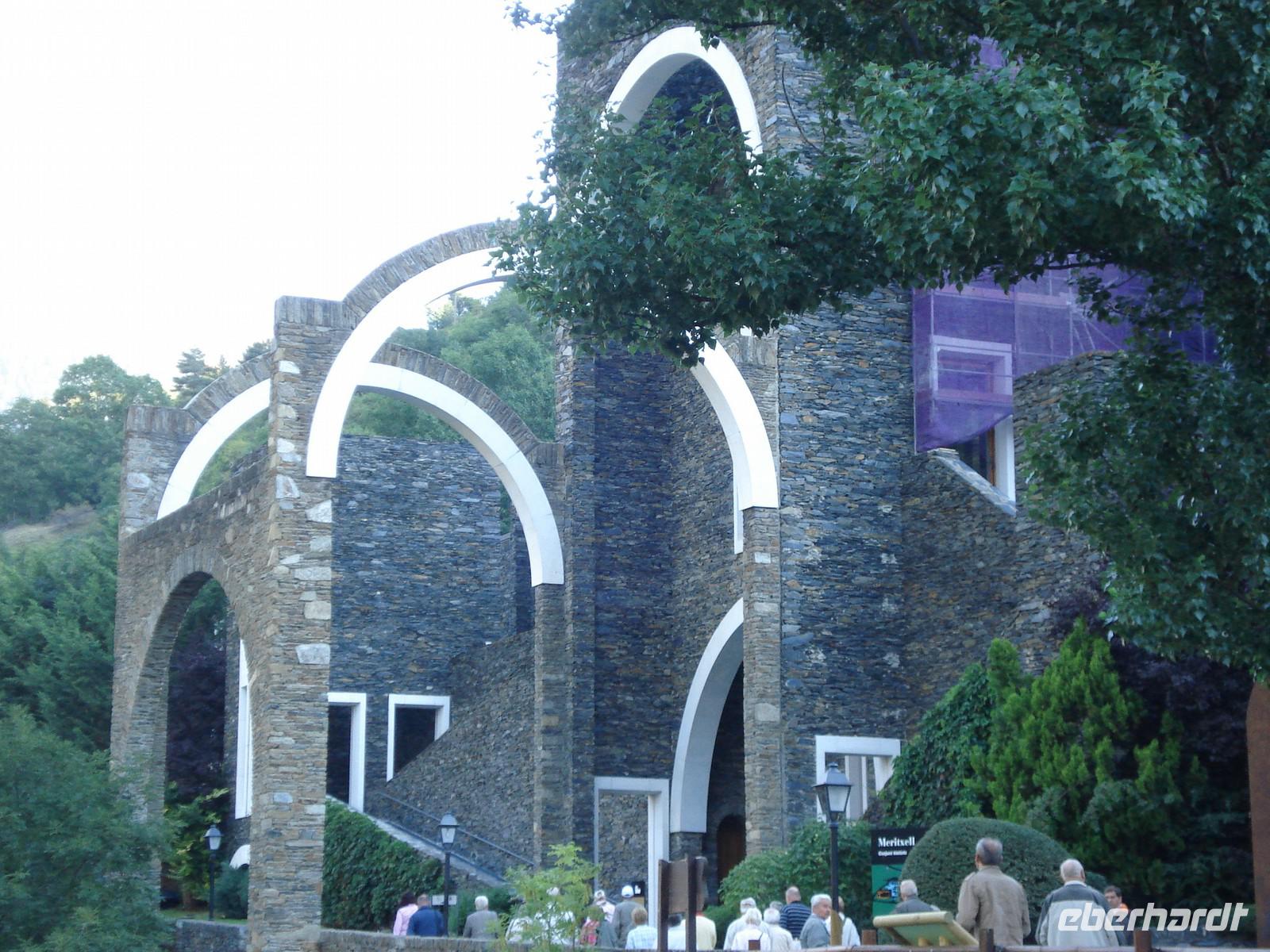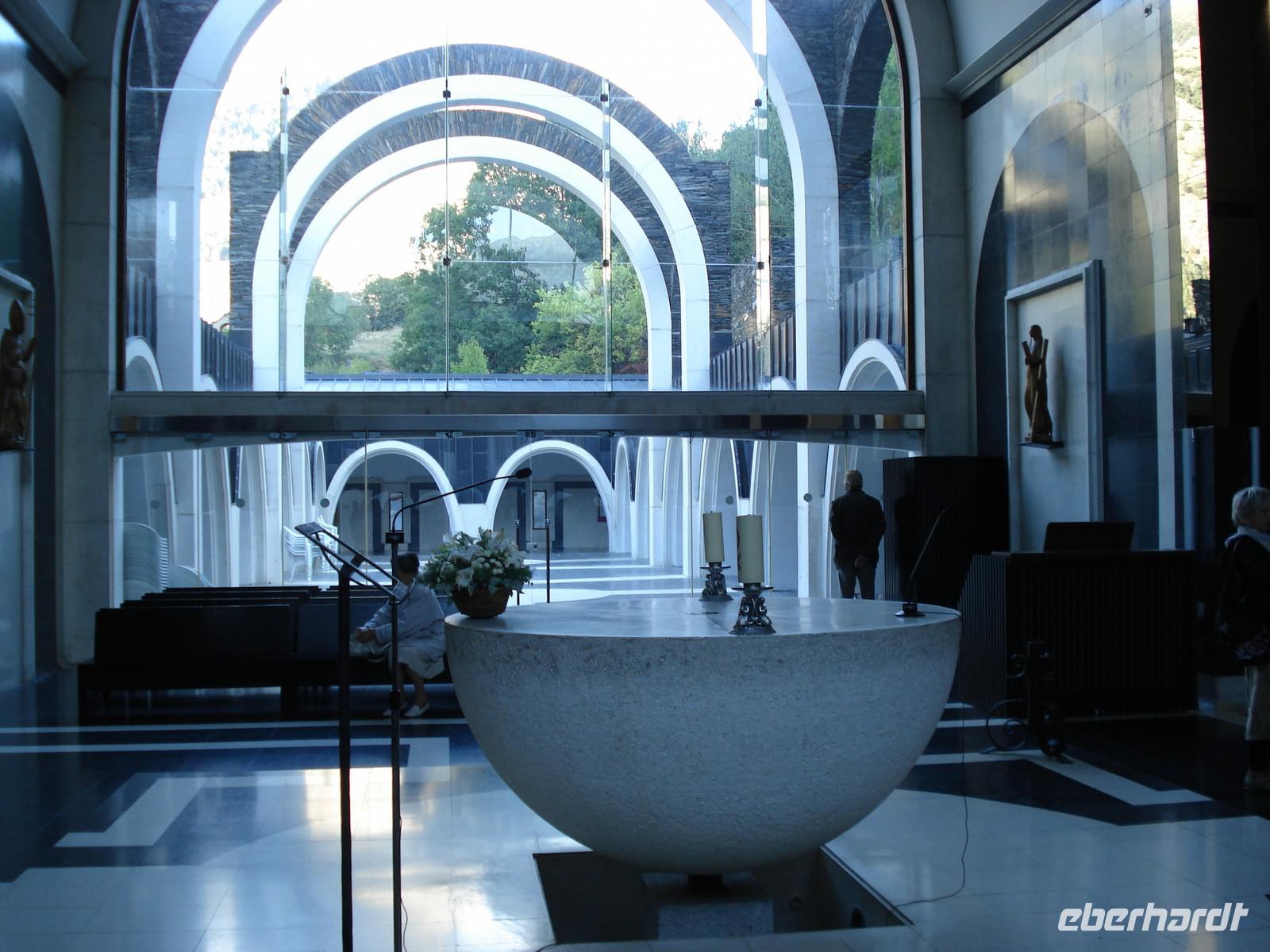 Heute hieß es leider schon wieder Gepäckladen und Abschiednehmen vom „3. Juwel" unserer Reise.Bevor wir Andorra verließen, statteten wir aber dem „nationalen Heiligtum" Meritxell noch einen ausgiebigen Besuch ab. Diese aufwändig gestaltete, moderne und große Kirche ersetzt eine jahrhundertealte, durch Brand zerstörte Kapelle mit einer eindrucksvollen, ebenfalls jahrhundertealten Marienstatue. Alt und neu sind hier in Meritxell wunderbar vereint und geben ein ganz besonderes Ambiente. Ein andorranisches Mittagessen in einer toll gelegenen Gaststätte hoch in den Bergen von Os de Civis rundete den Aufenthalt in Andorra schließlich ab. Es gab eine leckere Suppe, überbordend viele Grillgerichte sowie reichlich Wein, Sangria, Likör. Alles umrahmt von Livemusik... Wäre die Fahrtstrecke nach Barcelona nicht so sehenswert gewesen, hätten sicher alle eine Siesta im Bus gemacht. In Barcelona war an diesem Abend großes Fest - La Mercé - und so stürzten sich einige von uns in das Getümmel an der Rambla, um den farbenprächtigen Umzug anzuschauen. Was für ein tolles Erlebnis! Auch sonst war heute in der Stadt und auch in der Nähe unseres Hotels allerhand los, so dass jeder nach dem Abendessen noch einmal individuell feiern gehen konnte.