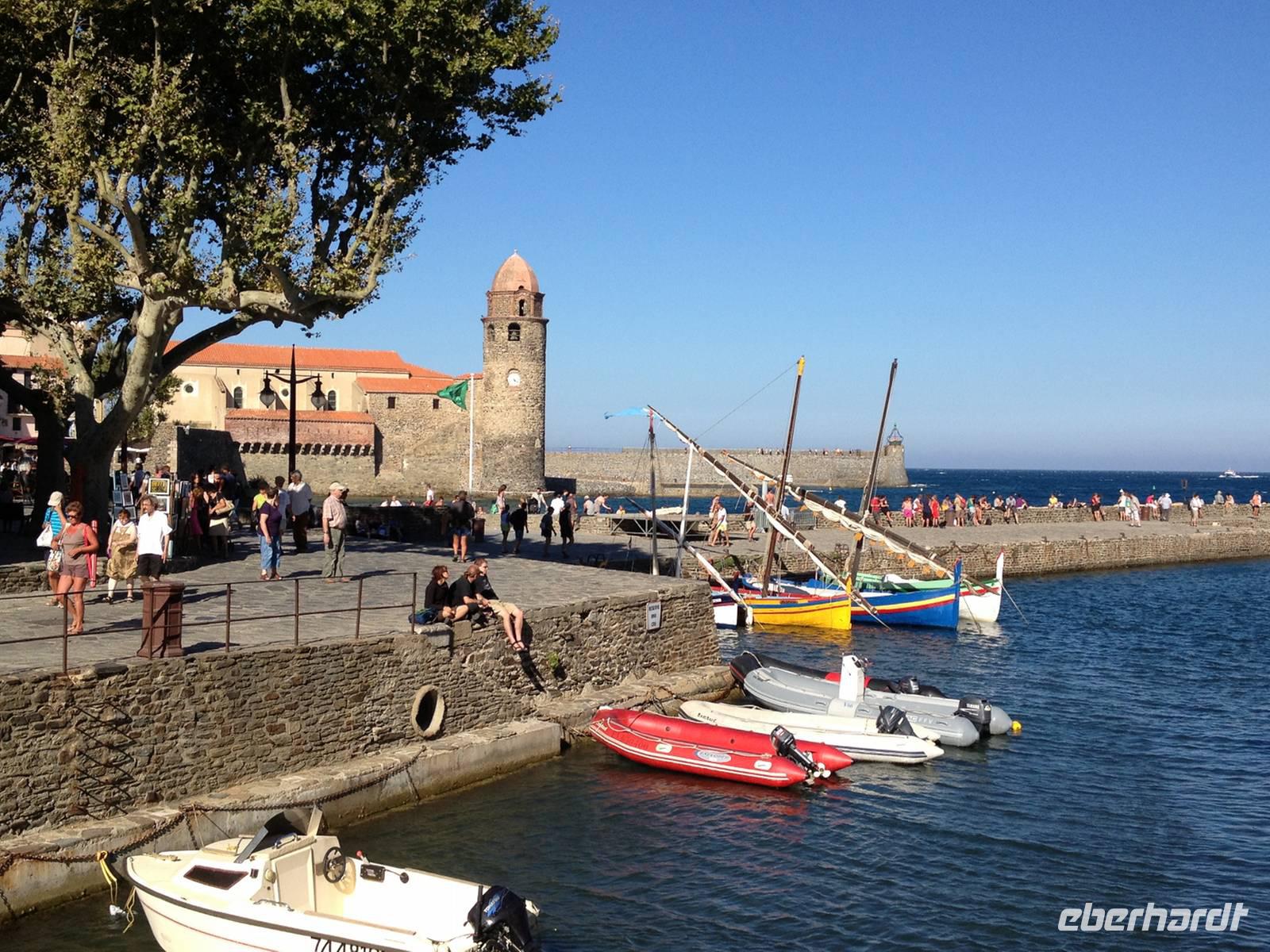 Heute setzten wir unsere Fahrt durch Katalonien fort und besuchten den Ort, in dem eine weitere Ikone katalanischer Kunst und Lebensart seine Spuren hinterlassen hat: Figueras. Salvador Dali, der bedeutendste Künstler des Surrealismus, hat hier, in seiner Geburtsstadt, das durch einen Brand weitgehend zerstörte ehemalige Stadttheater in ein „Theater-Museum" umbauen lassen. Dort werden entsprechend seines eigenen Konzeptes seine Kunstwerke in einer Art und Weise präsentiert, die jeden Besucher in ihren Bann zieht. Auch die äußere Gestaltung des Museums - die tomatenroten Mauern mit den riesigen Eiern auf dem Dach - ist so eigenwillig, dass wir nur staunen konnten. Auch für einen Bummel durch die hübsche Stadt blieb ausreichend Zeit. Unser weiterer Weg führte uns durch die ehemalige Grafschaft Empordiá, in der die Wiege Kataloniens stand, über die glutroten östlichen Pyrenäen hinweg bis hin zum kleinen Hafenstädtchen Collioure. Wir fuhren auf sehr vielen Serpentinenstraßen mit herrlichen Aussichten auf Berge, Meer und kleine Ortschaften. Collioure erreichten wir am Nachmittag - Zeit für ein spanisches Picknick auf einer der Terrassen der Festung von Collioure. Wir stießen mit reichlich Cava auf den französischen Teil Kataloniens - das Pays catalan - an und ließen uns Weißbrot, Chorizo, Serranoschinken, Schafs- und Ziegenkäse und Oliven köstlich schmecken. Anschließend erkundete jeder für sich die farbenfrohe quirlige Kleinstadt an der Purpurküste. Im Verlauf unserer Fahrt nach Gruissan, unserem Übernachtungsort, änderte sich das Landschaftsbild wieder ganz gewaltig. Die schroffen Berge wichen einer flachen, grünen Landschaft mit zahlreichen Seen. Wir waren im Languedoc angekommen. Unser Hotel befand sich im Grünen, am Ufer eines Sees, und es ist tatsächlich eine Oase der Ruhe, wo wir uns nach dem Abendessen für die Erkundungstouren des nächsten Tages erholten.