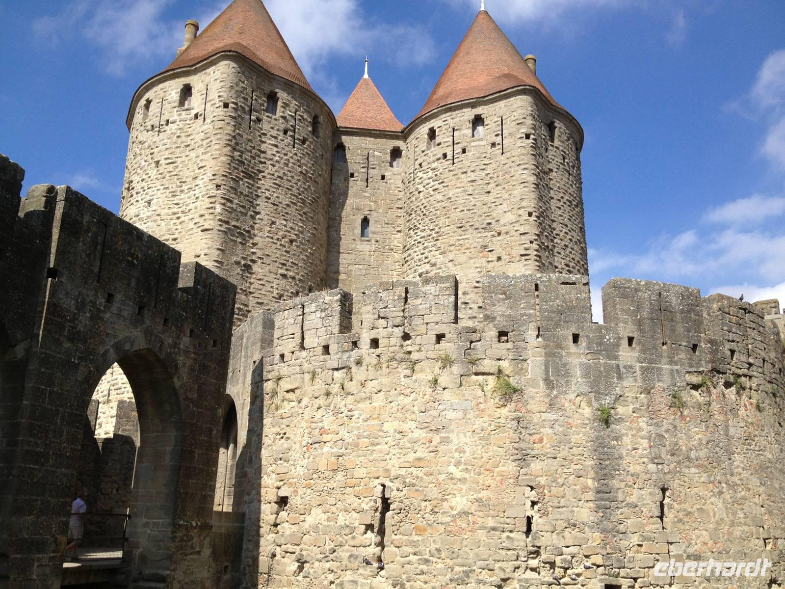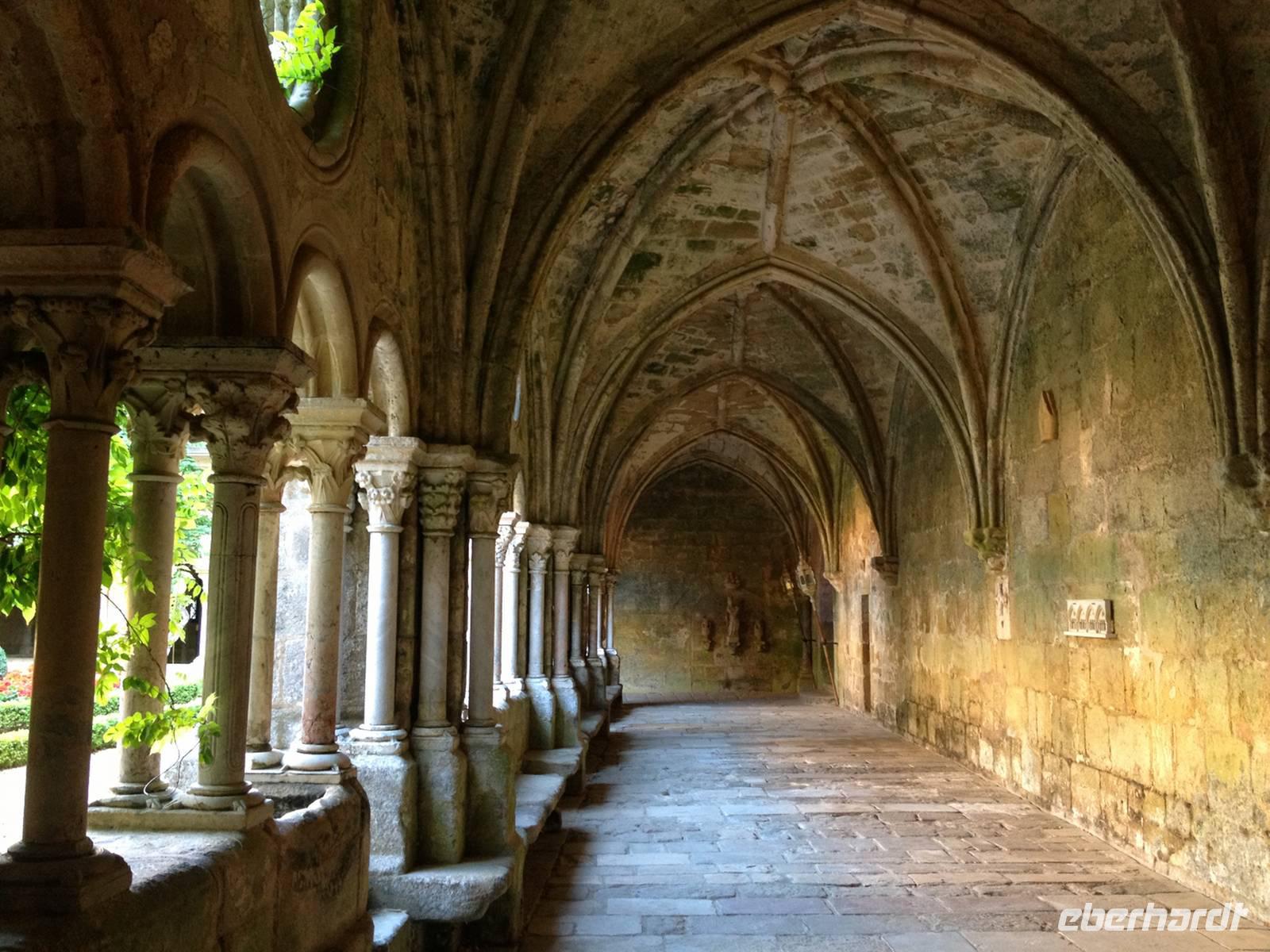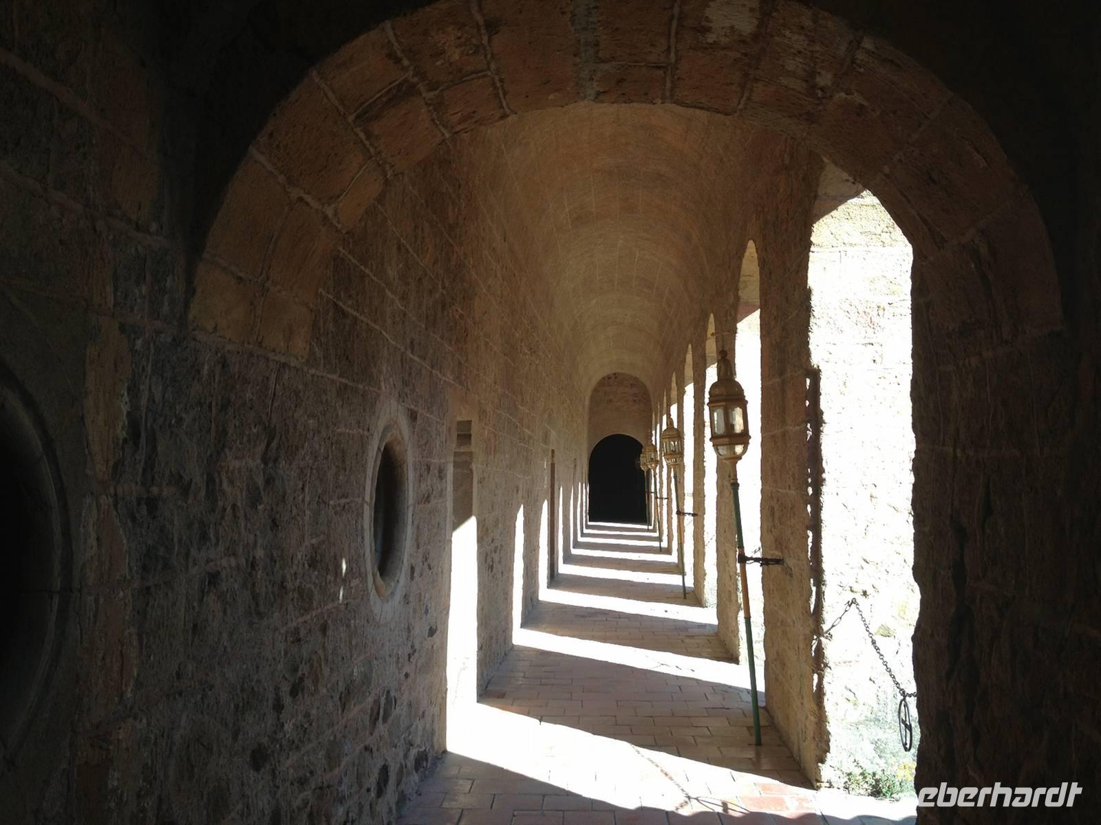 Am heutigen Tag brachen wir auf zur „Eroberung" der größten mittelalterlichen Festung Europas - Carcassonne. Zwei mächtige Mauerringe mit Dutzenden von Türmen umgeben die Festungsstadt mit ihrer Kirche und dem Grafenschloss. Carcassonne gilt auch als Musterbeispiel mittelalterlicher Militärarchitektur. Wir durchstreiften - zunächst gemeinsam, dann jeder individuell für sich - die holprigen Gassen von Carcassonne und ließen uns von der historischen Atmosphäre und den liebevoll erhaltenen Details verzaubern. Viele von uns probierten auch die Köstlichkeiten der regionalen Küche in einem der einheimischen Restaurants. Das wiederum bildete eine gute „Grundlage" für unseren nächsten Programmpunkt, den Besuch des Weingutes „Château du Grand Moulin" in den Corbières, die zum Languedoc gehören. Das Languedoc ist eines der größten Weinanbaugebiete Frankreichs. Hier gedeihen insbesondere von der Sonne verwöhnte rote Trauben, die durch ihren enormen Zuckergehalt und ihr Aroma sehr vollmundige und starke Weine ergeben. Wir verkosteten nach einer ausgiebigen Besichtigung der Kelterei einen Weißwein und zwei Rotweine. Es war für jeden Geschmack der richtige Wein dabei, und dazu reichten uns die Winzer kleine appetitliche Happen - Brot, Oliven, luftgetrocknete Wurst und Schinken. Wir lebten hier wirklich wie Gott in Frankreich! Anschließend fuhren wir ins nahegelegene Benediktinerkloster Fontfroide, das nicht nur eine wunderschöne und gut erhaltene romanische Klosterkirche besitzt, sondern auch noch alle anderen zu einem Kloster gehörenden Anwesen, wie z.B. Kreuzgang, Dormitorium, Refektorium und einen herrlichen Klostergarten. Wir erfuhren, dass es neben den eigentlichen Mönchen auch zahlreiche „Laienbrüder" gab, die mit für den Unterhalt des Klosters sorgten. Uns gefiel auch besonders die romantische Lage von Fontfroide. Nach diesem erlebnisreichen Tag kehrten wir zurück ins beschauliche Gruissan, wo wir den Tag mit einem leckeren Abendessen abrundeten.