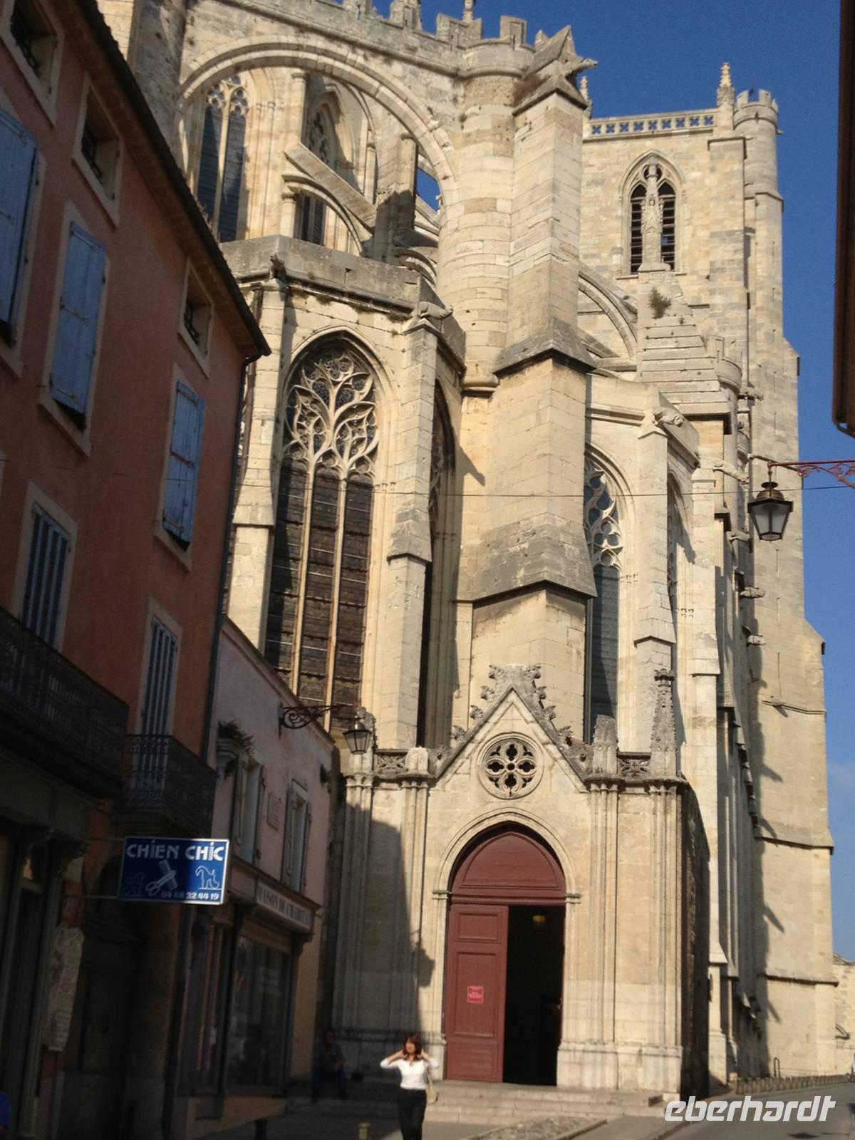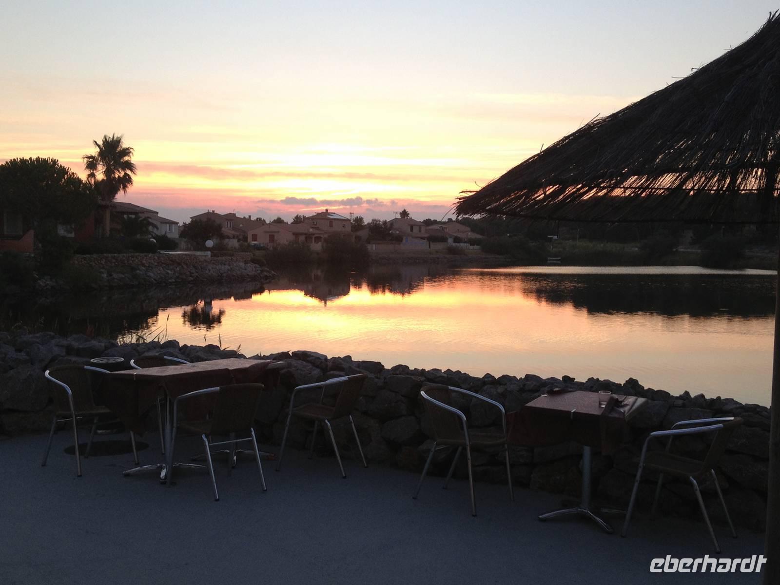 Auch der heutige Tag begann mit einem Frühstück mit Blick auf die über dem See aufgehende Sonne, die einen weiteren Schönwettertag ankündigte. Unsere erste Fahrt führte uns in die unter der Römerherrschaft einst bedeutsame Stadt. Das lag nicht zuletzt an dem großen Mittelmeerhafen, durch den Narbonne durch einen Kanal verbunden war. Der Canal de la Robine existiert noch immer, wohingegen der Hafen versandete, was den Niedergang der Stadt einleitete. Entsprechend blieben auch viele großartige Bauprojekte unvollendet, wie zum Beispiel die Kathedrale, die im Grunde lediglich aus dem Chor besteht. Dieser ist allerdings sehr sehenswert, nicht nur wegen seiner 40 Meter Höhe, sondern auch wegen seiner prächtigen Ausstattung. Die ruinengleichen Fragmente des unvollendeten Kirchenschiffes übten auf uns einen besonderen Reiz aus. Auch der stimmungsvolle Kreuzgang und der sich anschließende Komplex des erzbischöflichen Palastes waren für uns sehr interessante und sehenswerte Zeugnisse des ehemaligen Glanzes der Stadt Narbonne. Direkt vor dem Rathaus, an den Resten der ehemaligen römischen Handelsstraße Via Domitia trafen wir uns nach einer Stunde Freizeit alle wieder und spazierten zum Parkplatz unseres Busses. Wir freuten uns bereits auf die Bootsfahrt auf dem Canal du Midi! Die Fahrt dorthin stellte die Fahrkünste unseres spanischen Chauffeurs Santana auf eine harte Probe: endlose schmale Platanenkorridore säumten kurvenreiche Straßen, und auch bei den uralten schmalen Steinbrücken hielt so mancher von uns den Atem an... Aber Ende gut, alles gut, unser Boot „Santa Maria" war bereits für uns flott und war erfüllt vom Duft einer hausgemachten Paella. Zunächst legten wir ab und fuhren einige Kilometer südwestlich, wobei wir auch einen der Tunnel passierten, durch die der Kanal führt. Mit Ehrfurcht lauschten wir den Erläuterungen unseres Bootsführers, der zu berichten wusste, wie viele Menschen vor über 250 Jahren diese mit über 300 technischen Bauwerken gespickte Wasserstraße über 240 Kilometer bis zur Garonne führten und damit Mittelmeer und Atlantik miteinander verbanden. An einem schattigen Ankerplatz in himmlischer Ruhe ließen wir uns die Paella und den Landwein munden und setzten unsere Fahrt bis zur Schleusentreppe von Fonserrannes fort. 5 Schleusenkammern wurden wir hinunter"gehoben" - ein tolles Erlebnis, noch dazu, wenn man bedenkt, dass das Ganze im 18. Jahrhundert entstand... Mit einem wunderschönen Blick auf die stolze Stadt Béziers setzten wir unsere Fahrt fort und kamen schließlich in Marseillan an. Dort hat sich vor 200 Jahren der Hersteller des berühmten Wermuts „Noilly Prat" angesiedelt. Wir besichtigten die Kelterei und den schier unendlich großen Lagerplatz der Weinfässer, die in der glühenden Sonne ihrer Veredlung harren. Natürlich kamen wir auch in das „Labor", in welchen dieser Wein mit Zucker und vielen Kräutern zu dem gemacht wird, was Gourmets in aller Welt schätzen. Und natürlich durften wir die drei unterschiedlichen Sorten auch einmal probieren! Zurück in Gruissan, entschieden sich viele von uns für ein Abendessen am Strand. Das Restaurant „La Rose des Sables" hatte uns dort eine lange Tafel unmittelbar am Wasser aufgebaut, und wir ließen uns Fleisch und Fisch schmecken. Ganz besonders toll waren die riesigen und mit viel Liebe und Einfallsreichtum zubereiteten Desserts! Und natürlich das Ambiente...