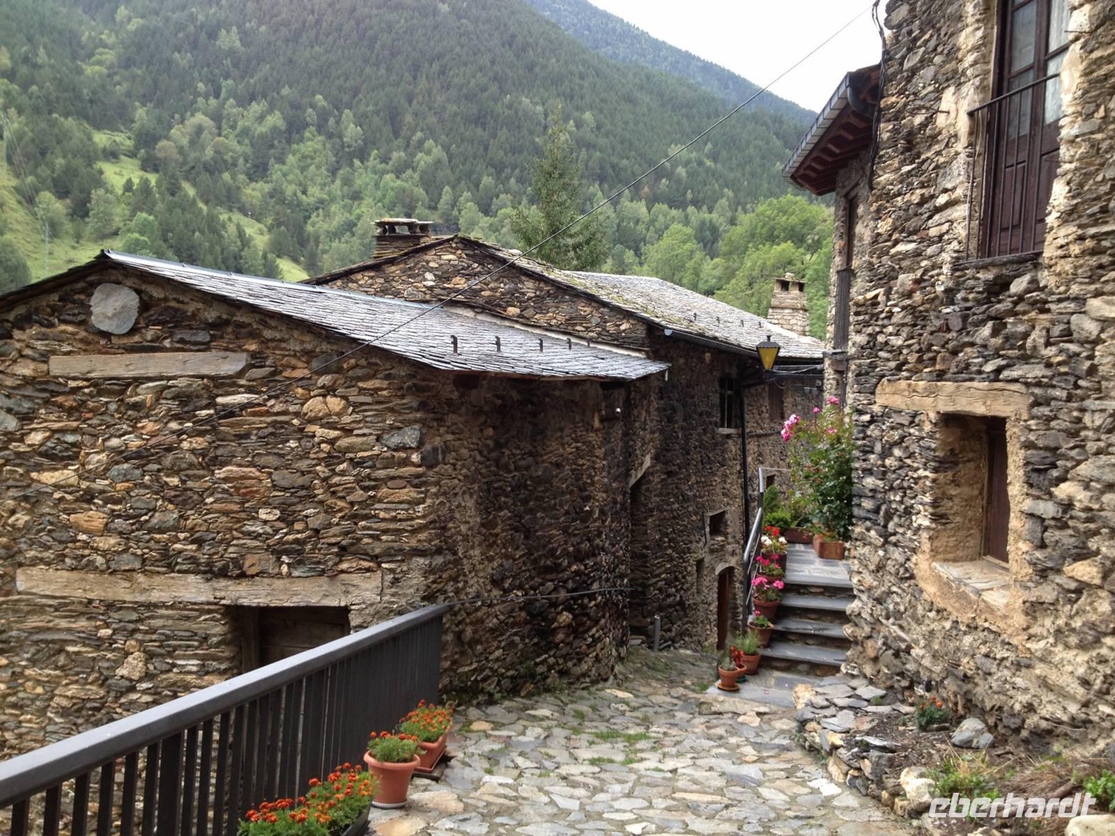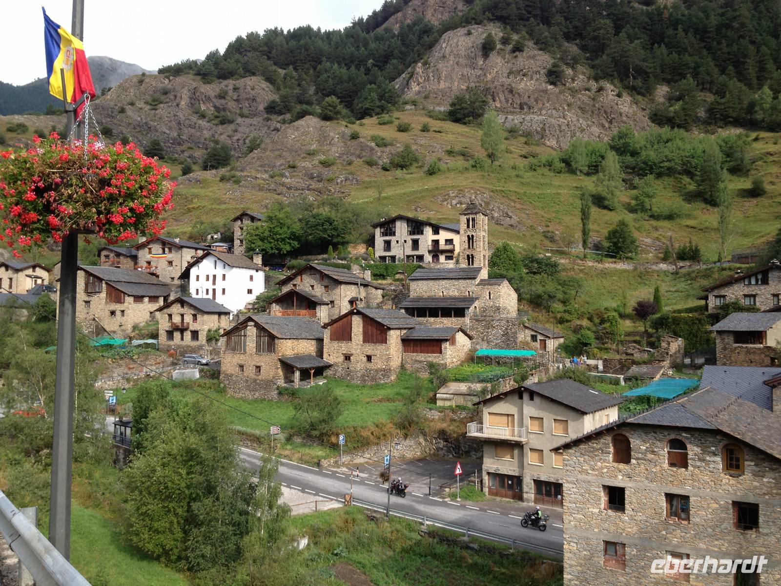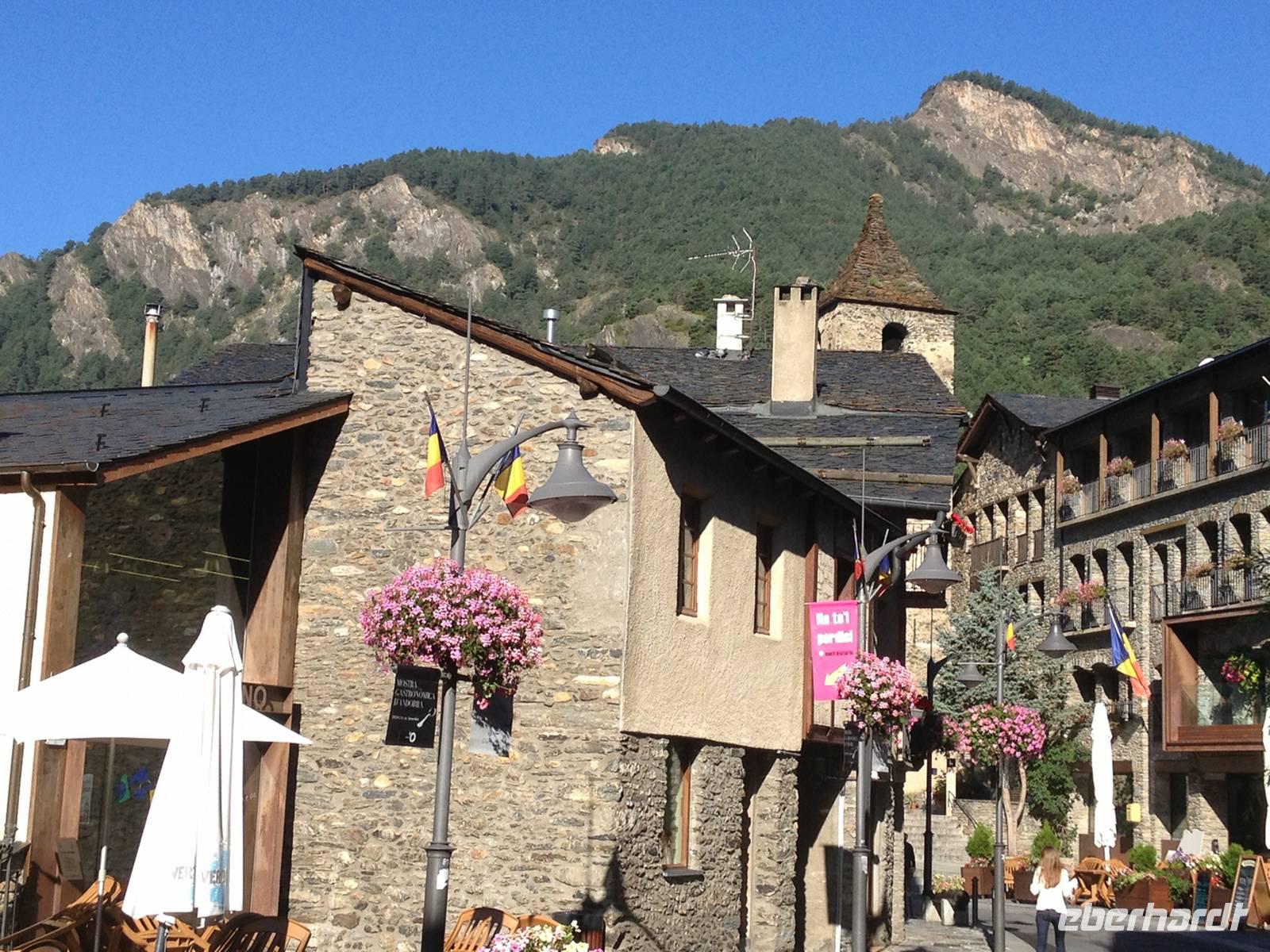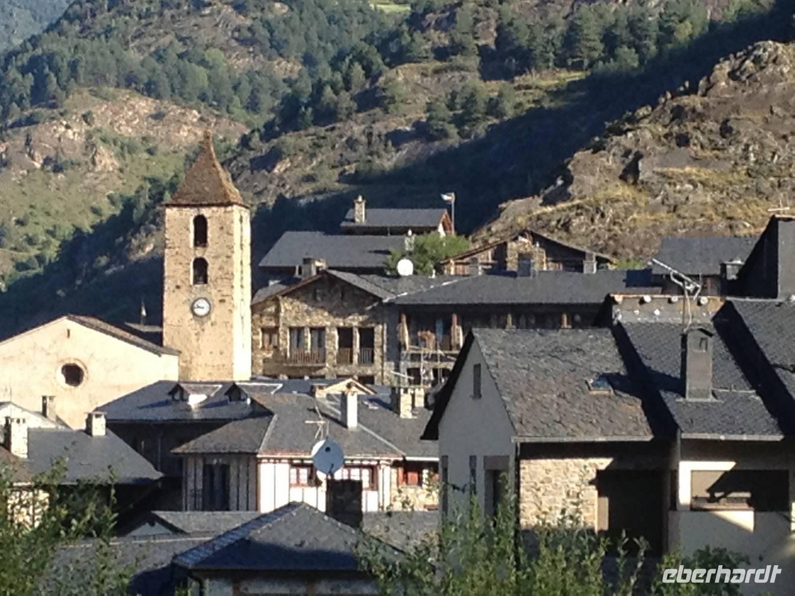 Der heutige Sonntag ist der Nationalfeiertag Andorras. Wir unternahmen bei meist sonnigem Wetter eine Rundfahrt durch Andorra, wobei wir vom Col de la Botella aus einen tollen Ausblick auf die umliegenden Täler genießen konnten. Außerdem hielten wir in einsamen, ganz aus Schiefer gebauten, blumengeschmückten und sehr traditionellen Dörfern - Pal und Os de Civis. Zum Mittragessen kletterten wir wiederum über Straßen, die nach den Worten unseres Kraftfahrers Santana „eher für Ziegen geeignet sind", in den oberen Ortsteil von Os de Civis. Wo uns in einem typisch andorranischen Lokal ein üppiges Mittagessen mit landestypischen Spezialitäten erwartete. Abgerundet wurde das Ganze durch leckere spanische Weine, andorranische Spirituosen und eingerahmt von Livemusik. Diese zweieinhalb Stunden Essen und Kultur gaben uns eine Vorstellung davon, wie gesellig die Menschen hierzulande sind. Auf der Rückfahrt zum Hotel hielten wir nochmals, um einer der über 40 andorranischen Kirchen einen Besuch abzustatten. Aus Naturstein, romanisch und sehr klein! Das imponierte uns natürlich sehr! Vor dem Abendessen blieben noch zweieinhalb Stunden Freizeit - und viele von uns nutzten die Gelegenheit, um entweder per pedes oder mit der Seilbahn auf den Gipfel hinter unserem Hotel aufzusteigen, Das war sehr lohnenswert, denn das Wetter war sonnig und frisch. Am Abendbüffet trafen wir uns dann alle wieder.