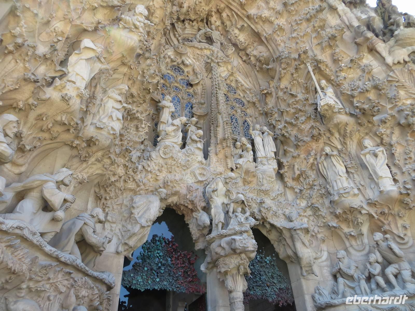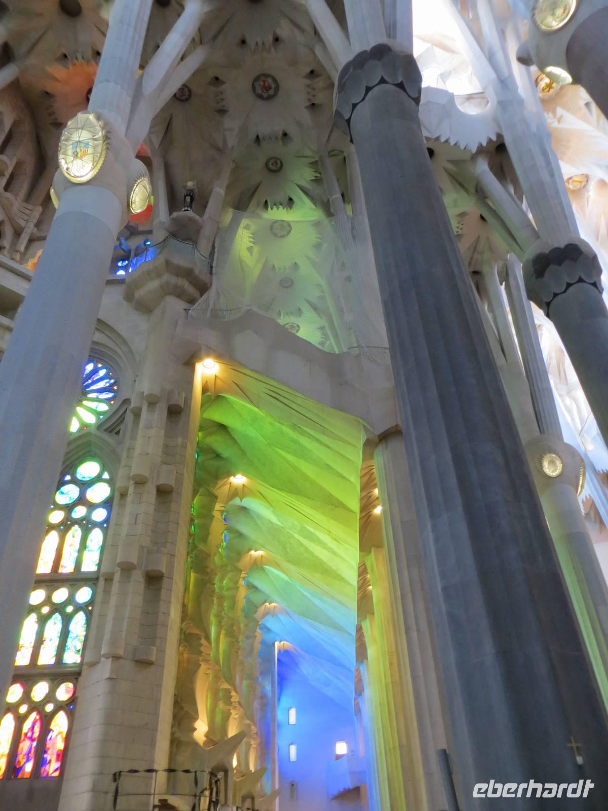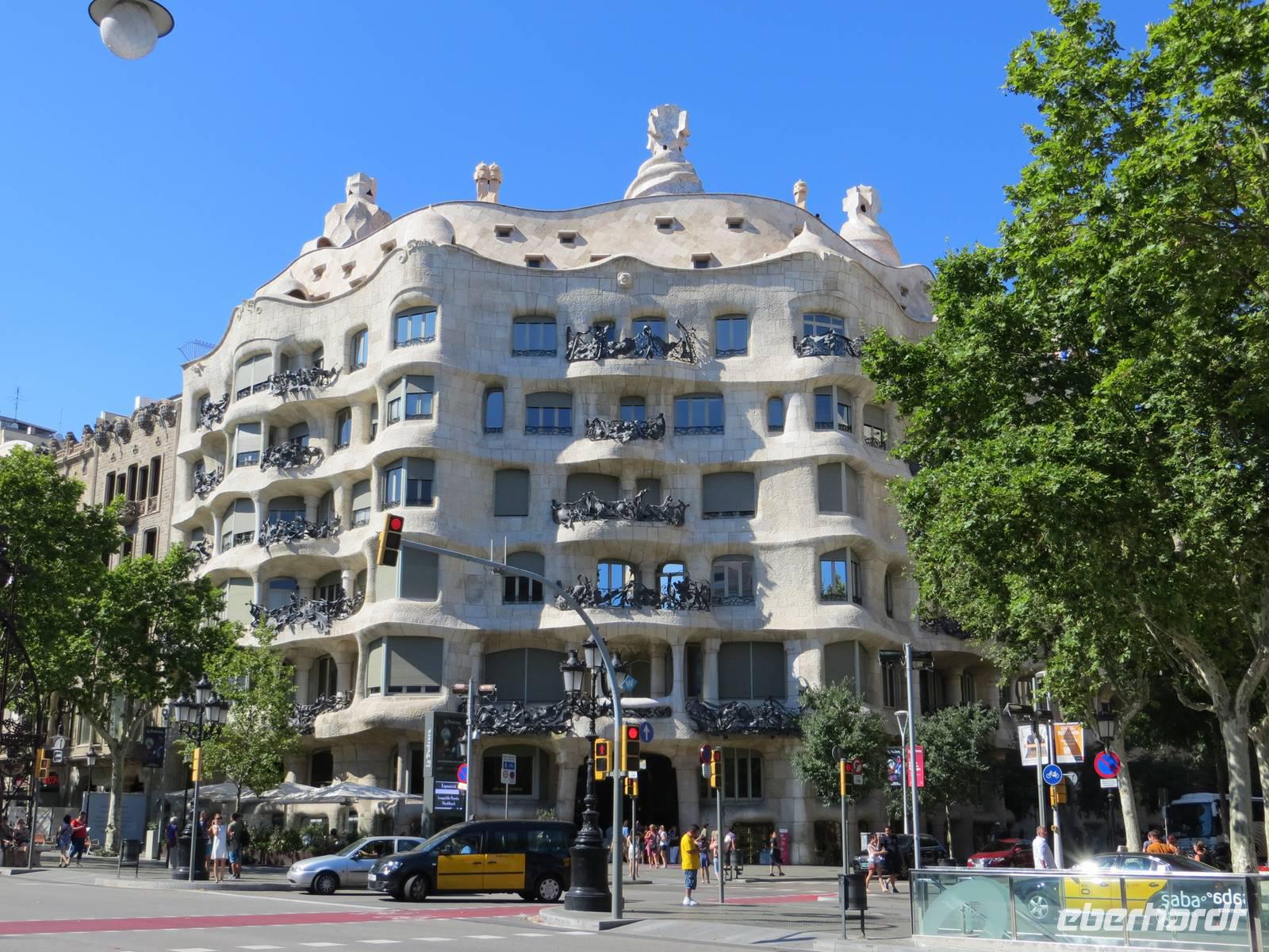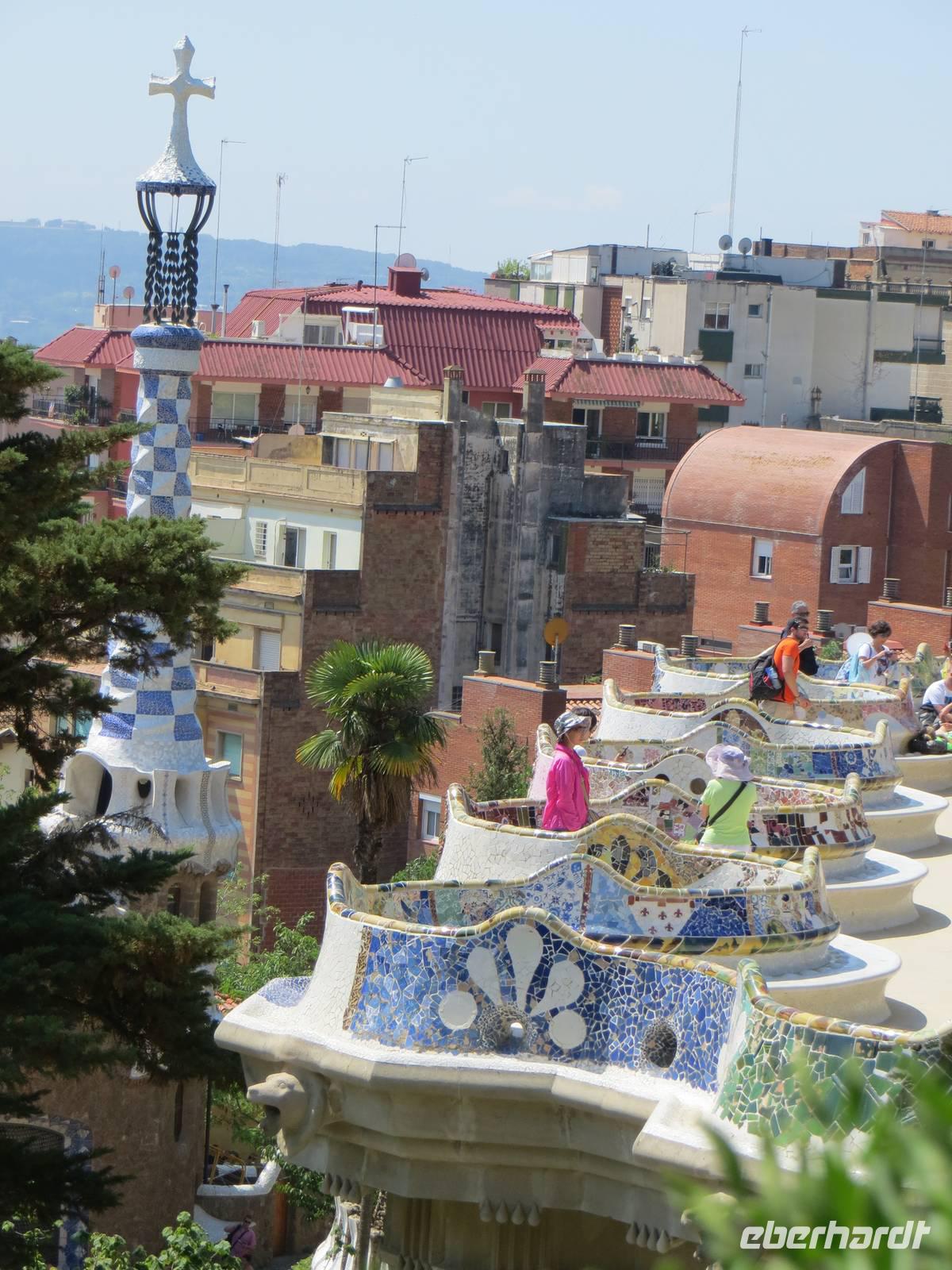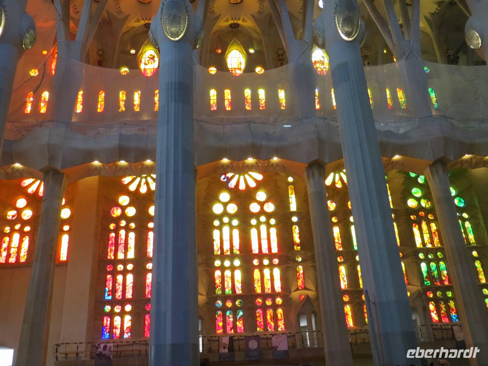 Mit dem Reisebus fuhren wir am Vormittag nun zunächst auf Montjiuc, vorbei am spanischen Dorf, das zur Weltausstellung 1929 gebaut wurde, und am Olympiastadion von 1992. Oberhalb des Hafens auf dem Montjiuc dann der erste Stopp bei leider recht sommerdiesigem Licht. Mit dem Bus ging es dann vorbei an der Kolumbussäule, am Hafen, dem Olympiapark auf gewonnenem Land am Meer mit zahlreichen architektonisch interessanten Gebäuden der Neuzeit, teilweise durch japanische Architekten errichtet. Durch die Via Laetania, die die historische Altstadt begrenzt, erreichten wir die moderne Einkaufsstraße Passeig de Gracia mit weiteren Gebäuden des Architekten Gaudi. Über die Diagonale erreichten wir am westlichen Stadtrand den Sportkomplex des FC Barcelona - ein guter Platz für „eine Toilettenpause beim Champions-League-Gewinner". Über die Mittagszeit bummelten wir im Park Güell, den Gaudi für Guell in sieben Kilometer Entfernung vom Meer auf damals billigem Baugrund errichten konnte. Die Eintrittskosten dienen heut dazu, die Anlage, insbesondere die längste Bank der Welt, zu erhalten. Pünktlich zur zugemessenen Besichtigungszeit erreichten wir Gaudis Kathedrale Sagrada Familia. Durch die Ostseite „Christis Geburt" betraten wir das riesige Kirchenschiff mit Säulen, die einen Wald symbolisieren sollen und riesig großen, modernen Kirchenfenstern. Auf der Westseite, der „Kreuzigungsseite" beendeten wir die Besichtigung. 2026 - zum 100. Jahr des Todes von Gaudi, soll die bisher unvollendete Kathedrale dann vollendet sein.