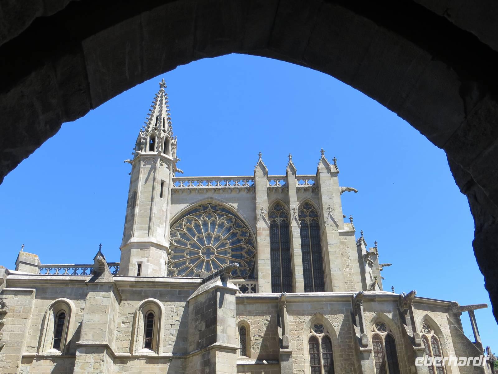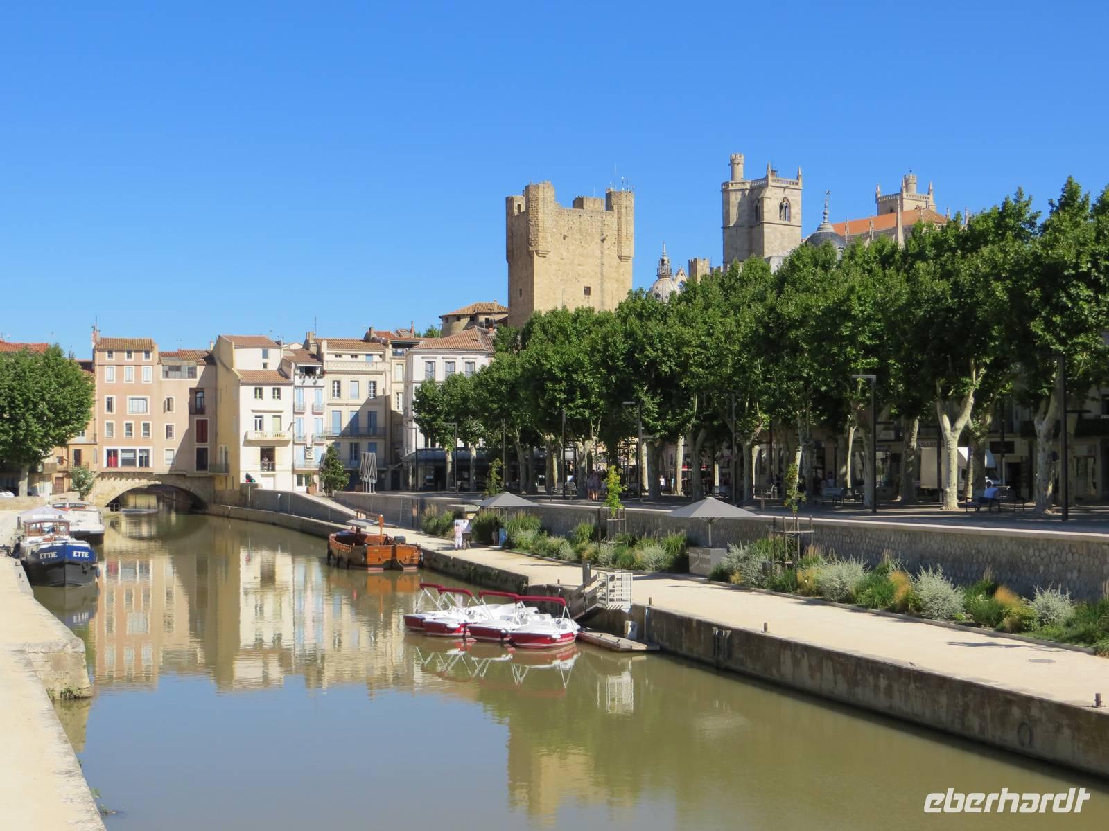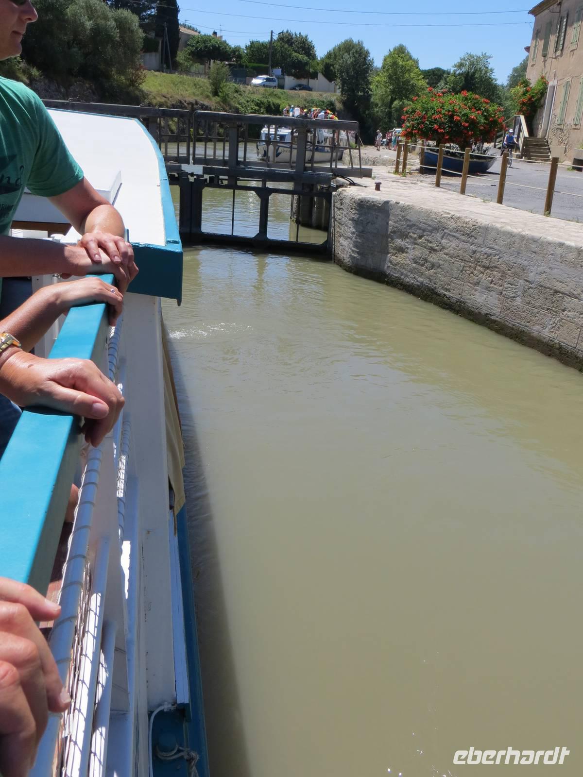 In wenigen Minuten brachte uns unser spanischer Reisebus nach Narbonne. Vom Parkplatz am Wall erreichten wir in wenigen Minuten den Canal de la Robine, einen Nebenkanal des Canal de Midi. An einigen prächtigen Häusern aus dem 17. Jahrhundert konnten wir hier bereits erkennen, das der Canal und der einstige Flusshafen Narbonne Wohlstand ansiedelten. Zielgerichtet erreichten wir den Platz vor dem einstigen Erzbischofspalast, dem heutigen Rathaus, und einer freigelegten Fläche, wo Reste der römischen Via Domitia zu erkennen sind. Wenige Meter dahinter die Kathedrale und unser „Tritt ein in den Dom" („... welch ein herrliches Portal"), aber insbesondere die Höhe von über vierzig Metern macht das Bedeutsame dieser Kathedrale aus, von der aber nur der Westflügel als geschlossene Kirche steht. Nach individuellem Bummeln in Narbonne - mancher auch zur Markthalle - brachte uns der Bus nach Colombiers am Canal de Midi. Die angegebene Zustiegsstelle, sah nicht wie „Port" aus, aber nach einigen Minuten der Unsicherheit ankerte Santa Maria zum Zustieg. Eine sehr schmackhafte Paella und Rose'-Wein gestalteten die erste Stunde unseres Aufenthaltes an Bord noch im Liegen. Unsere zweistündige Fahrt führte uns durch den Tunnel von Malpas und auch mit der Schleusentreppe bei Villeneuve-les-Beziers in die Tiefe. Zum Tagesabschluss ließen wir uns in der hochqualitativen Destillerie Noilly Prat die Produktion von Wermouth-Weinen (ohne Wermut-Kraut aber mit zwanzig bis dreißig anderen Zutaten around the world) erklären und verkosteten drei.