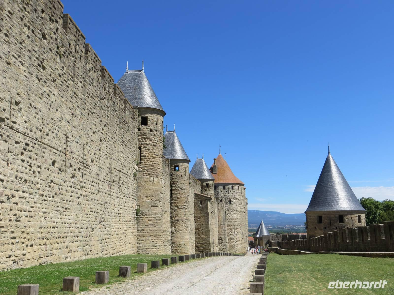 Nach einem von der Malerei geprägtem Tag ging es heute im Land der Katharer zu den christlichen Wurzeln dieser Gegend. Carcassone galt bis 1209 als Zentrum der Katharer. Hier befindet sich eine der mächtigsten Stadtbefestigungen der Erde: drei Kilometer umzieht die Doppelmauer mit Zwinger die kleine Cite', in der sich nicht nur das Chateau des Grafen und eine bedeutende gothische Kirche befinden sondern Wohngebäude für einst tausende Einwohner. Das Carcassone den UNESCO-Welterbetitel bereits lange vor der heute inflationären Titelvergabe erhielt, wunderte uns nicht.