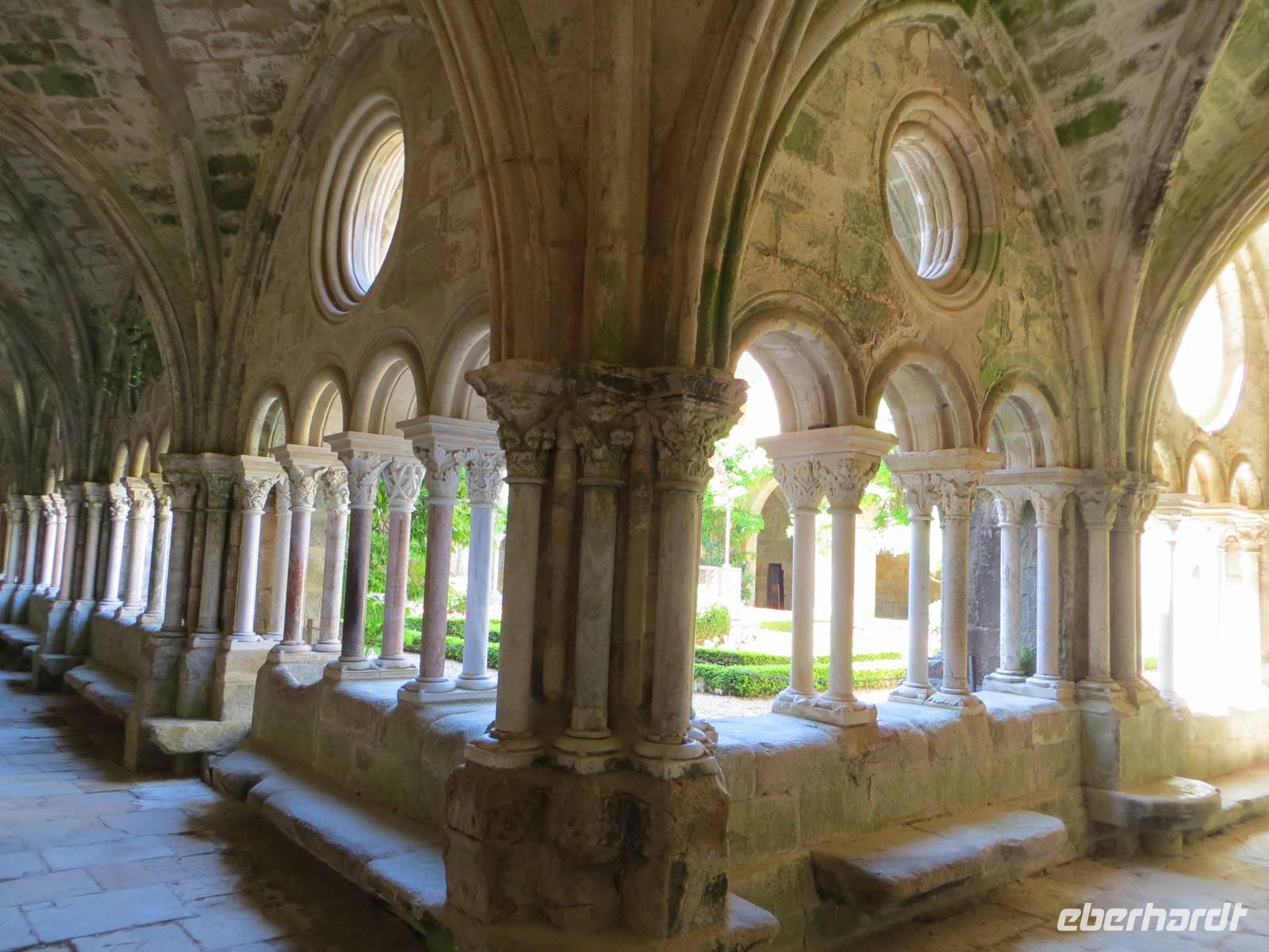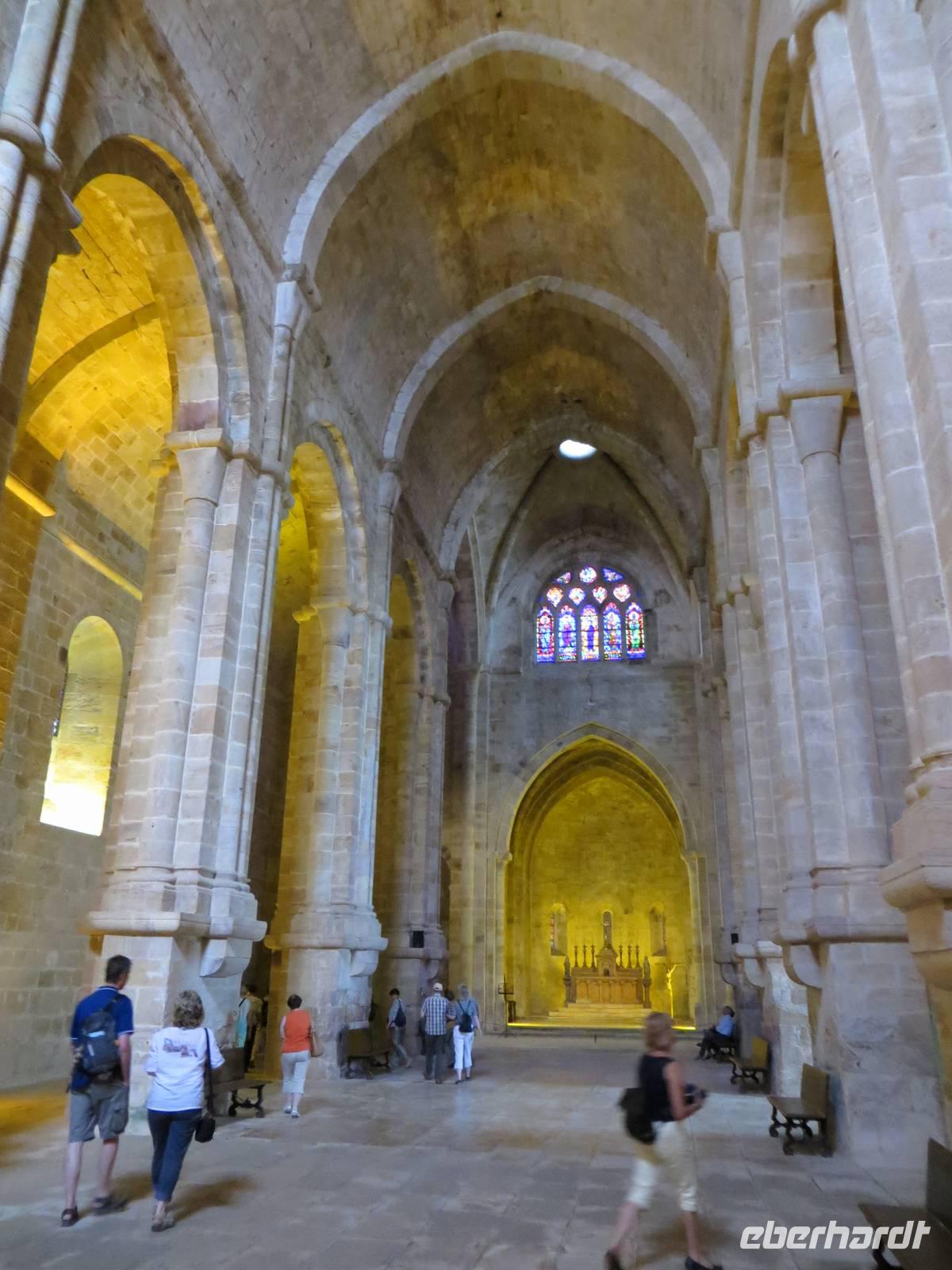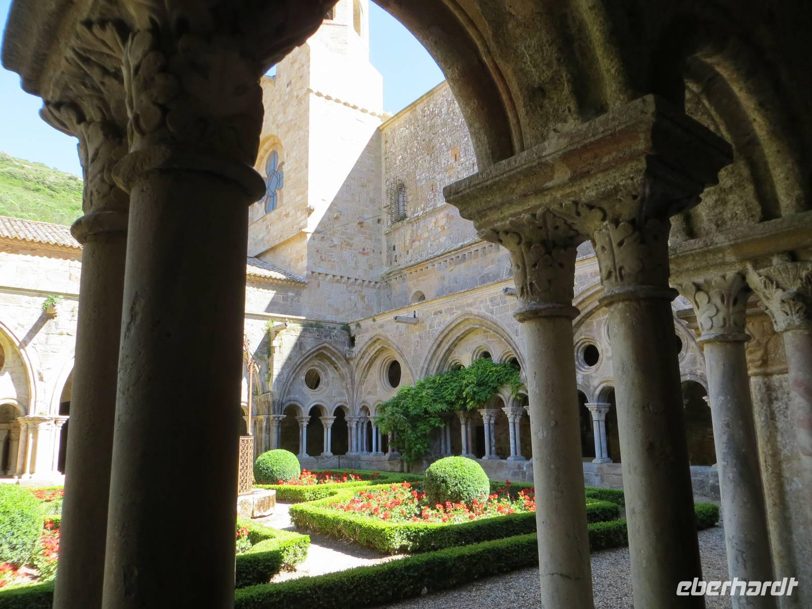 dennoch recht nüchtern fuhren wir zum späten Nachmittag in die Abbaye de Fontfroide, erbaut im 12. Jahrhundert als Kloster der Zisterzienser, wegen Reichtums später von den Benediktinern übernommen, die wohl eher wie Adlige hier lebten. Unser örtliche Führer William erklärte uns beharrlich die architektonischen Unterschiede im Übergang von Romanik zu Gothik. Auf jeden Fall gilt wohl das Kirchenschiff als eines der größten (höchsten) romanischer Kirchen in Frankreich.