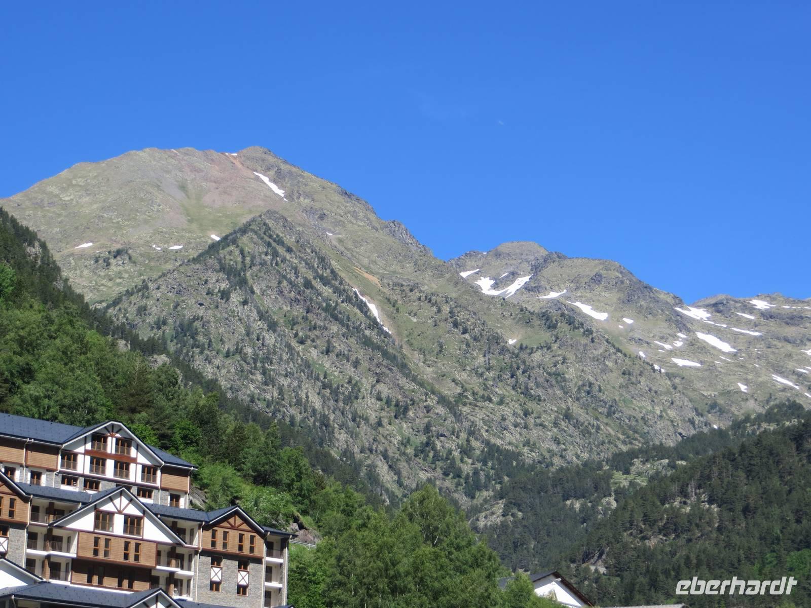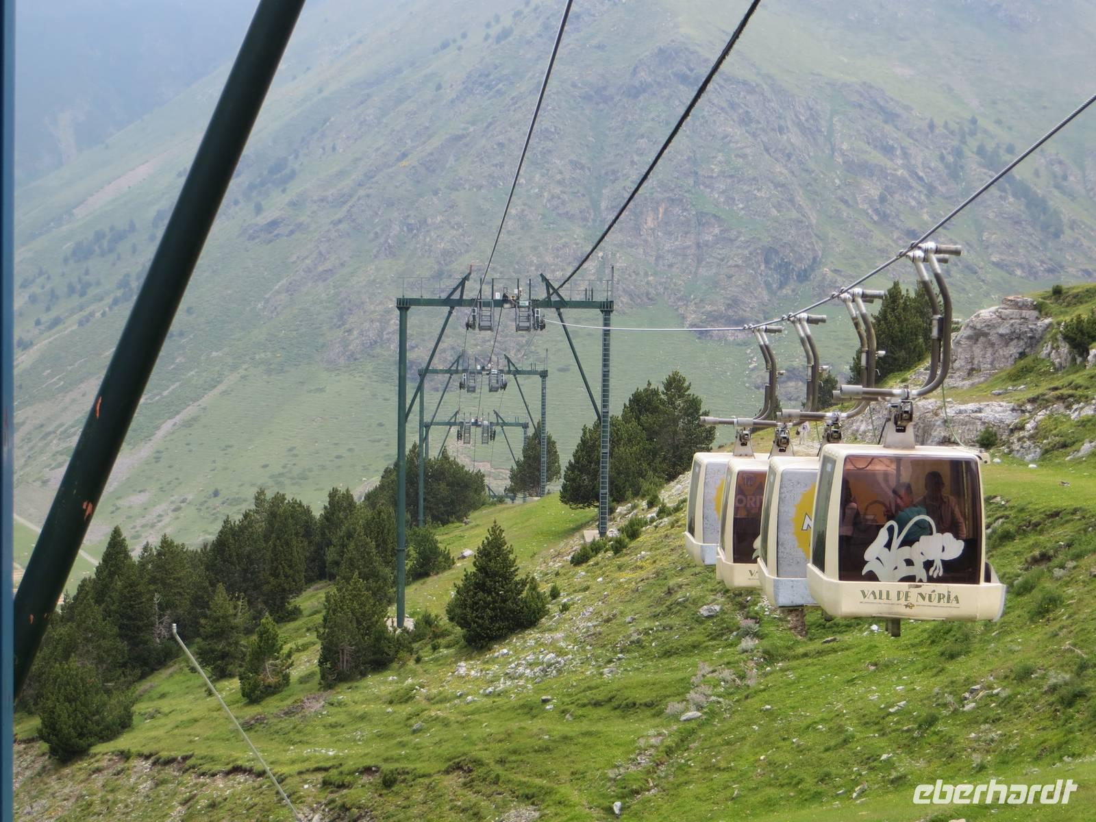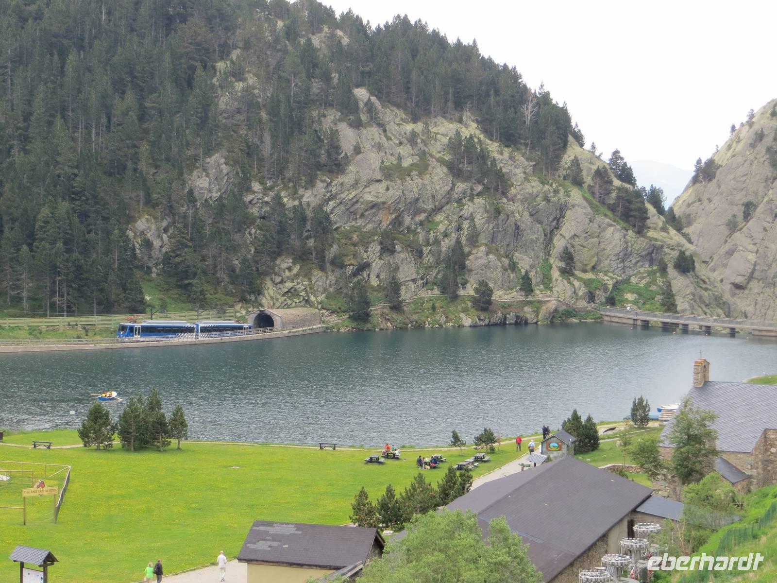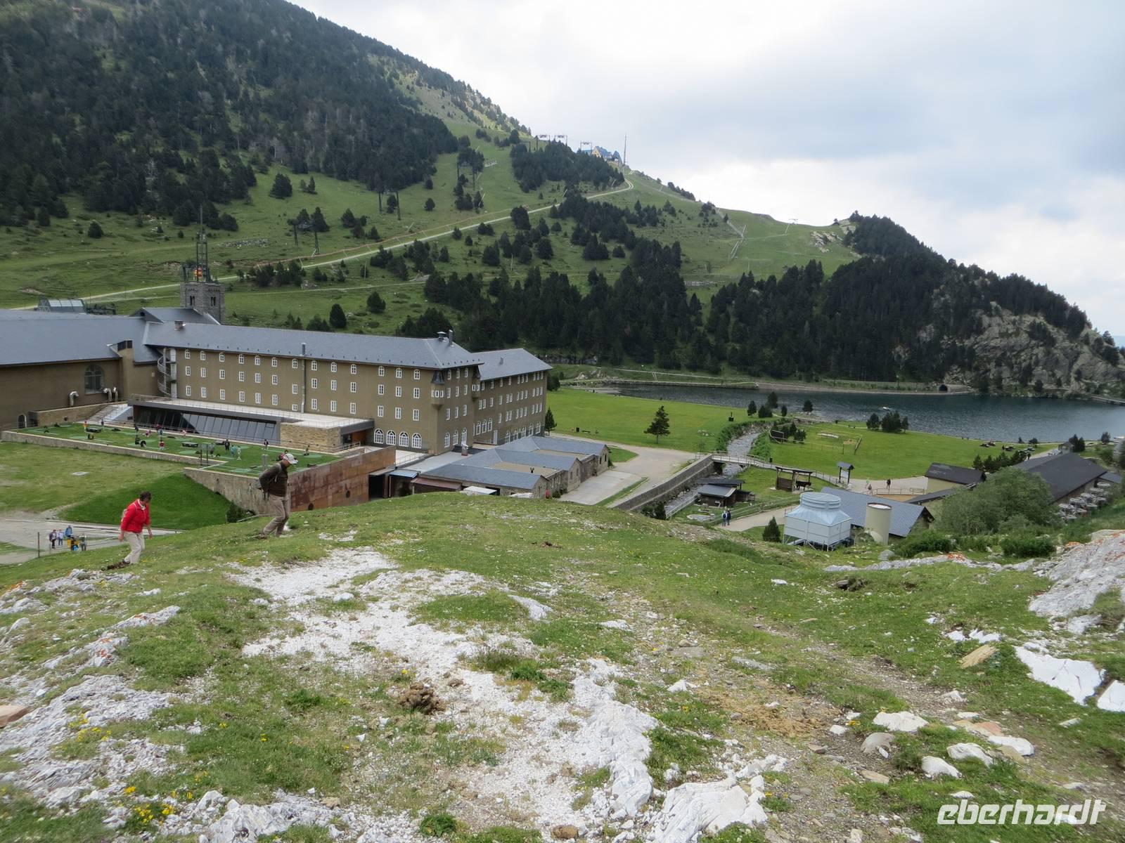 Eine vierzigminütige Bahnfahrt brachte uns dann durch das Valle de Nuria hinauf auf mehr als 1900 Meter Höhe nach Nuria. Das einstige Kloster war zum Hotel umgebaut und stand recht kraftstrotzend im Hochgebirgstal. Mancher bummelte um den kleinen See, einige stiegen einige hundert Meter die Berge an und die meisten nutzten den Kabinenlift, um nochmals zweihundert Meter an Höhe zu gewinnen. Die Gastronomie erinnerte jedoch keinesfalls an alpine Berghüttenatmoshäre. Dennoch war diese Alternative in den Pyrenäen ein Gewinn. Nach nochmals 150 Kilometer Busfahrt über La Seu d' Urgel erreichten wir Andorra und unser Hotel Sport Village mit feinem Büfett zum Abendessen.