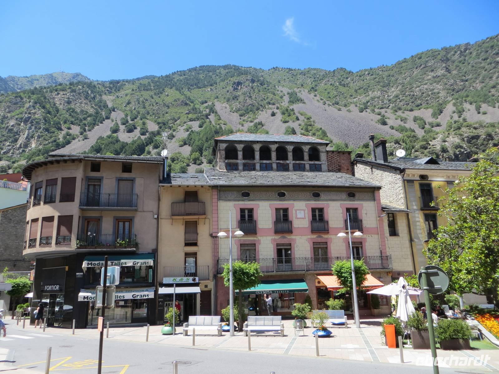 So auch in guter Stimmung erreichten wir mit dem Bus den Pass Botello, schauten auf Andorras höchsten Berg und hinüber nach Spanien und Frankreich. Am zeitigen Nachmittag erreichten wir die Hauptstadt Andorra la Vella. Mittlerweile hatten wir uns mit dem natursteinfarbenen Grau der oft fünfstöckigen Häuser angefreundet und wir schätzten so langsam die akurate Verfugung der Steine.
