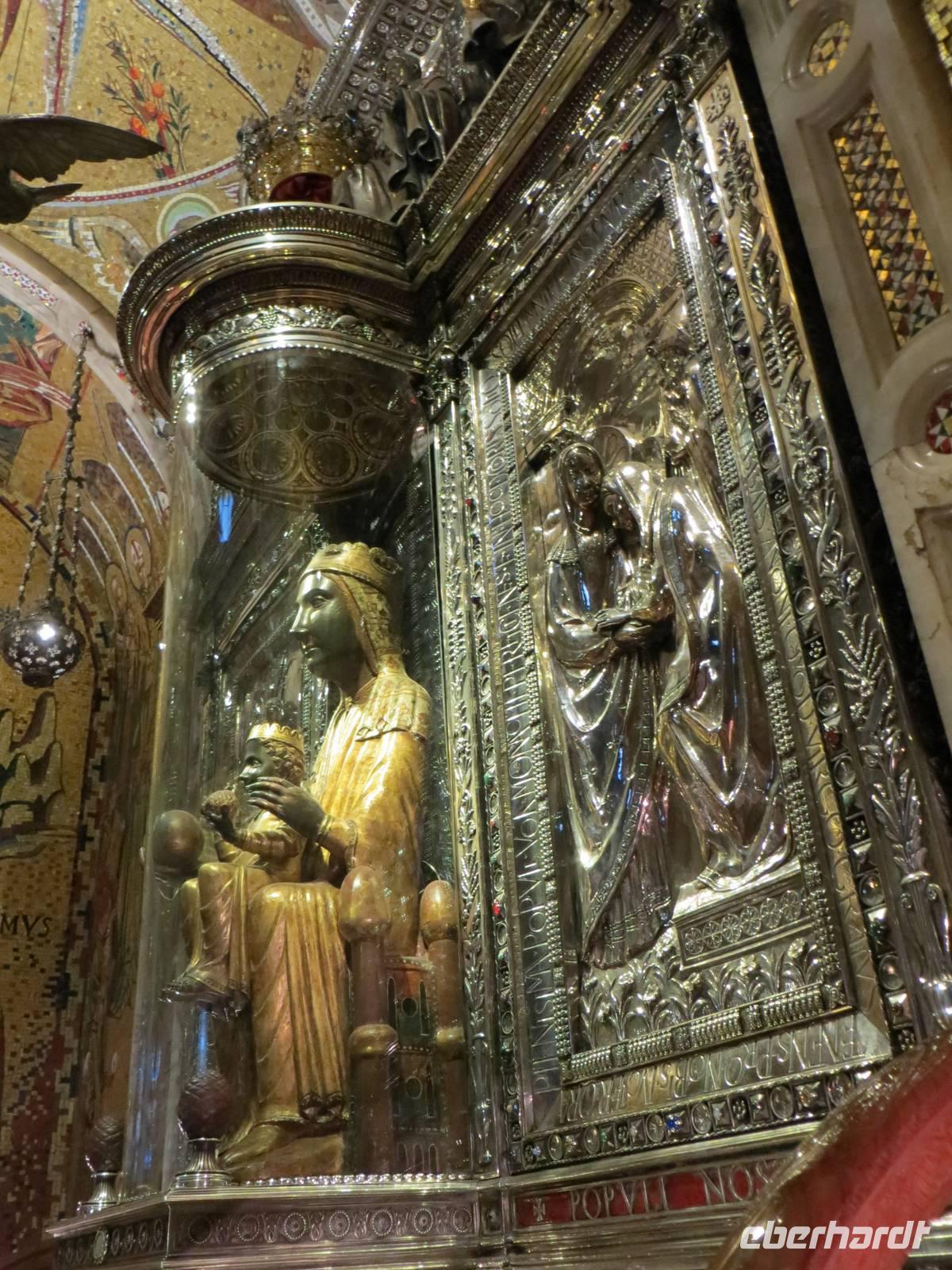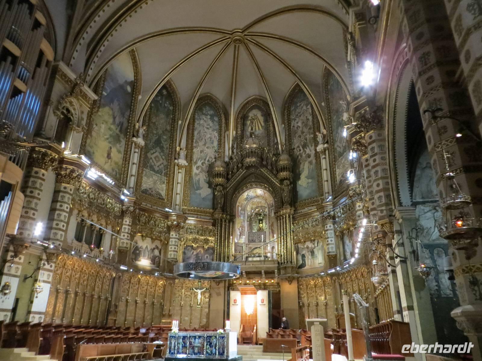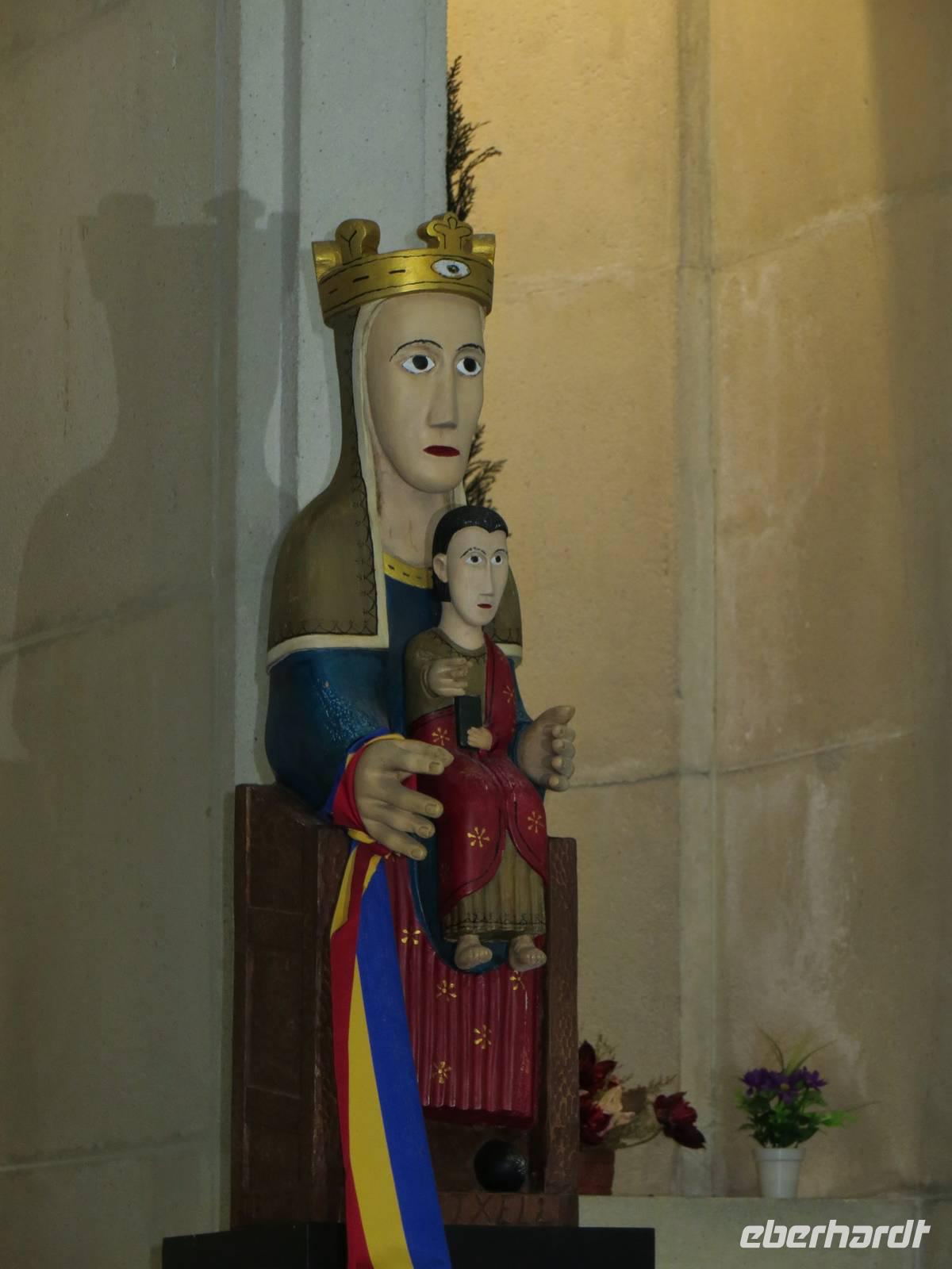 Nachdem es an manchen Tages mit dem Mittagessen etwas spät geworden war, hatten wir heute das Mittagessen als Tagesziel ausgeschrieben, so dass die Einhaltung der Zeit fast oberstes Gebot war. Auf unserer Fahrt hielten wir jedoch zunächst an der romanischen Kirche San Jaon, die geradezu ein Lehrbuchbeispiel für romanische Kirchen in diesem Kulturraum darstellt und immerhin um 1100 entstand. Von hier sind es nur wenige Kilometer zum Heiligtum der Andorraner Meritxell. Nachdem 1972 die romanische Kirche ausbrannte, wurde bis 1994 diese mit neuem Dach versehen, insbesondere aber eine neue Kirche errichtet, die sich in Stein und mit weißer Farbe und in der Grundarchitektur an romanischen Traditionen orientiert. Diese neue Kirche Meritxell dient nun als Kirche der Madonna von Meritxell, der Schutzheiligen Andorras. Wir lagen auf unserem Weg zum Mittagessen gut in der Zeit, so dass wir im alten Dorf Os de Civis bummeln konnten. In 1600 Meter Höhe am oberen Ende eines Bergtales gelegen, ist hier noch gut nachvollziehbar, wie einst hier Generationen lebten. An dir kulinarischen Traditionen des Landstriches knüpften wir dann im Restaurant Os de Cevis an: Knoblauchbrot, Blutwurst-Fleisch-Suppe mit Teigwaren, Schinken, Salami, Käse und dann noch eine breite Auswahl von Gegrilltem; dazu natürlich Portwein als Degustiv, Sangria, Rotwein, Likör... Gut genährt und stimmungsvoll - auch ein Tänzchen war möglich, aber wohl La Paloma nicht ganz landeskundlich - brachte uns unser Reisebus über Seu d' Urgel nach Montserrat. Ein warmer Abend und schönes Licht luden ein zu einer ersten Erkundung der Basilika, ab 19:30 Uhr war der Zugang auch zur schwarzen Madonna von Montserrat, der Schutzheiligen Kataloniens möglich. Mancher bummelte nach dem Abendessen noch über die Plazza vor dem Kloster.