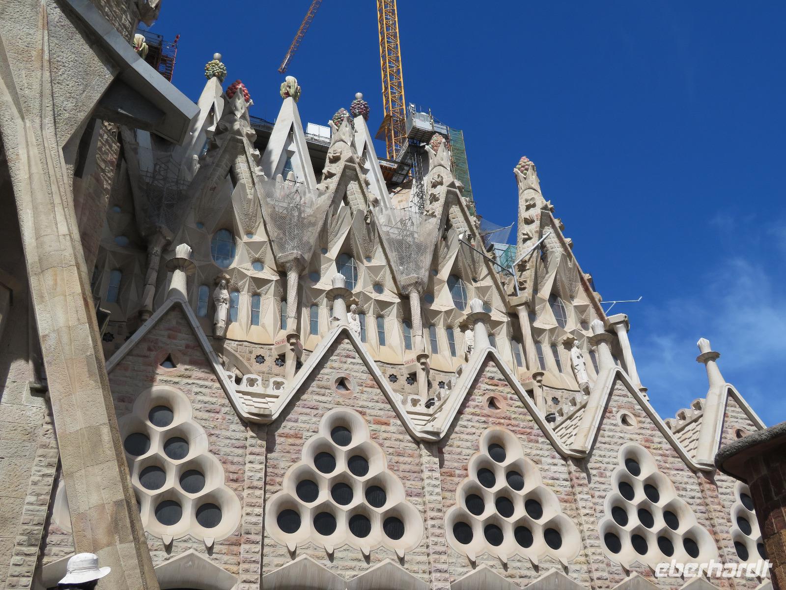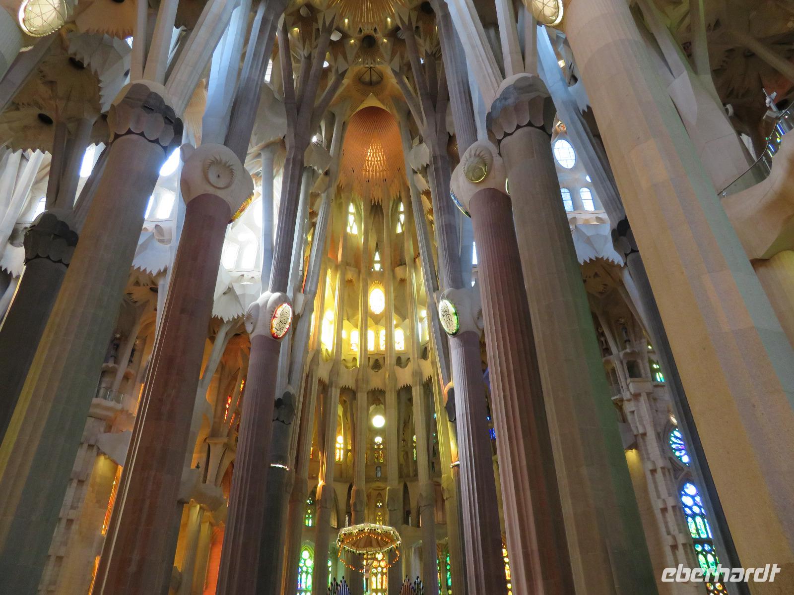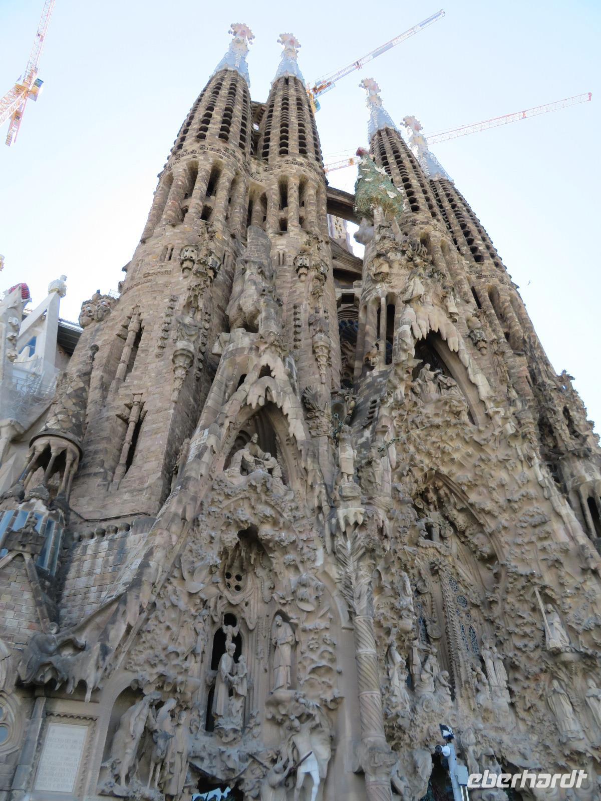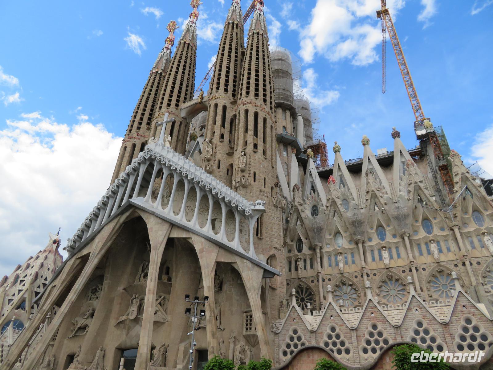 Der Berichterstatter kann zu den Erlebnissen nicht viel berichten, weil er sich um einen Diebstahl von Gästedokumenten kümmern musste - also: Barcelona bleibt ein heißes Pflaster! So gehe ich davon aus, dass alle Gäste die Via Laetetia, die großzügige Einkaufsstraße Passeig de Gracia mit bedeutenden Gebäuden des Architekten Gaudi sahen. Pünktlich erreichte die Gruppe den Park Güell, den Gaudi für den Unternehmer Guell in sieben Kilometer Entfernung vom Meer auf damals billigem Baugrund errichten konnte. Die Eintrittskosten dienen heute dazu, die Anlage, insbesondere die längste Bank der Welt, zu erhalten. Zur Mittagszeit fuhr der Bus zum Olympiastadion von 1992 und zum Aussichtspunkt am Montjuic mit bestem Blick auf Barcelona und seinen Hafen. Zeit für Imbiss und Fotos. Mit dem Bus ging es auch vorbei am Fußballstadion des FC Barcelona und in anderer Richtung vorbei an der Kolumbussäule, am Hafen, dem Olympiapark auf gewonnenem Land am Meer mit zahlreichen architektonisch interessanten Gebäuden der Neuzeit, teilweise durch japanische Architekten errichtet. Pünktlich zu zugemessenen Besichtigungszeit erreichten alle zu Fuß Gaudis Kathedrale Sagrada Familia. Nach einem Blick auf die Ostseite, „Christis Geburt" oder auch „Weihnachtsportal" genannt, betraten wir das riesige Kirchenschiff, um es an der Westseite, die „Kreuzigungsfassade" zu verlassen. Das Kirchenschiff mit Säulen, die einen Wald symbolisieren sollen und bunten, modernen Kirchenfenstern ist imposant. 2026 - im 100. Jahr des Todes von Gaudi, soll die bisher unvollendete Kathedrale dann vollendet sein - ein ganzes Wohnquartier, der Südfassade gegenüberliegend, soll bis dahin dem Ausbau eines Südportals und eines Zugangs über eine Rampe noch weichen.