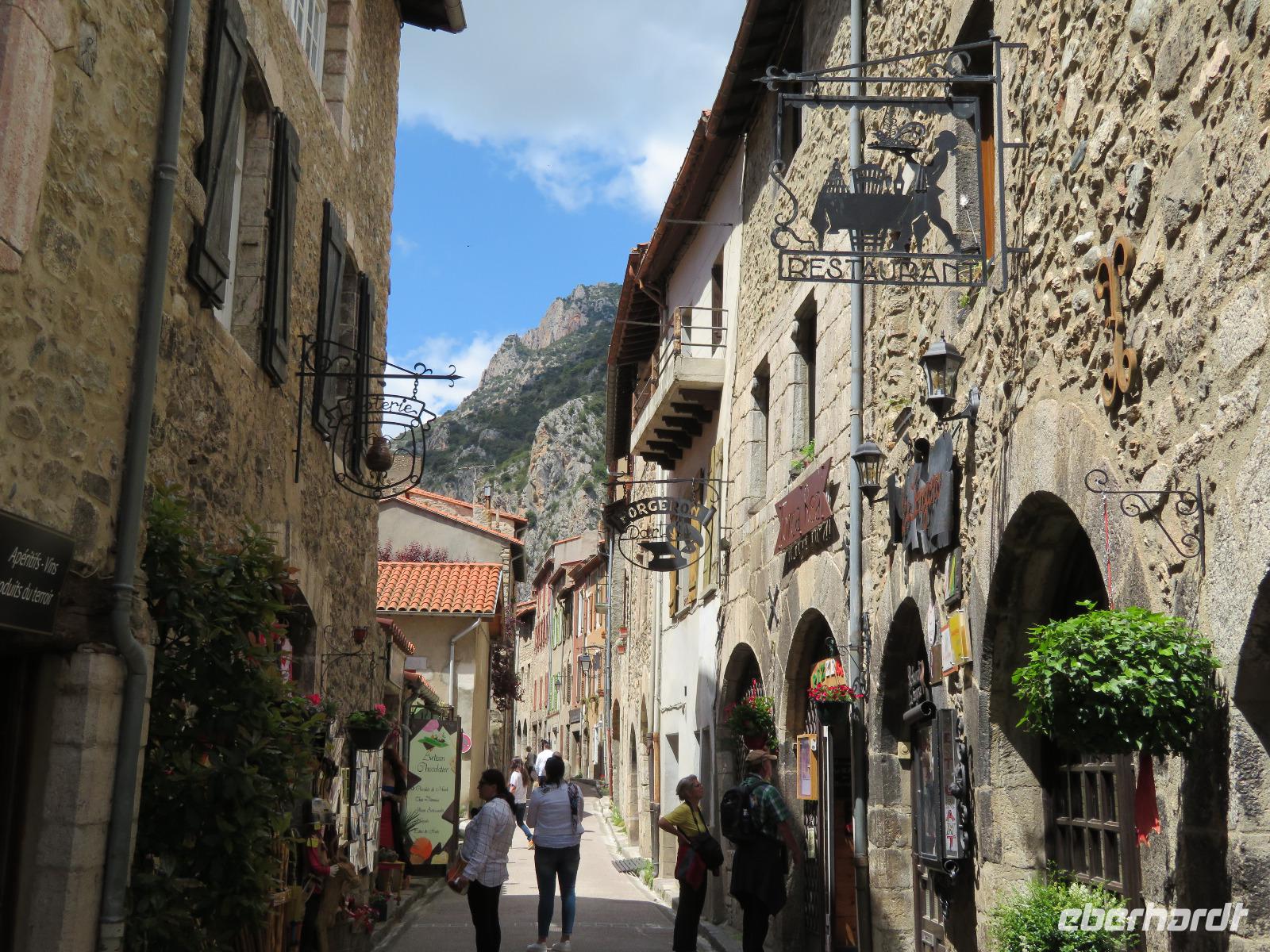 (worauf ein tolles Ersatzprogramm mit der spanischen Bahn in die Berge bei Nuria organisiert wurde). In diesem Jahr sollte es klappen und war auch für den Reiseleiter eine Premiere - die Fahrt mit dem Train Jaune. Zunächst starteten wir aber zu einem kleinen Stadtbummel in Perpignan - Kathedrale und San Campo, Loge und Le Castillet mit dem Stadttor Notre Dame. Mit zügiger Busfahrt ging es dann nach Villefranche, wo ausreichend Zeit blieb zum Bummel in den Gassen des einst wehrhaften Örtchens.