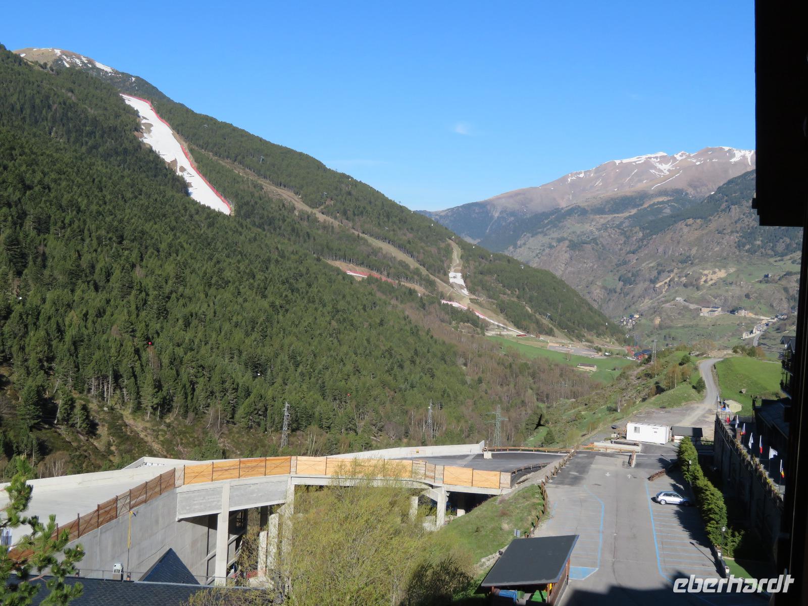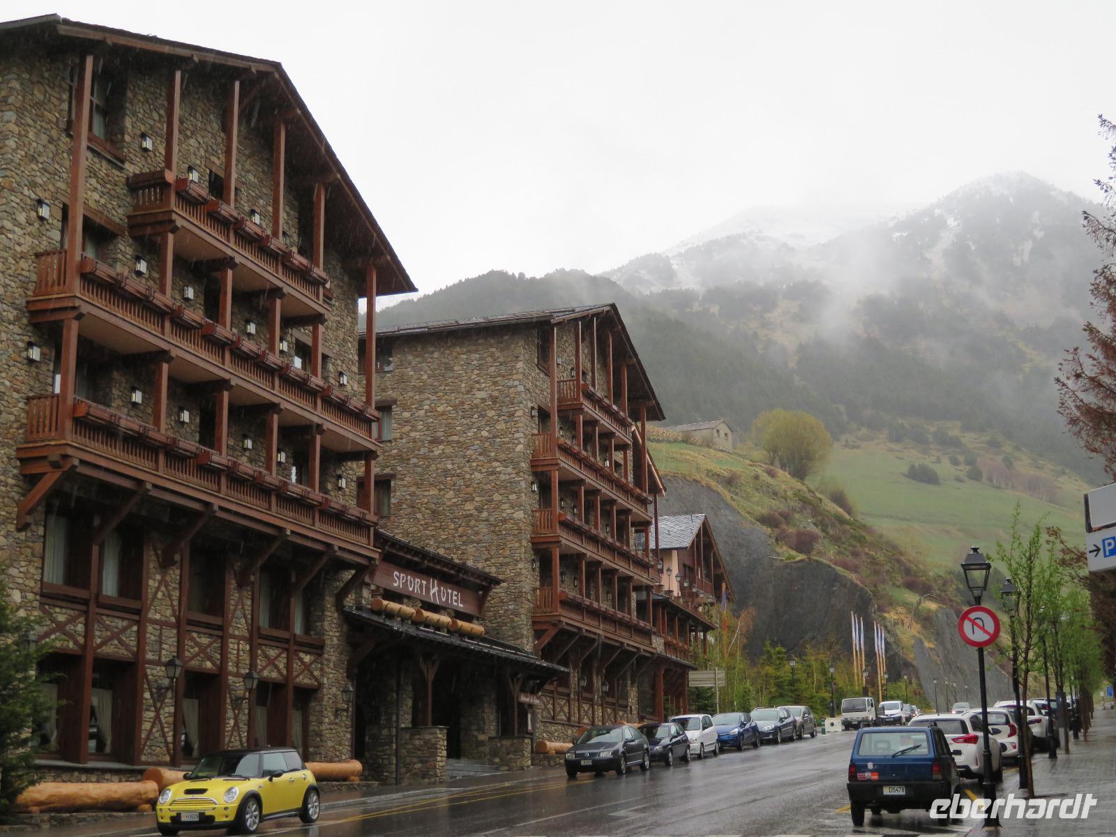 In zügiger Fahrt ging es dann mit dem Reisebus auf der französischen Variante über Bergstraßen bis auf 1900 Meter Höhe und dann durch den Tunnel an die (strenggenommen) EU-Außengrenze. Ein Bus mit andorranischen Kennzeichen, den wir nutzten, hatte bei der Einreise ein freundliches Winken als Begrüßung zur Folge. So erreichten wir noch vor achtzehn Uhr unser Hotel, über das sich alle nach dem recht nüchternden Hotel mit Motelcharakter von Gruissan freuten. Nette Begrüßung und tolles Buffet - willkommen in Andorra!