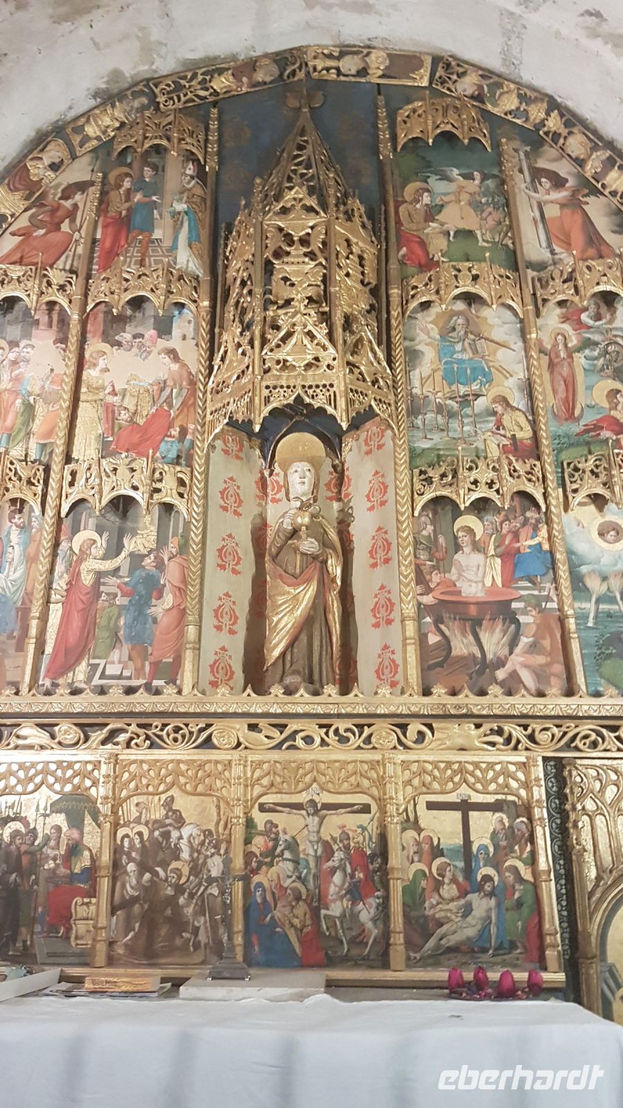 Wir sehen erst von außen Sant Miquel d´Engolasters mit dem 17 Meter hohen Glockenturm, und danach die berühmte Sant Joan de Caselles. In dieser Kapelle vom 11. Jahrhundert können wir einen schönen Altarretabel vom 16. Jahrhundert bewundern sowie eine Christusskulptur und Wandmalerei vom 12. Jahrhundert. In den entfernten Tälern Andorras konnte der gotische Stil sich nicht durchsetzen und es wurde relativ lange im romanischen Stil gebaut.