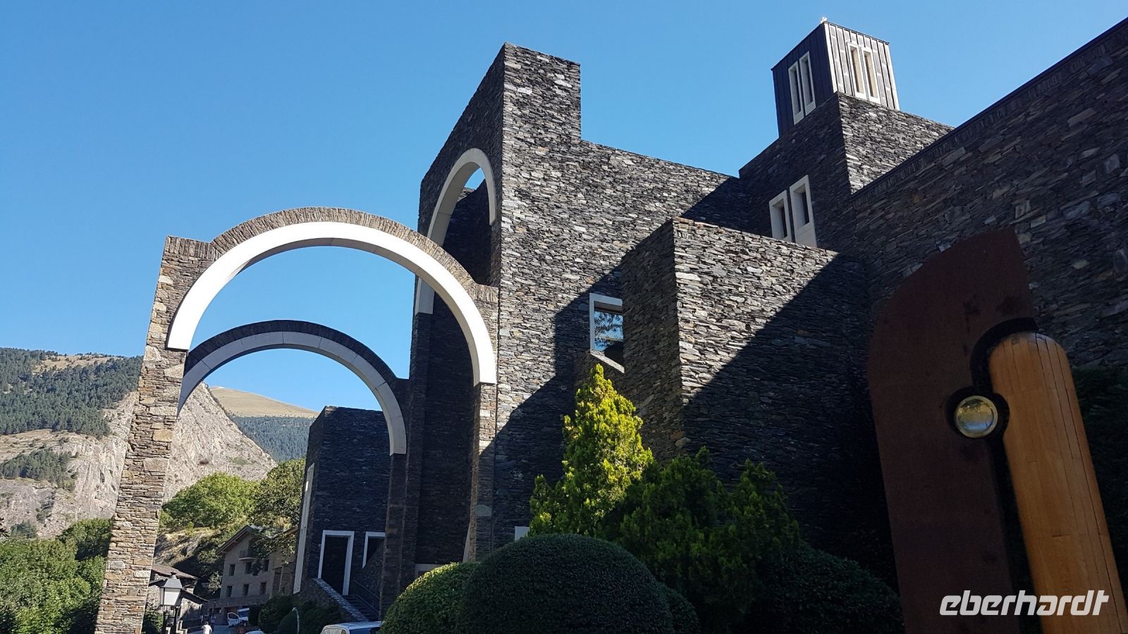 Wir treffen im Hotel am frühen Morgen unsere sympathische Gästeführerin Helga, die uns Andorra zeigen wird. Helga kennt sehr gut Andorra und neben den Sehenswürdigkeiten erzählt sie uns viel über Land und Leute. Heute ist vor allem viel Natur auf dem Programm, wir starten mit einem sehr schönen Panorama von Andorra im Roc del Quer, dann sehr schöne Pyrenäenlandschaften im Col de la Botella. Wir fahren auch zum Heiligtum Meritxell, wo die Jungfrau von Meritxell, die Schutzpatronin von Andorra, verehrt wird. Leider wurde die ursprüngliche mittelalterliche Kirche Opfer eines Brandes in 1972 und eine moderne Kirche wurde vom katalanischen Architekt Ricardo Bofill in der unmittelbaren Umgebung errichtet.