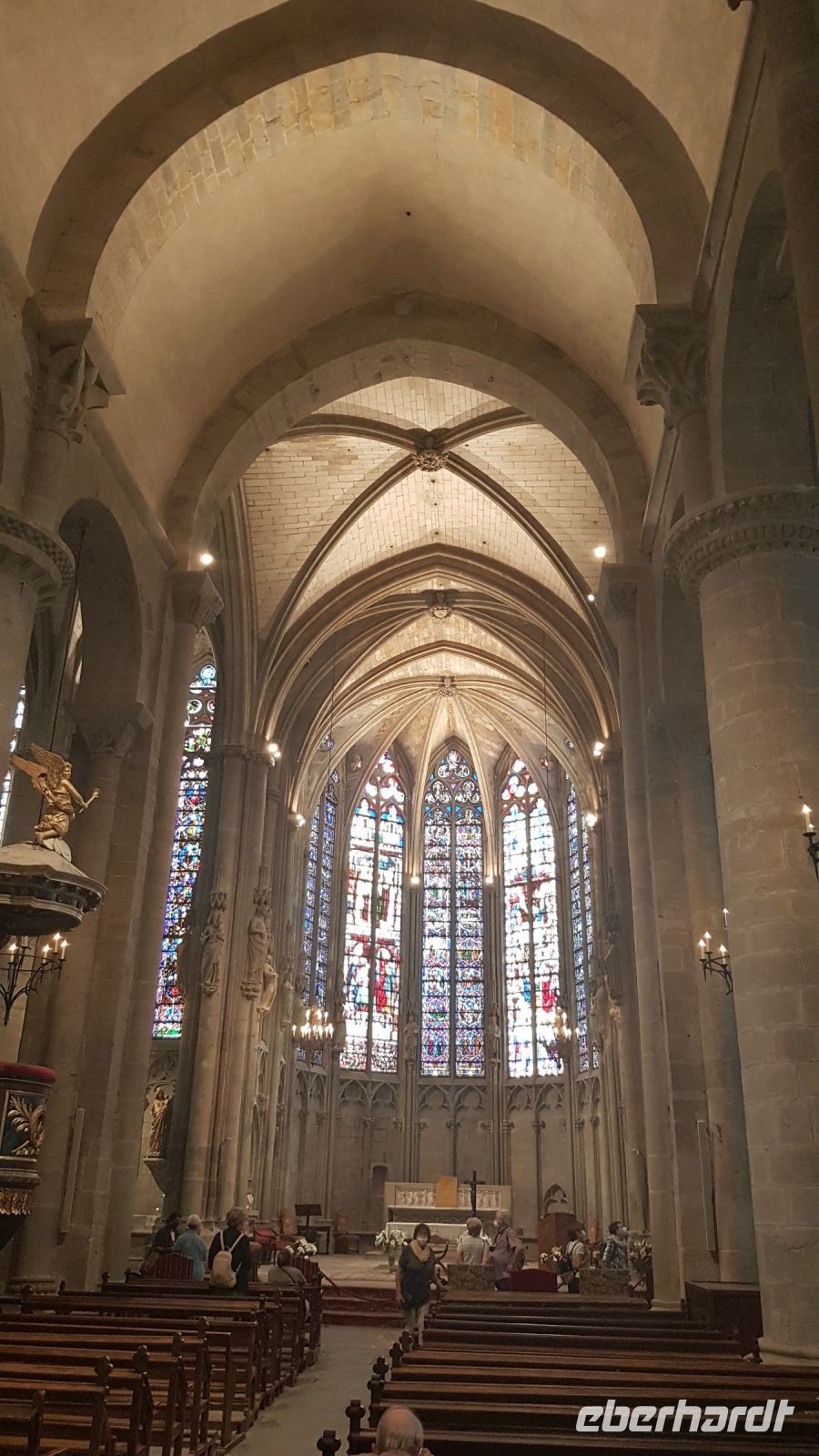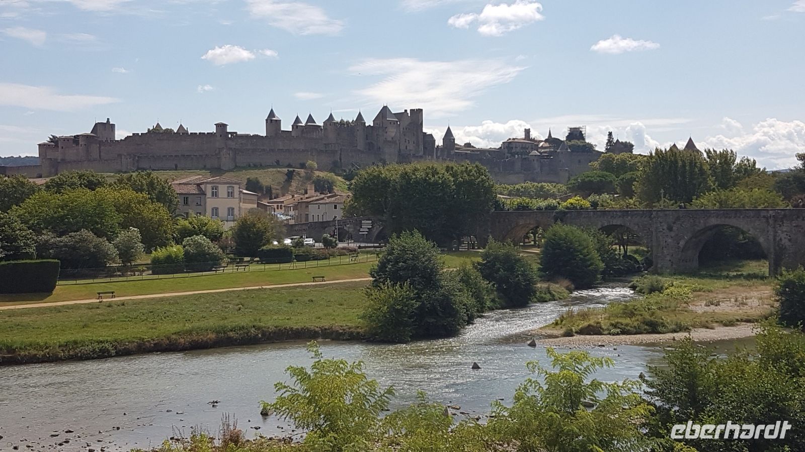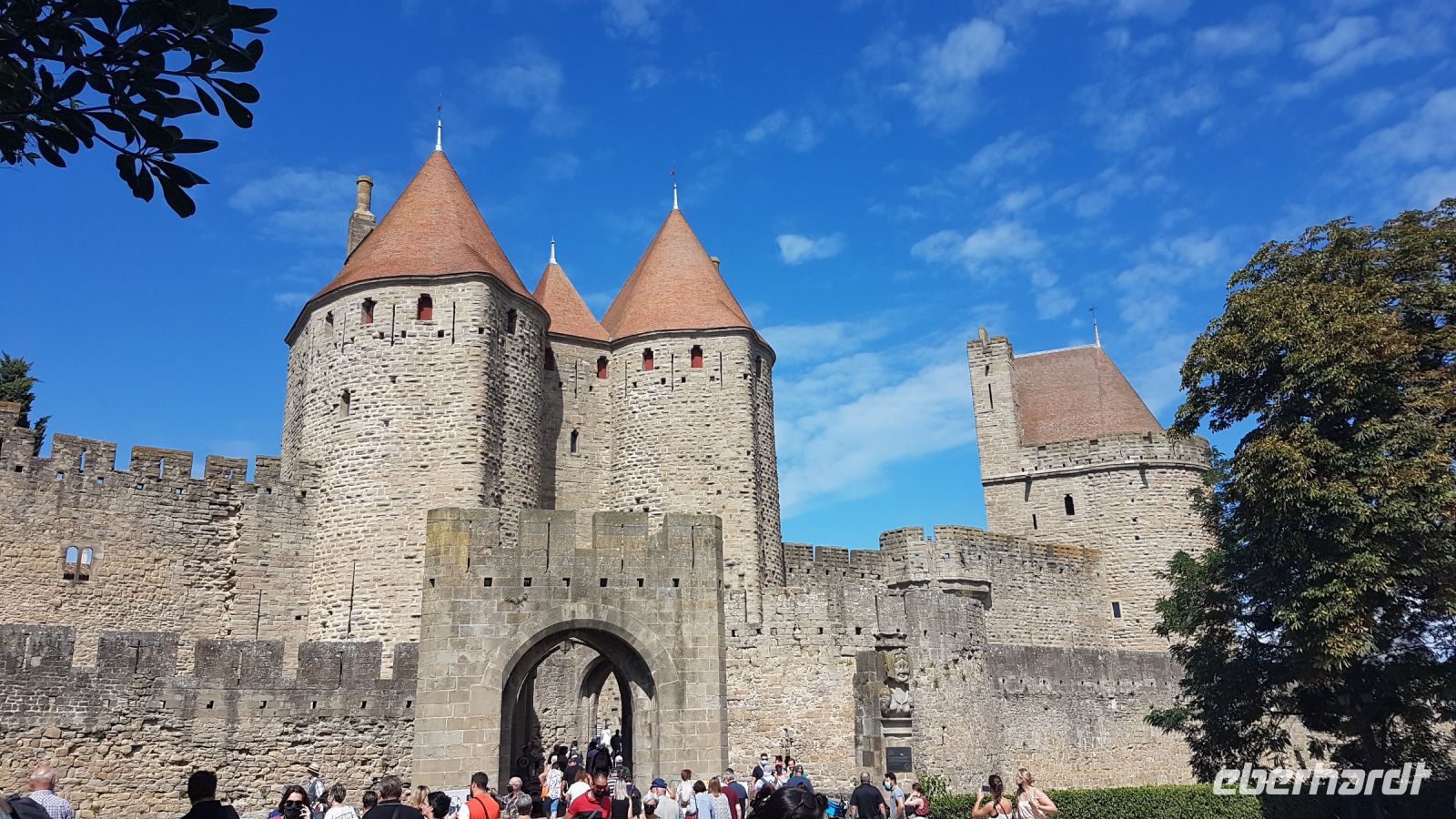 Heute fahren wir nach Carcassonne, durch die erhaltene Festungsmauer samt Toren und Türmen weltbekannt. Die Stadt war eine Hochburg der Katharenbewegung, bevor die 1209 in 2 Wochen eingenommen wurde und alle Einwohner verbannt wurden. Danach bildete sie einen Festungssystem an der Grenze Frankreichs mit 5 „Söhnen“ (andere Festungen). Im 19. Jahrhundert wäre die ungebrauchte Festung fast völlig verfallen, nur durch den Einsatz von Prosper Mérimée konnte der Architekt Viollet-le Duc eine umfangreiche Restaurierungsarbeit durchführen. Heute kann man sich fast wie im Mittelalter fühlen, viele Filme sind auch dort gedreht worden. Wir sehen von außen das Grafschloss, welches in der Festung eine zusätzliche Verteidigungsmauer schützte, und von innen die Basilika Saint Nazaire et Saint Celse, mit romanischen und gotischen Teilen.