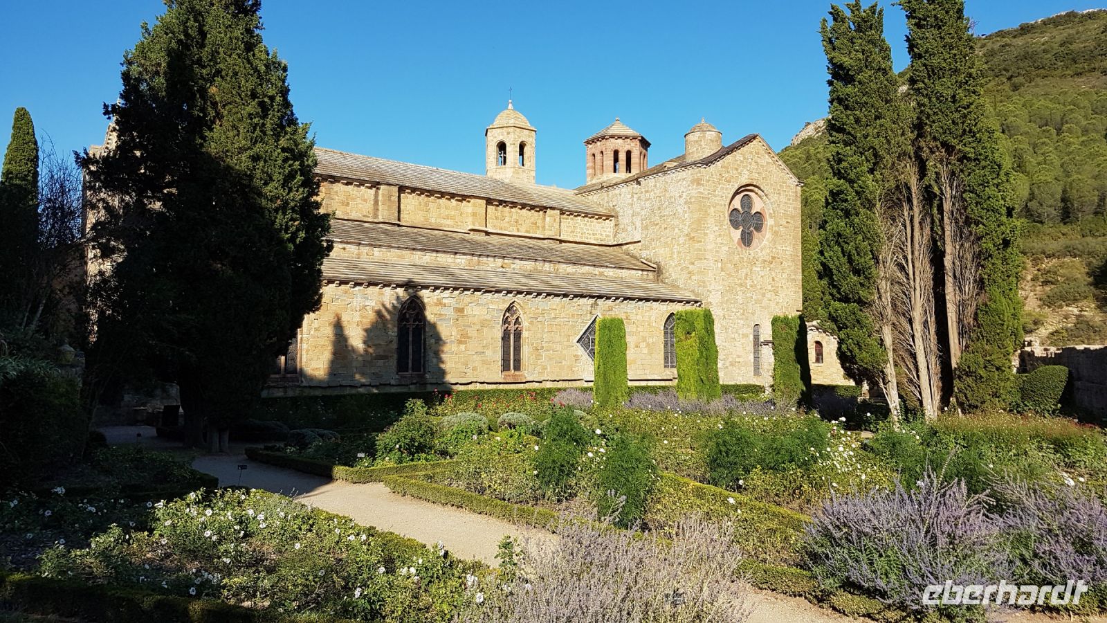 Die ehemalige Abtei von Fontfroide wartet schon auf uns, fast wäre sie nach Amerika gebracht. Durch den Einsatz von französischen Künstlern und Intellektuellen konnte die Abtei aber in Frankreich bleiben. Es handelt sich um das besterhaltene Klosterensemble des Zisterzienserordens aus dem 12. und 13. Jahrhunderts. Der nette deutschsprachige Gästeführer zeigt uns die verschiedenen Gebäude der Anlage. Höhepunkt ist die Abteikirche, wo er die hervorragende Akustik durch einen Gesang a capella beweist - sehr beeindruckend!