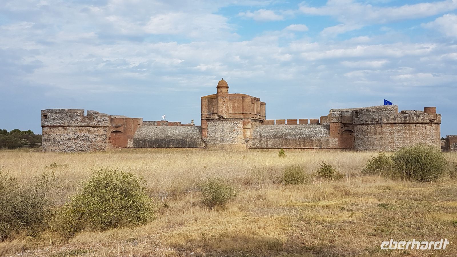 Unser nächster Halt ist auf einem Rastplatz der Autobahn. Nach einem kurzen Fußweg bewundern wir die mächtige Festung von Salses, ein spanisches Militärwerk von 1504, Übergang der mittelalterlichen Burg zur neuzeitlichen Festung.
