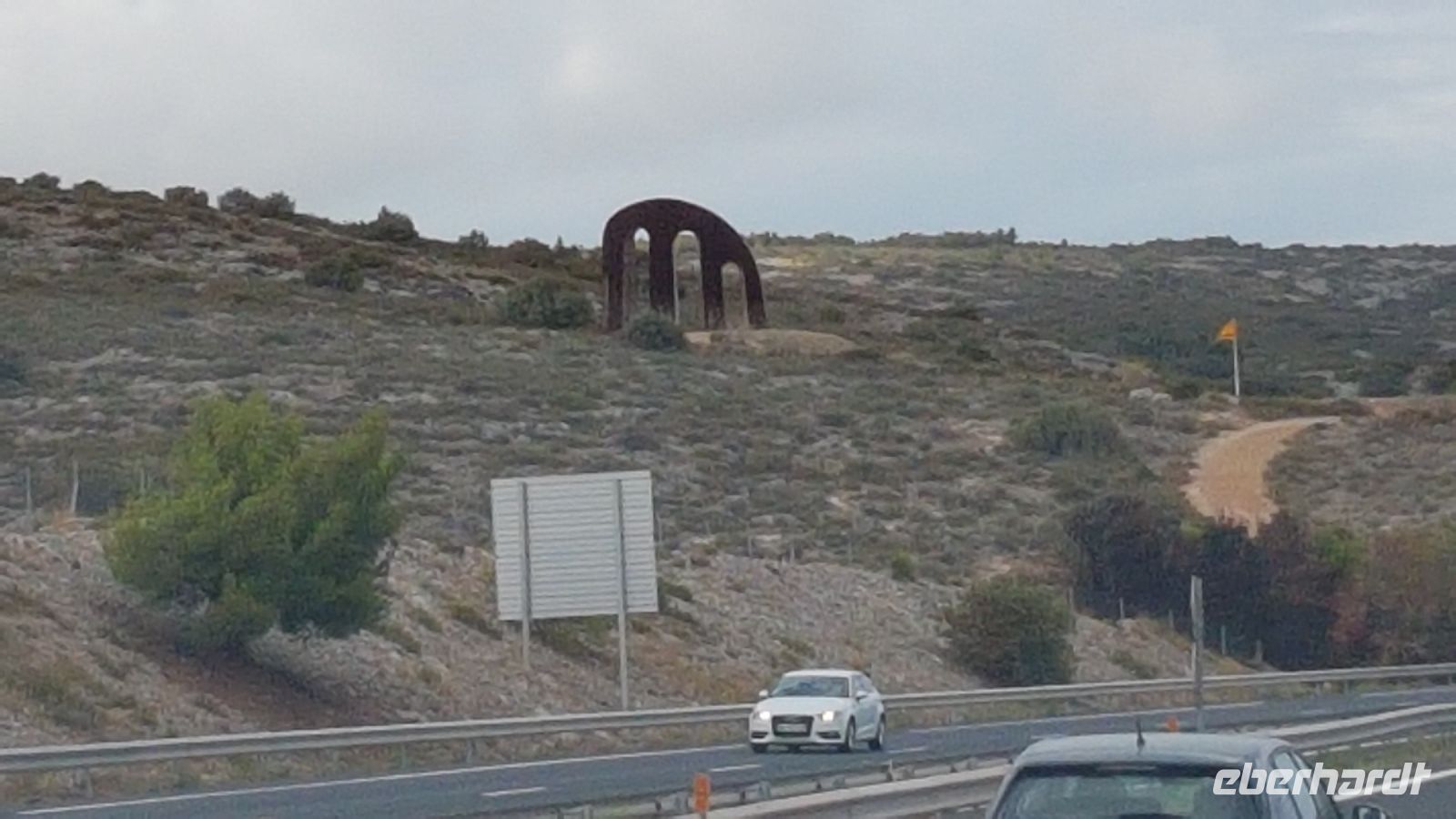 Wir fahren kurz danach an der „Pforte zu den katalanischen Ländern“, vorbei, ein Werk von 2003. Ab jetzt sind wir zwar noch in Frankreich, aber nicht mehr im katalanischen Gebiet.