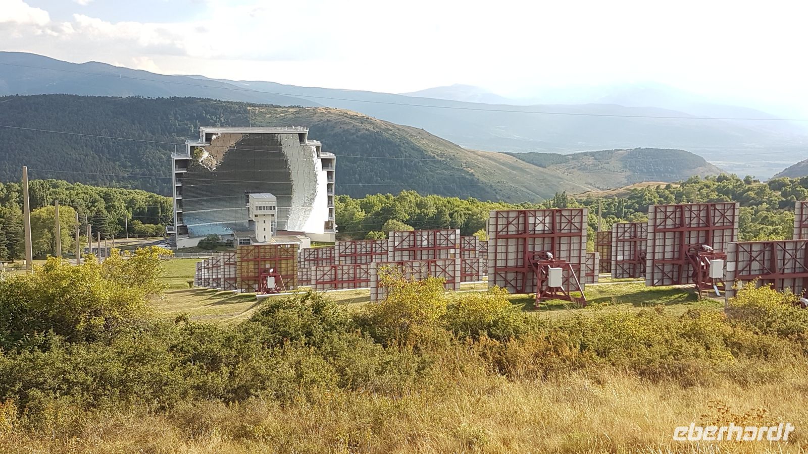 Dann fahren wir mit dem Bus nach Villefranche-de-Conflent, eine sehr urige mittelalterliche befestigte Stadt. Oberhalb befindet sich Fort Liberia, eine Festung von Vauban. Nach einer kleinen Runde dort (sehr touristisch, aber interessante Kirche Saint-Jacques und viele Geschäfte mit lokalen Spezialitäten) müssen wir zum Bahnhof. Wir wollen nämlich jetzt mit dem Gelben Zug „Train Jaune“ eine schöne Fahrt durch die Pyrenäen erleben. Wir merken wie wir allmählich an Höhe gewinnen, was sich auch an der schönen und unversehrten Landschaft feststellen lässt. Unser Ziel Font-Romeu erreichen wir nach anderthalb Stunde, dort holt uns Javier mit dem Bus ab. Wir sehen dann einen der größten Sonnenschmelzöfen der Welt, den „Four solaire“ von Odeillo. Diese wissenschaftliche Forschungseinrichtung kann durch 63 Spiegeln eine konzentrierte Sonnenstrahlung und damit eine extreme Hitze (bis 3600 Grad!) erzeugen.