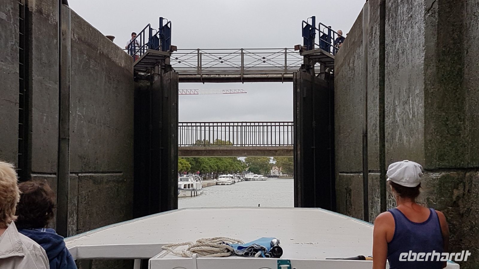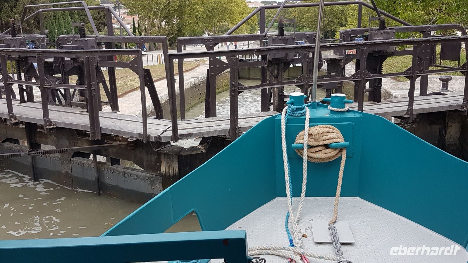 Danach erwartet uns eine Kreuzfahrt auf dem Canal du Midi, ab Toulouse Teil eines Gesamtprojektes, das durch den Wasserweg den Atlantik mit dem Mittelmeer verbinden sollte. Erst Pierre-Paul Riquet ist es gelungen, die technischen Herausforderungen zu überwinden und durch ein System von Schleusen, Kanälen und Wasserbrücken einen 240 Kilometer-Weg für die Binnenschifffahrt im Jahr 1681 freizumachen (ein Jahr nach seinem Tod). Wir bewundern die die Expertise der Kapitänin bei den Drehungen und die Manöver in den Schleusen, genießen ein gutes Essen an Bord und bewundern die schöne Landschaft. Die große Kathedrale von Béziers auf einem Hügel der Stadt ist sehr gut zu sehen. Wir fahren sogar am Ende der Kreuzfahrt ein weiter als geplant, u.a. auch auf einer Kanalbrücke. Unser Boot ist übrigens eine deutsche Produktion von 1914, und immer noch fit!