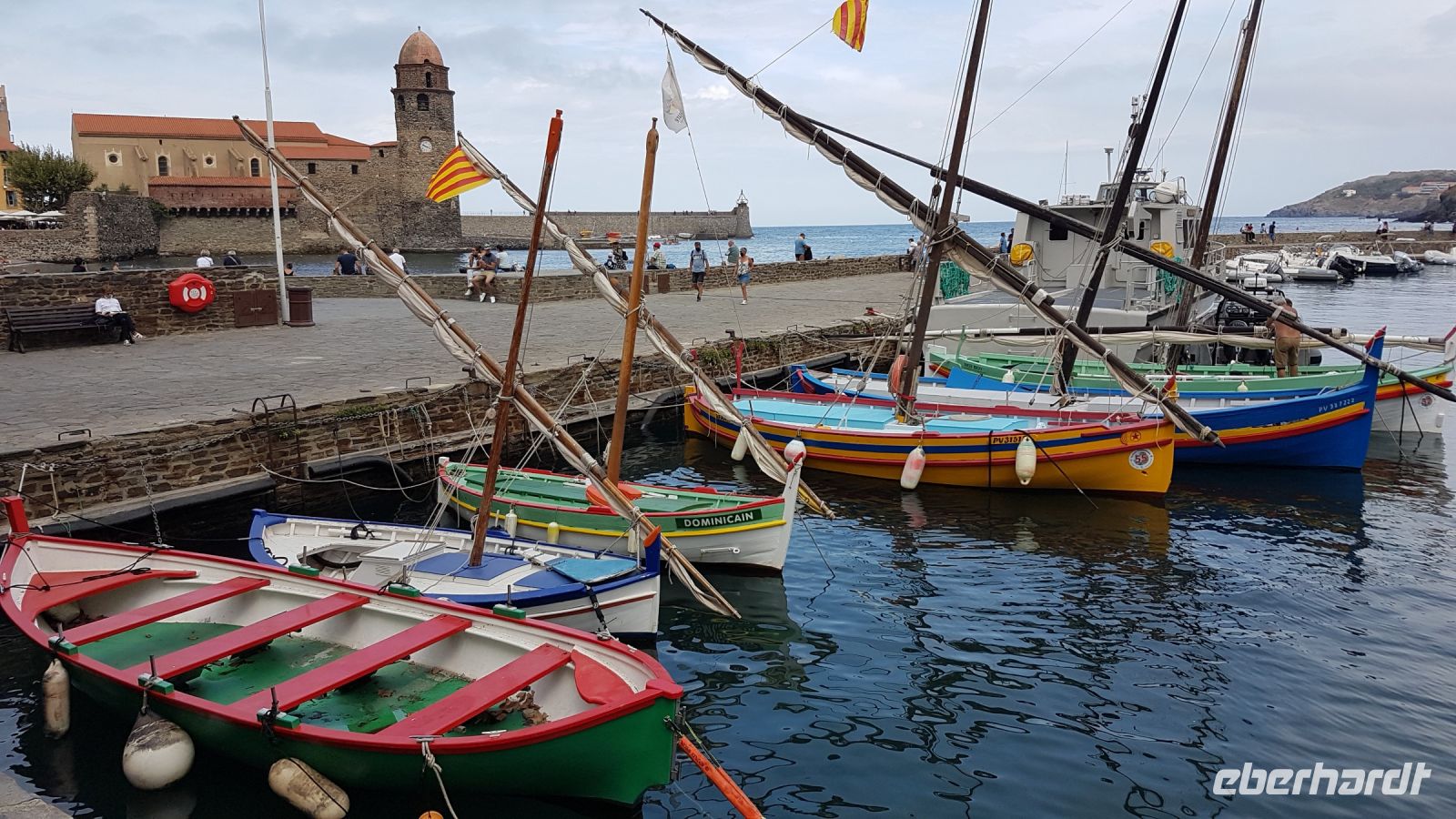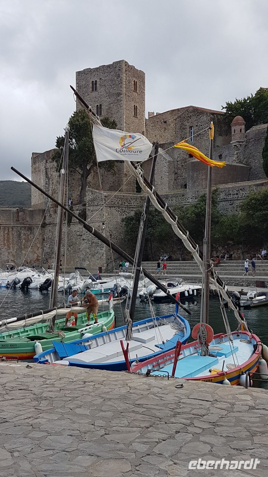 Dann ein Stopp in Port-Bou, wo wir das Denkmal an den deutschen jüdischen Schriftsteller Walter Benjamin sehen können. Er wurde dort 1940 unter mysteriösen Umständen tot gefunden (Selbstmord?), nachdem seine gelungene Einreise nach Spanien in Frage gestellt wurde. Danach wartet auf uns die schöne kleine Küstenstadt Collioure mit ihrem malerischen Fischerhafen, der Vauban-Festung und den Anschovis-Verarbeitungswerken. Die Stadt sah 1908 die Gründung des „Fauvismus“, eine neue künstliche Bewegung der Malerei, durch Matisse und Derain. Die Kirche am Hafen mit einem ehemaligen Leuchtturm als Glockenturm war ein beliebtes Motiv für diese Künstler.
