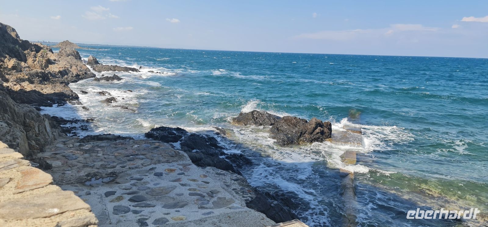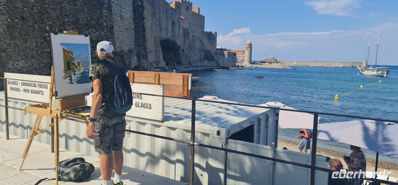 Frankreich empfing uns mit tollem Wetter. Kaffee tranken wir im schönsten Dorf Collioure. Seine bunten Häuser sind auf den Leinwänden vieler Künstler verewigt, darunter Matisse und Picasso. In der Nähe der alten Festung, des königlichen Palastes aus dem 9. Jahrhundert, malte auch an diesem Tag ein Künstler. Zahlreiche Touristen badeten im Mittelmeer, dessen Wasser türkisblau schimmerte.