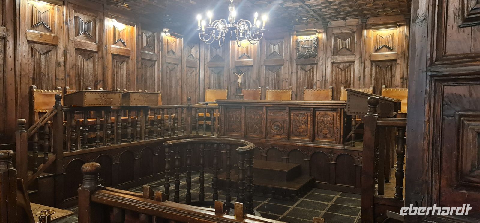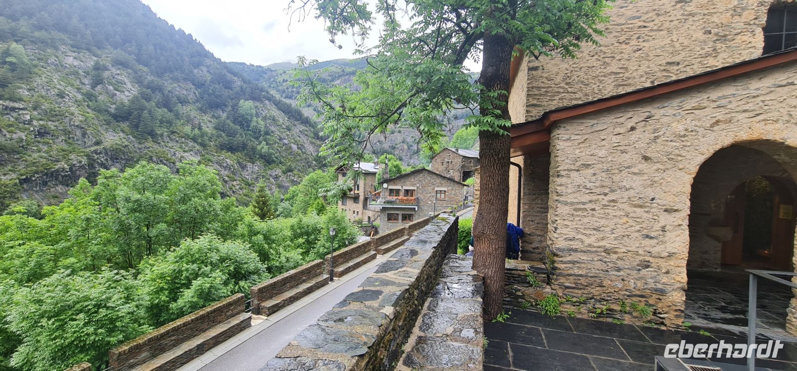 Das Wetter besserte sich nicht, also änderten wir unsere Pläne ein wenig. Auf unserer Reise durch Andorra hielten wir an der Kirche von Meritxell, einer modernen Kirche, die perfekt in die umliegenden Berge passte. Wir aßen in einem typischen Restaurant namens Borda zu Mittag, besuchten eines der ältesten Häuser in Ordino und das Haus, in dem das andorranische Parlament war, das aus 24 Personen bestand.