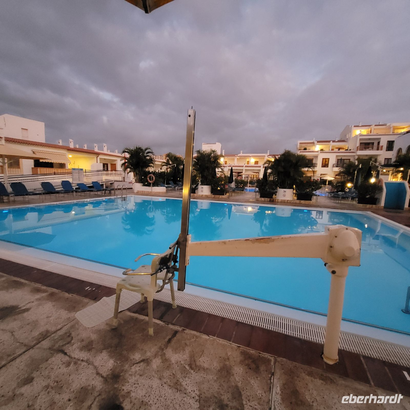 Heute ist es an der Zeit den Urlaubsort zu erkunden. Mit dem Rollstuhl, im günstigsten Fall elektrisch betrieben, ist es angenehm auf breiten Wegen talwärts Richtung Strand zu fahren. Es ist sogar möglich, für die Dauer des Urlaubes einen solchen Rollstuhl (oder einen schnittigen Scooter) aus einem Verleih unmittelbar neben dem Hotel zu beziehen. Die Strandpromenade von Los Cristianos ist auf 9km Länge (!) rollstuhlgerecht ausgebaut es reiht sich ein Geschäft bzw. ein Restaurant an das andere, so dass man stundenlang schlendern und verweilen kann.
