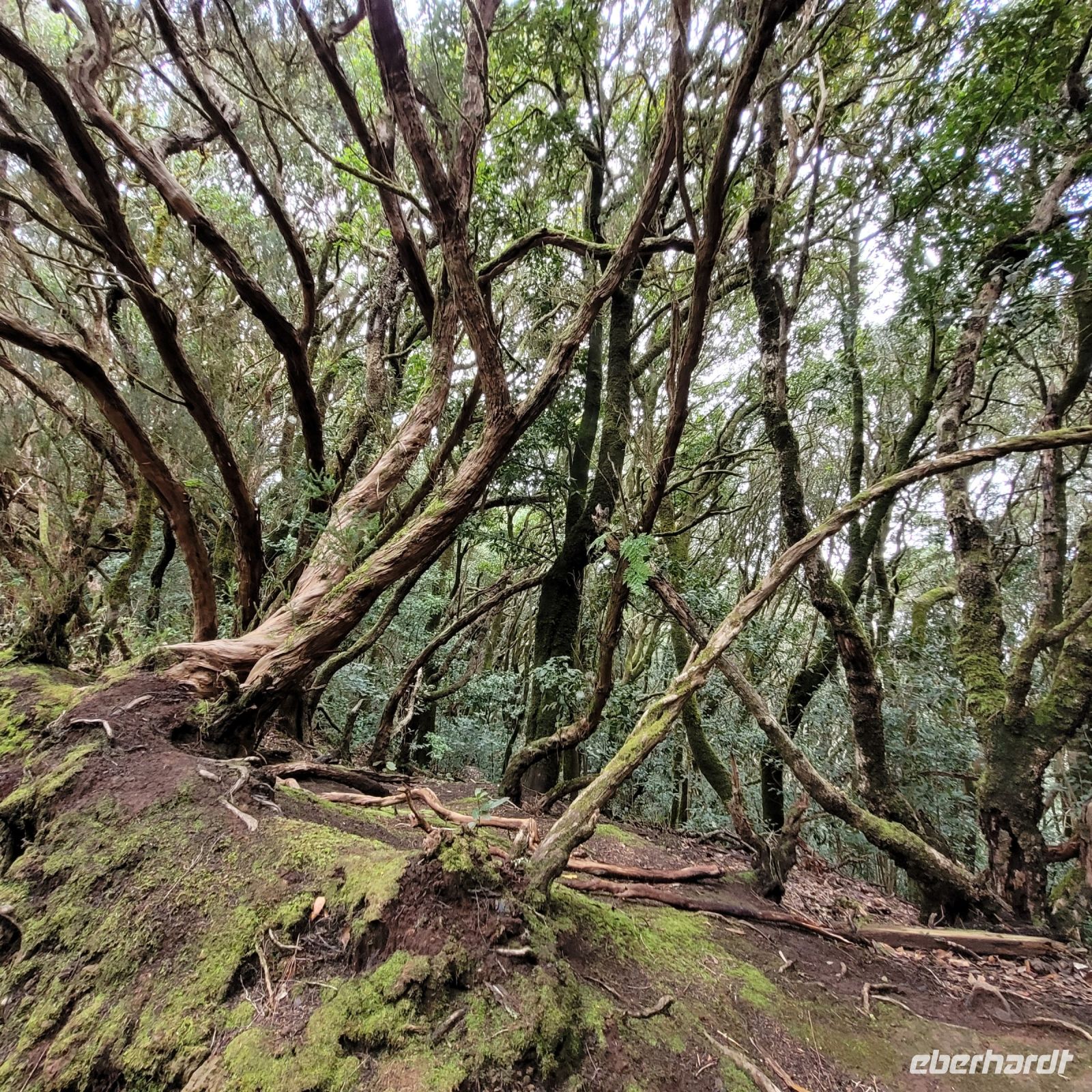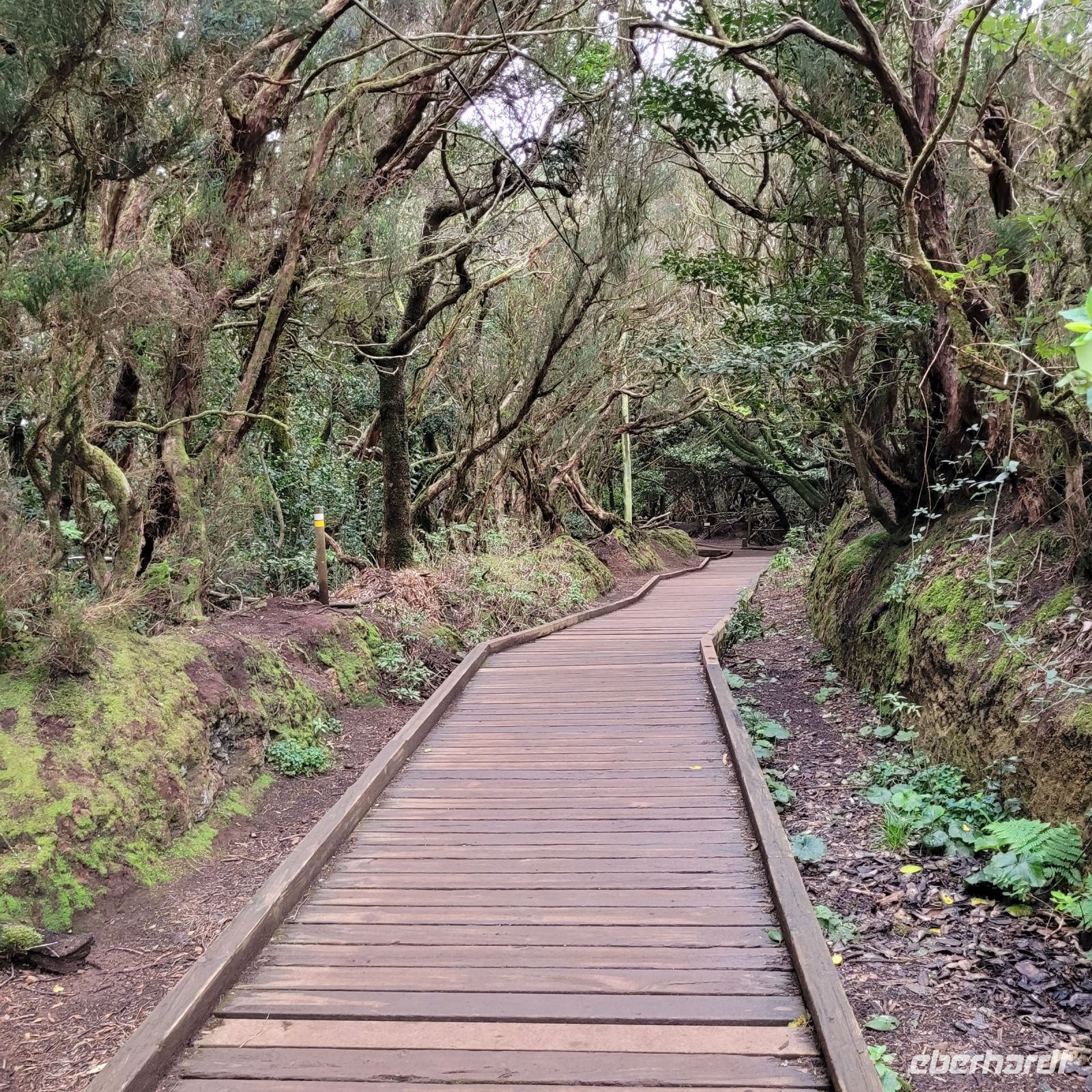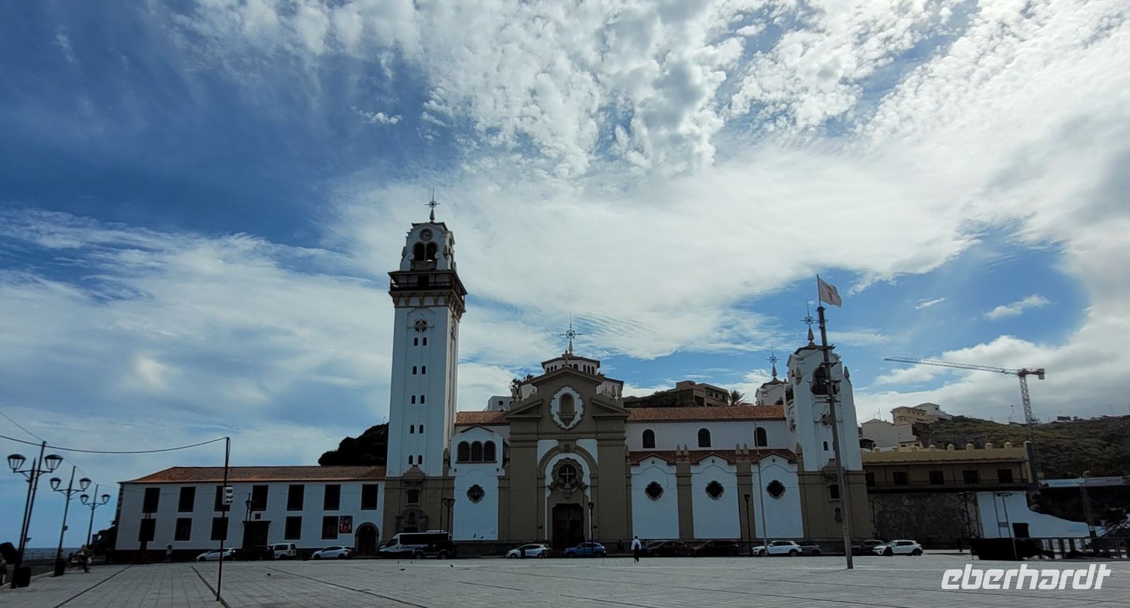 Für unseren heutigen Ausflug ist das Anagagebirge, der Nordostzipfel Teneriffa, das Ziel. Zunächst stoppen wir aber in La Laguna, der historischen Hauptstadt der Insel. Überraschend gut läßt sich die von altehrwürdiger Architektur geprägte Stadt berollen. Nach einer Mittagspause im Schatten einer mächtigen Kirche geht es dann mit unserem rollifreundlichen Kleinbus weiter. Bei Las Mercedes, beginnt ein dichter Urwald, die Landschaft hier ist gänzlich anders, als wir sie bisher bei der Fahrt über die Insel erlebten. Die vielgerühmte Vielfalt der kanarischen Insel „des kleinen Kontinentes“ beginnt sich für uns zu bestätigen. Auf knapp eintausend Höhenmetern, am Cruz del Carmen, ein Stopp. Bei bestem Wetter und Blick auf den Teide genießen wir die Aussicht und rollen dann auf dem rolligerechten Weg mitten durch den Lorbeerwald. Nun geht es wieder Richtung Süden. In Candelaria stoppen wir um mit der Besichtigung Basilica de la Virgen eines der bedeutendsten Gotteshäuser der Insel zu würdigen. In unmittelbarer Nähe stehen auch die Guanchenstatuen, welche an die Ureinwohner des Eilands erinnern. Wieder im Hotel angekommen ist dann auch schon wieder Zeit zum Abendessen.