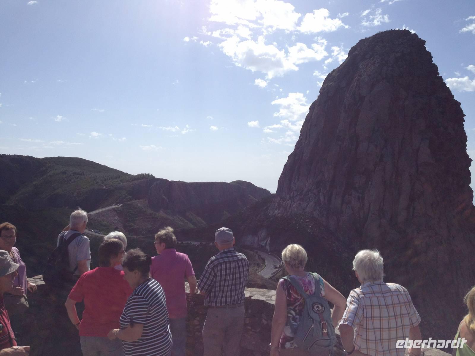 Die Sonne noch einmal scheint und wir sind fertig für das erste Fähre nach La Gomera nehmen! Wie gute deutshce leute(ich habe auch als deutscher ich mich verhalten), waren wir pünktlich und sah wie das Fähre kommt. Zum Glück die Route angenehmen war.Im Hotel haben wir Melanie getroffen und dann ihre Präsentation fangen wir den Tagesausflug. Das erste Stopp war in Los Roques, einem eindrucksvoll Panorama!! Dann sah wir die Aussichtspunkt Igualero mit den kleine Kapelle.