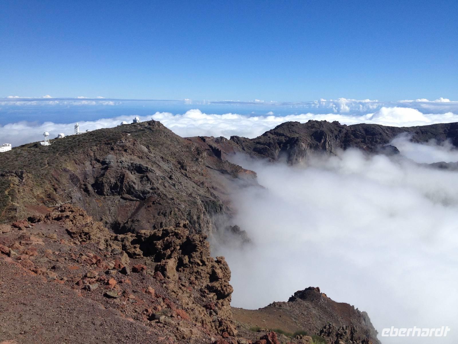 Danach fahrten nach Roques Los Muchachos, wo laufen wir nach dem Aussichtspunkt um die ganze Caldera de Taburiente zu sehen. Leider der Tag bewölkt war und wir können die Punkte von die Berge gesehen, trotzdem eine gute panorama war.