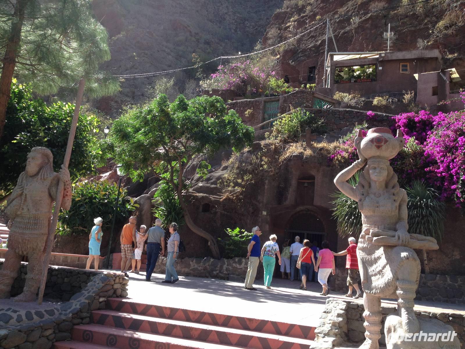 Dort haben wir den Krater, Las Palmas Stadt und die Küste. Weiterfahrt nach Teror, diesen Ort mit Gemüchligkeit wozu die Kiefer Basilike besichtigen und Freizeit hatten. Dann direkt nach Valleseco zum abendendessen und nach Fataga zu fahren. Nachdem durch den Canyon dass erinneren uns an die Western Filmen bis dem Aussichtspunkt.