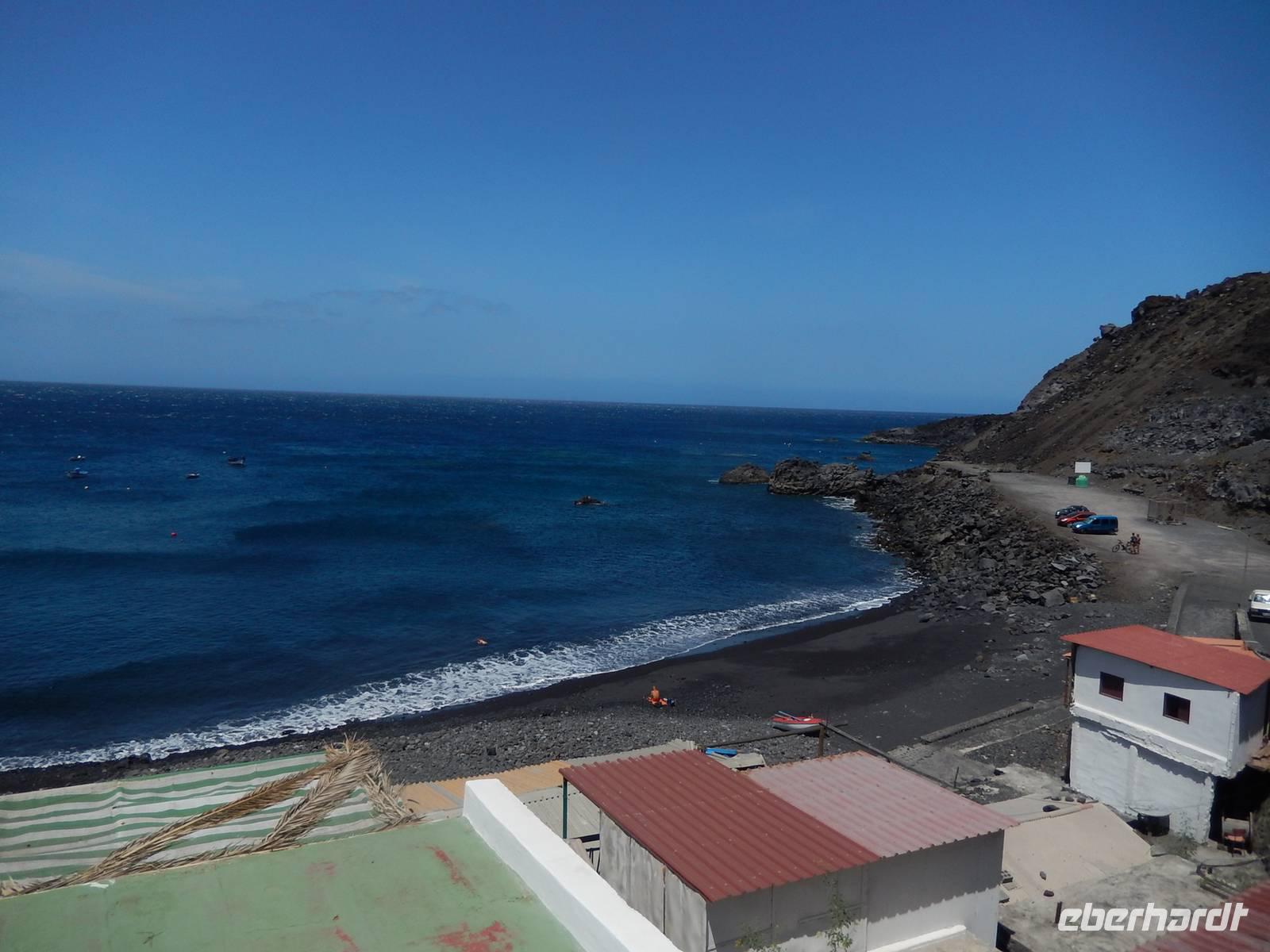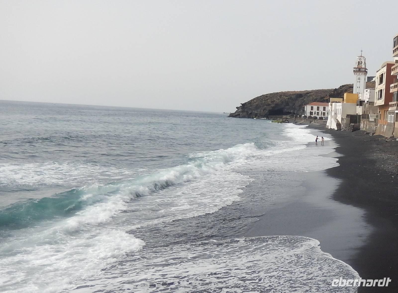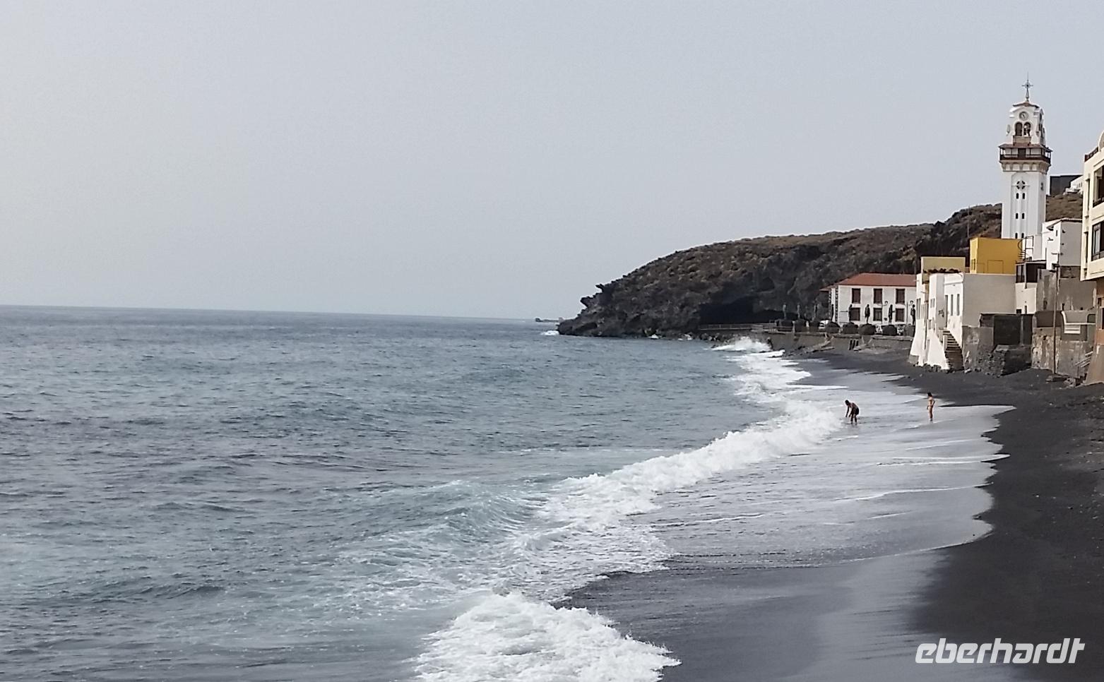 In unmittelbarer Nähe befindet sich der „Playa de La Arena", wo Benjamin 10 Jahre lang lebte und wo er immer noch eine Ferienwohnung besitzt. Hier hatte ich mir eine kleine Überraschung ausgedacht: Auf der Terrasse des Lokals „Neptuno Restaurant" hatte ich für unsere Eberhardt-Gruppe Plätze mit Blick auf den Strand reserviert und wir wurden bereits mit Sangria und spanischen Tapas (wie Tintenfische oder Kroquetten) erwartet. Hier blieb uns Zeit zum Trinken, Singen, Baden und Genießen der herrlichen Ausblickes auf Los Gigantes, den „Punte de Teno" mit dem Leuchtturm, sowie auch auf die Nachbarinseln La Gomera und La Palma.
