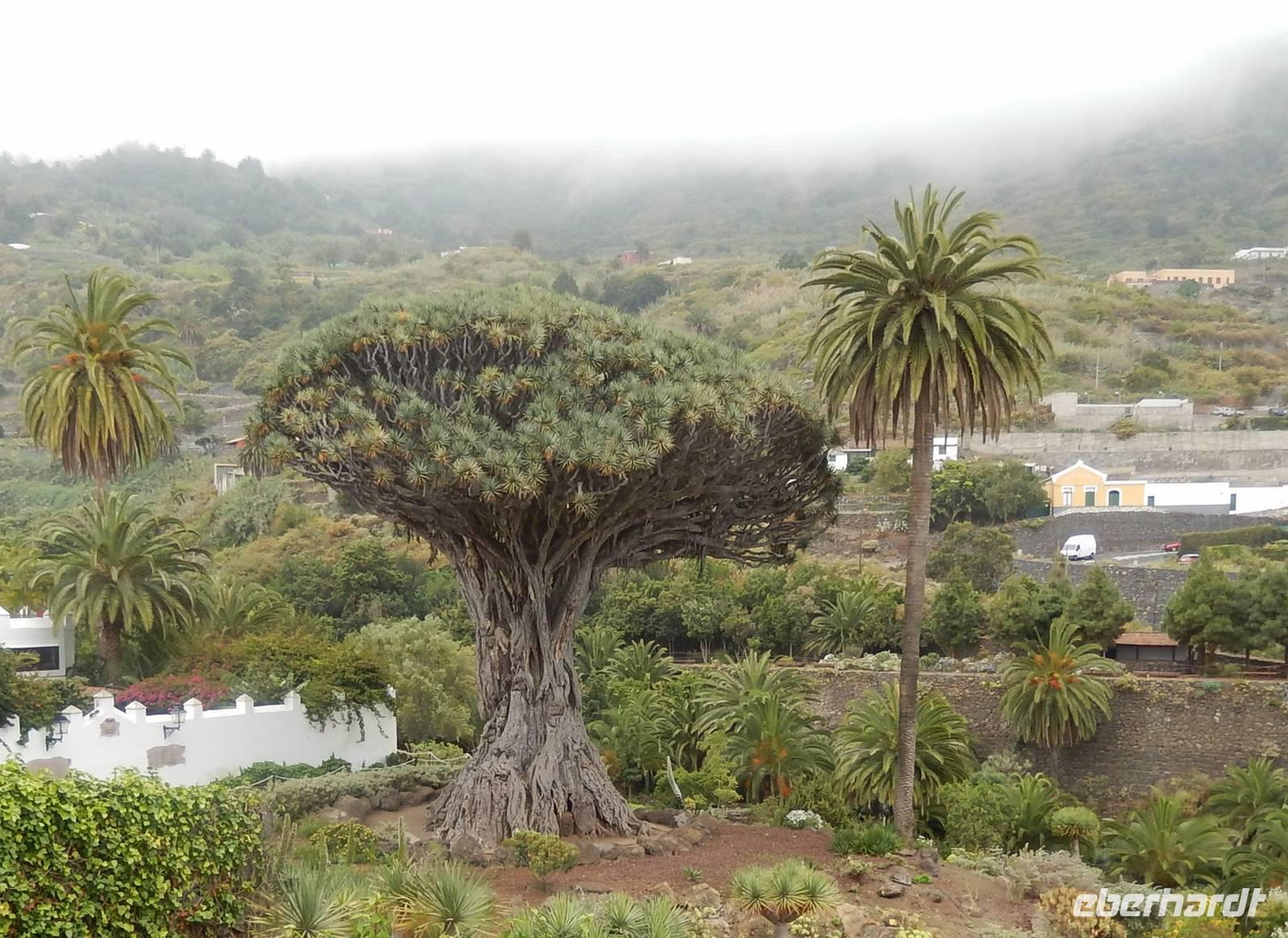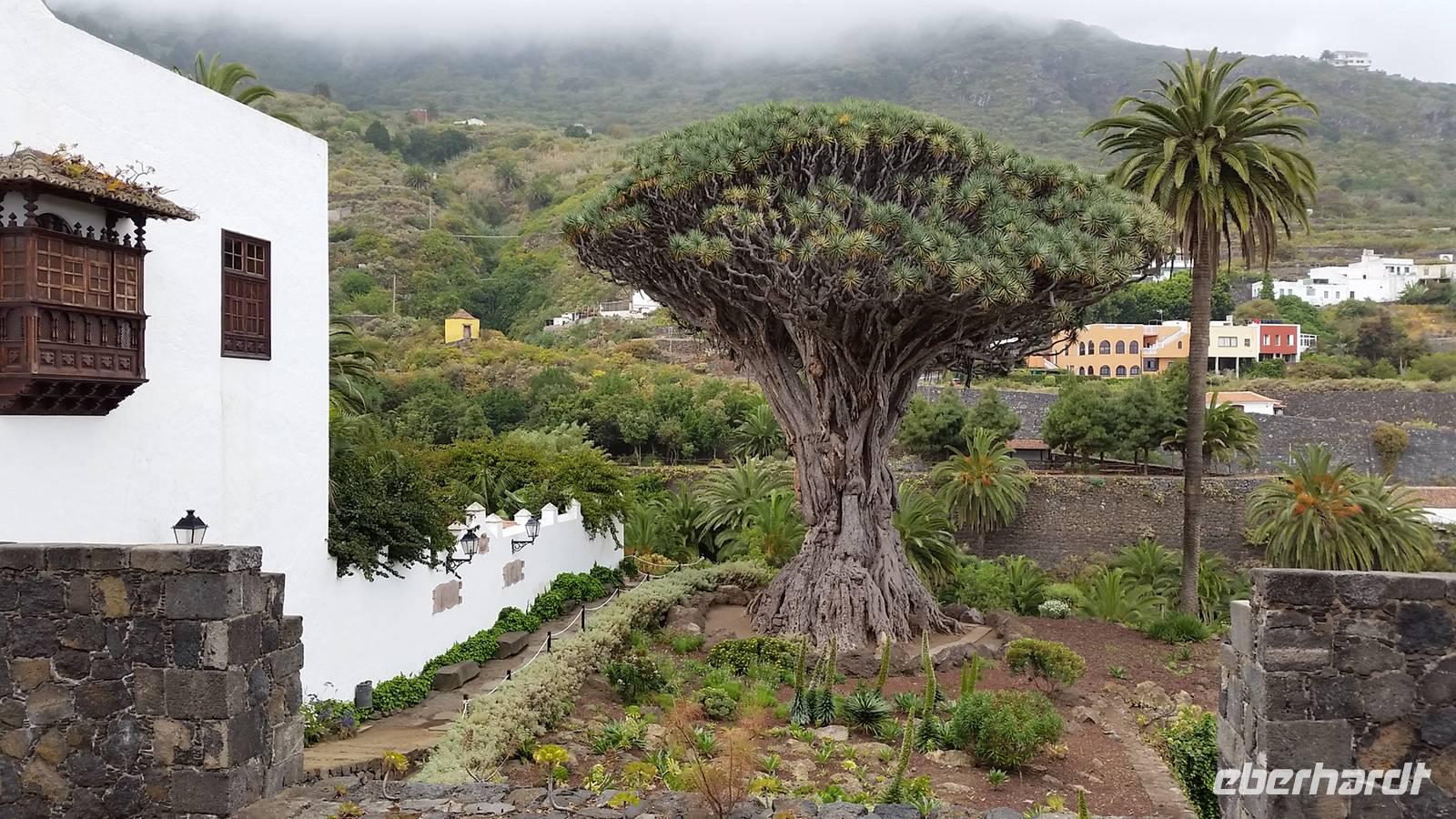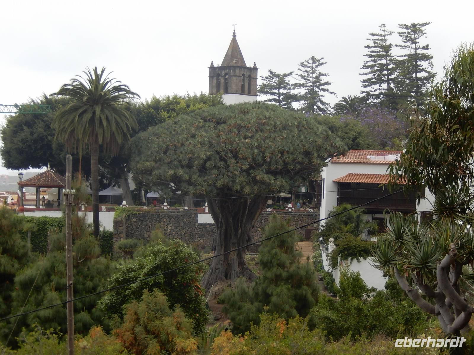 Anschließend fuhren wir weiter nach Puerto de la Cruz, wo Anna uns die wichtigsten Punkte des touristischen Zentrums der Nordküste zeigte: den Hafen, die Balkone, den schönen Plaza del Charco im Zentrum sowie die berühmten Meerwasserschwimmbäder Lago Martiánez von Cesar Manriquez. Nachdem wir nun schon viel gesehen hatten, blieb uns jetzt etwas Zeit, um eine Kleinigkeit zu essen oder einfach durch die Straßen zu bummeln. Später trafen wir uns, um weiter nach Icod de los Vinos zu fahren, die durch den "1.000-jährigen Drachenbaum" (Drago Milenario) berühmt ist. Mit seinen sechs Metern Umfang und 17 Metern Höhe ist er „angeblich" der größte und älteste Drachenbaum der Welt.