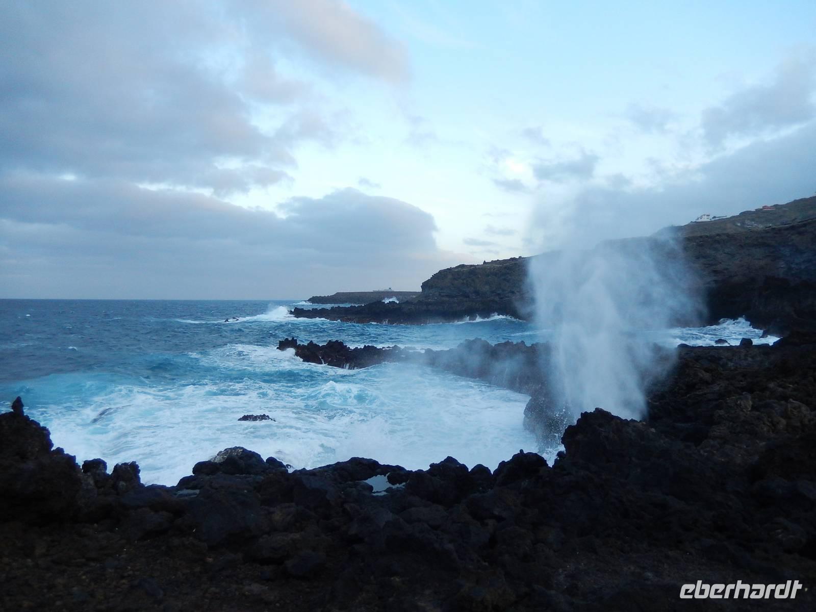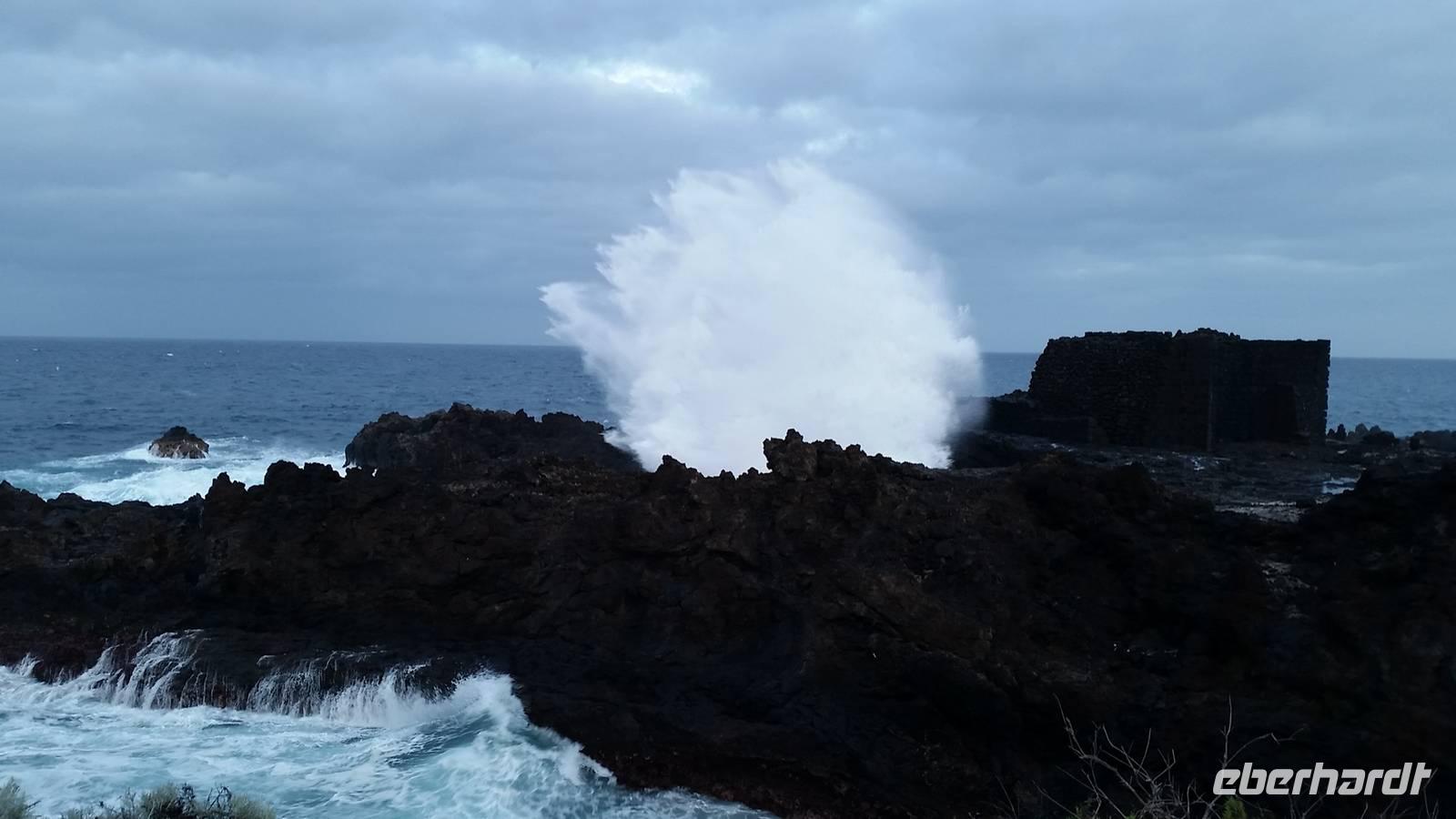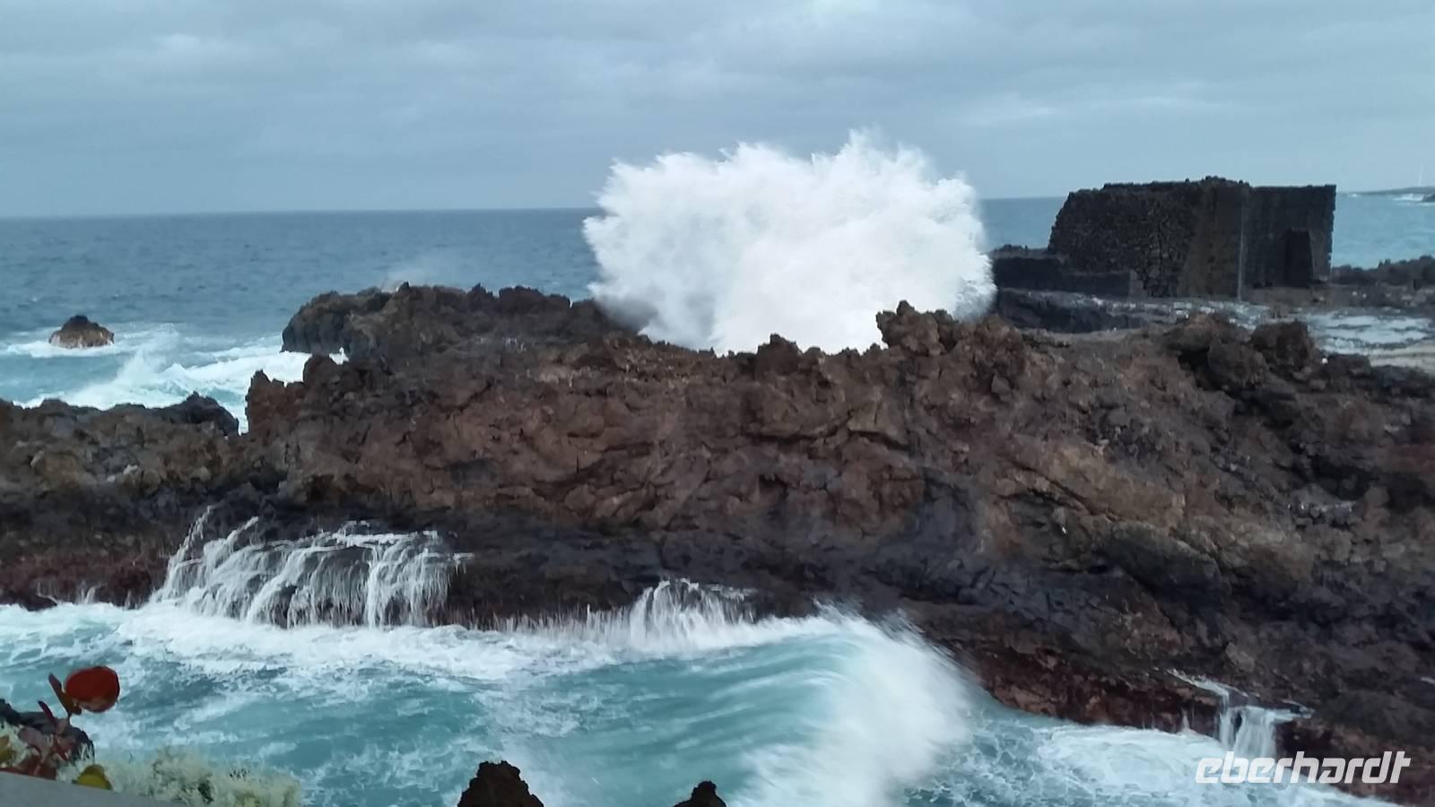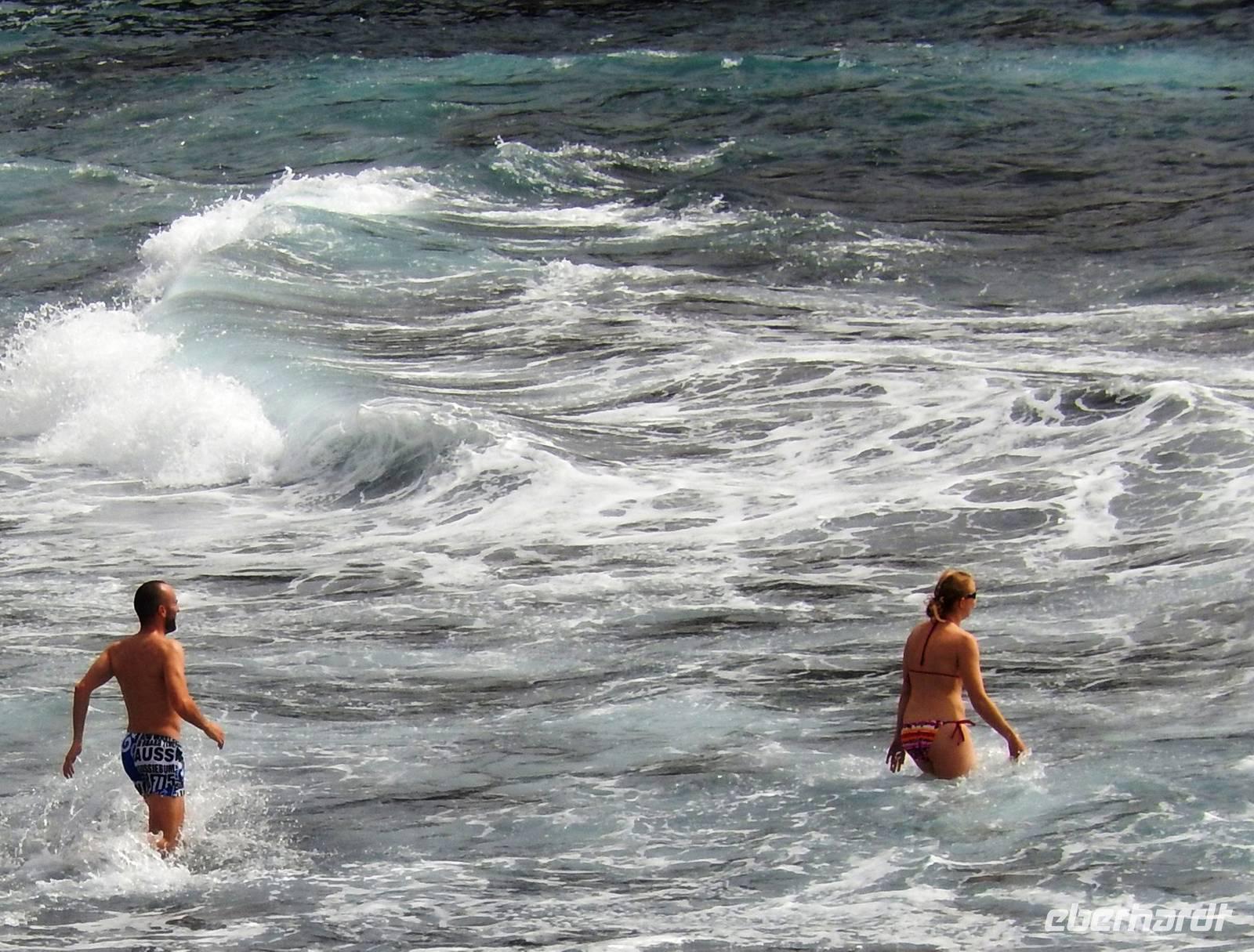 Auf dem Rückweg zum Hotel konnten wir beim Tima Aussichspunkt die so berühmten Passatwolken bestaunen, die vom Osten La Palmas in den Westen ziehen. Sie entstehen durch die Feuchtigkeitsaufnahme des extrem trockenen Grundpassats. Die Passatwolken zählen zu den sogenannten Schönwetterwolken und zeigen die Höhenlage der Passatinversion an. Typischerweise steigen die Passatwolken tagsüber bis auf eine Höhe von 1000 Metern auf. In den Staulagen der Gebirge können die Wolken auch höher aufsteigen, die Passatinversion begrenzt aber auch hier einen weiteren Aufstieg, so dass auch in diesem Fall bestenfalls ein leichter Sprühregen auftreten kann. Nachts lösen sich die Passatwolken wieder auf. Geheimnisse der Natur. Detlef wollte uns noch weiter überraschen und wir fuhren kurz zum Tazacorte wo man Eis bestellen könnten und Benjamin ging wieder schnell ab ins Wasser und schon war er wieder trocken.