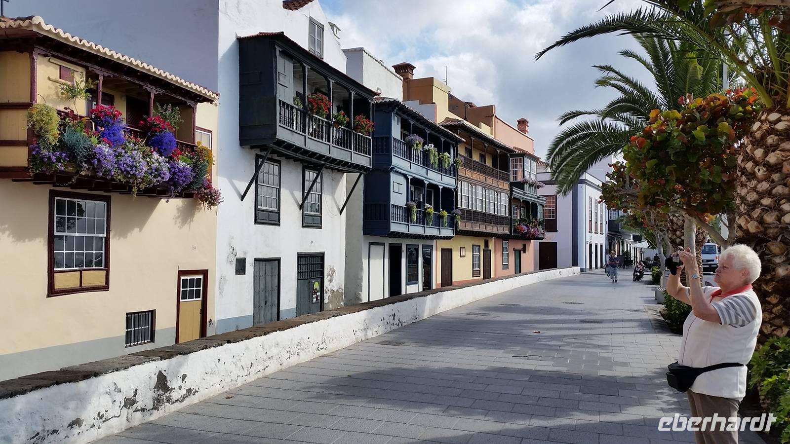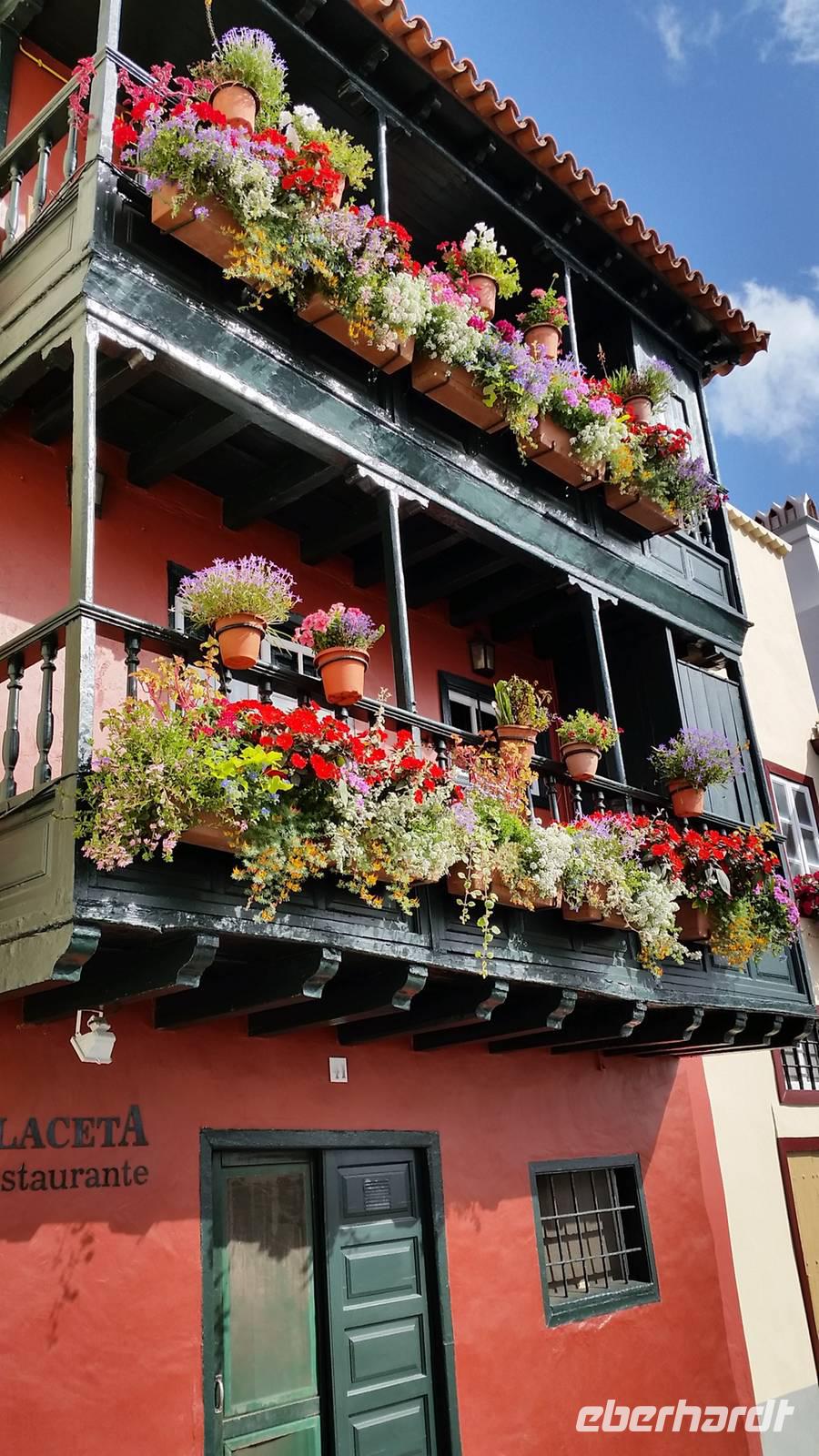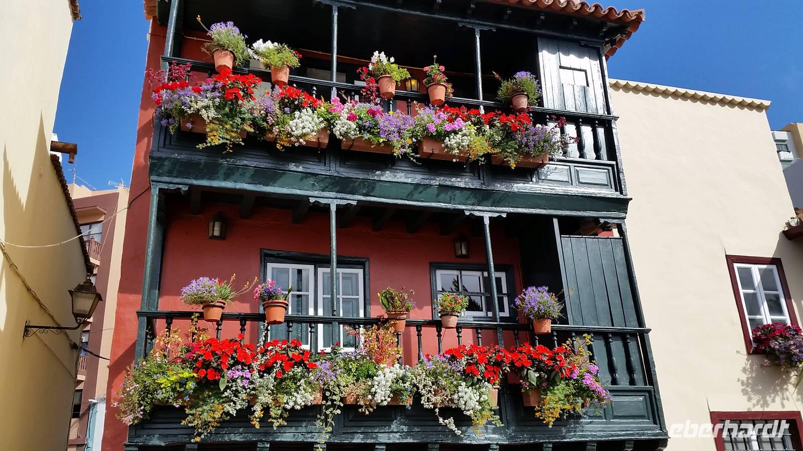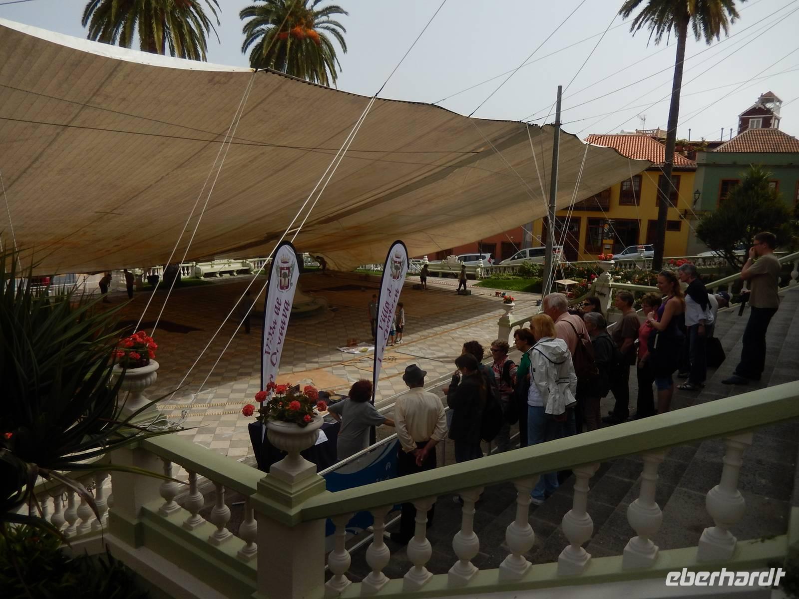 Wir besuchten das Rathaus und auf dessen Balkon sahen wir einen Platz, wo die Künstler die Erstellung des berühmten Teppichs für die Prozession von Frohleichnahm (Corpus Christi) vorbereiten. Später besuchten wir die "Casa de los Balcones", eines der bekanntesten alten Häuser mit wunderschönen Balkonen aus Holz. Das Casa de los Balcones wurde 1632 erbaut und fasziniert durch seinen typisch kanarischen Baustil. Hier bestand auch die Möglichkeit, landestypische Kunsthandwerke zu kaufen. Besonders beeindruckend waren die kanarisch traditionellen Trachten, Ton- und Keramikarbeiten sowie die für die Kanaren typischen Stickereien.