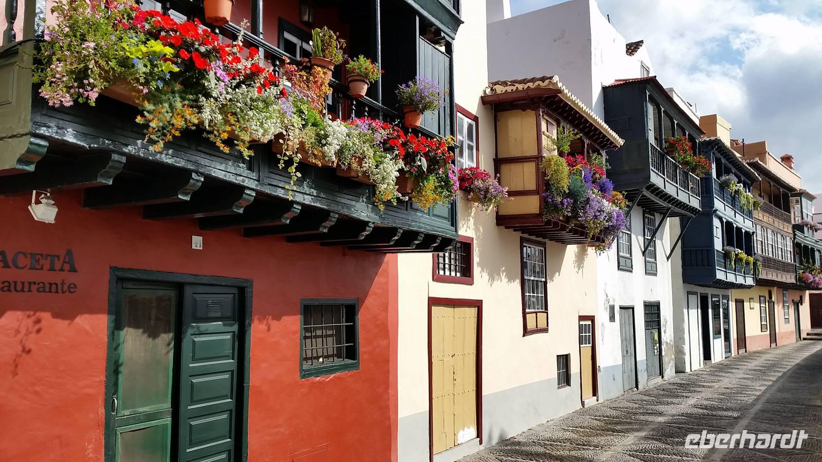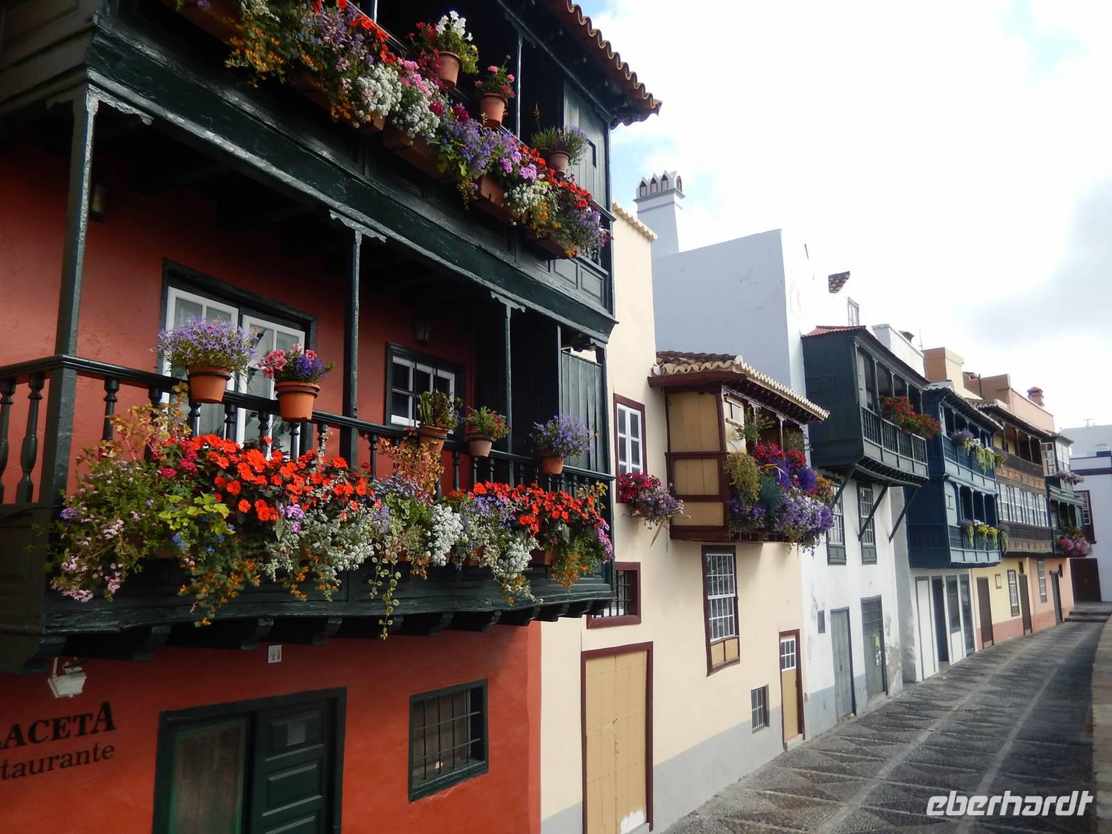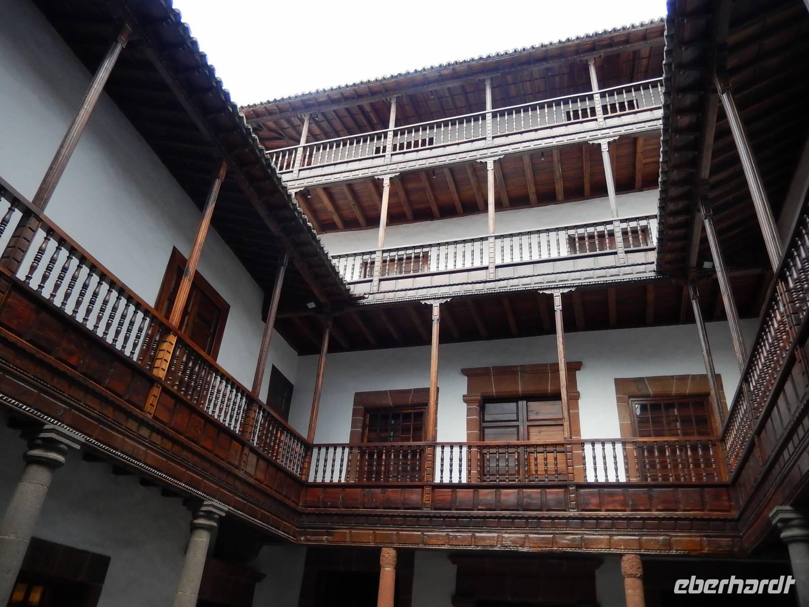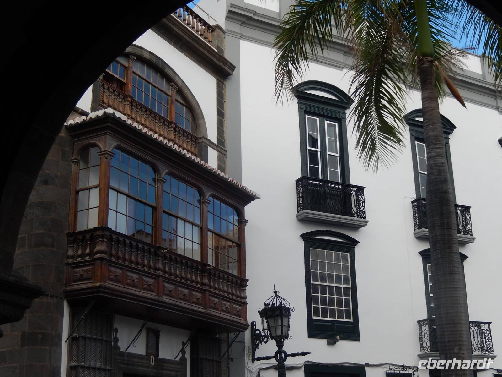 Wir besuchten das Rathaus und auf dessen Balkon sahen wir einen Platz, wo die Künstler die Erstellung des berühmten Teppichs für die Prozession von Frohleichnahm (Corpus Christi) vorbereiten. Später besuchten wir die "Casa de los Balcones", eines der bekanntesten alten Häuser mit wunderschönen Balkonen aus Holz. Das Casa de los Balcones wurde 1632 erbaut und fasziniert durch seinen typisch kanarischen Baustil. Hier bestand auch die Möglichkeit, landestypische Kunsthandwerke zu kaufen. Besonders beeindruckend waren die kanarisch traditionellen Trachten, Ton- und Keramikarbeiten sowie die für die Kanaren typischen Stickereien.