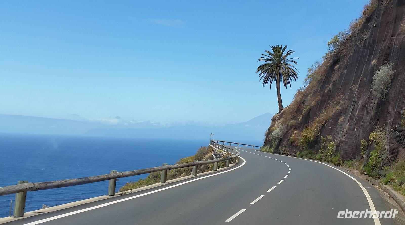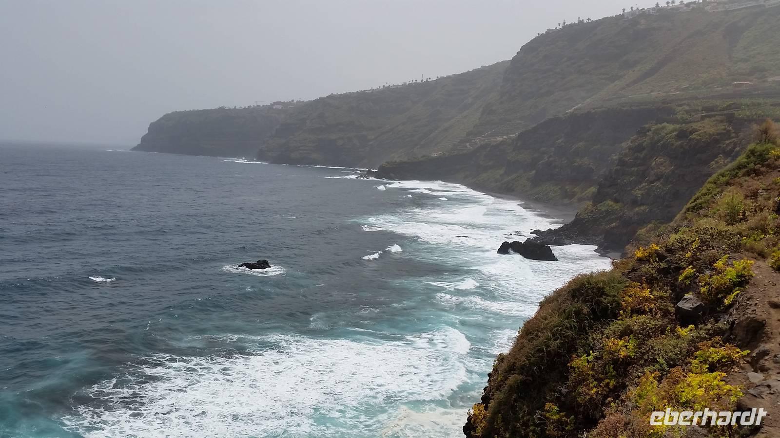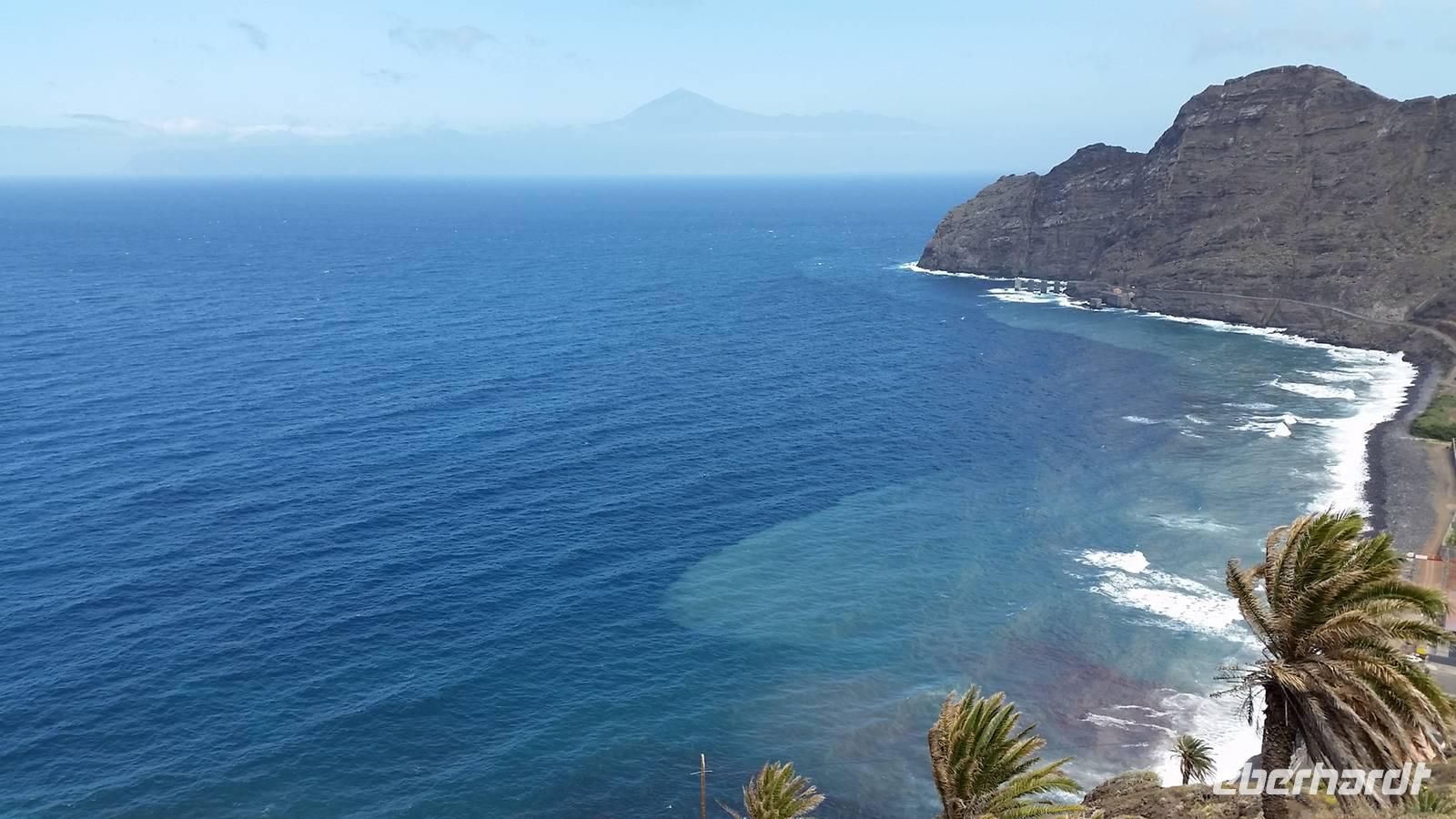 Vom Nordwesten der Insel fuhren wir nun weiter in Richtung Süden. Dabei machten wir eine kurze Pause am Aussichtspunkt von Garachico (heute aber mit Nebel), bevor wir den Gipfel Erjos überquerten, um nach Los Gigantes zu gelangen, wo uns die zweithöchste Steilküste der Welt erwartete. Die Steilküste, genannt Acantilados de los Gigantes, besteht aus gigantischen Felsen, welche an dieser Stelle bis zu 450 Meter senkrecht ins Meer abfallen. Daher kommt auch der Name, welcher in deutscher Übersetzung „Klippen der Riesen" lautet. Wunderschön.