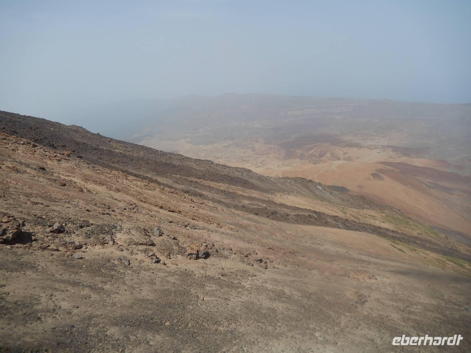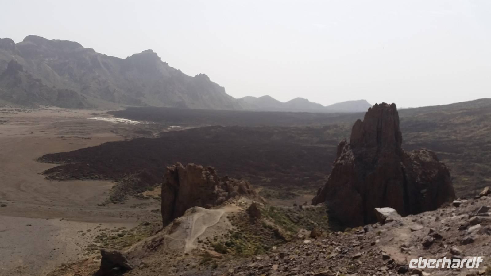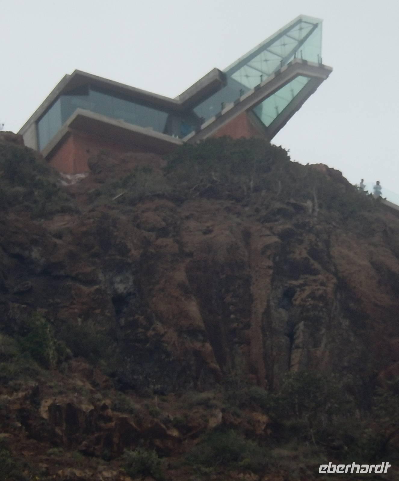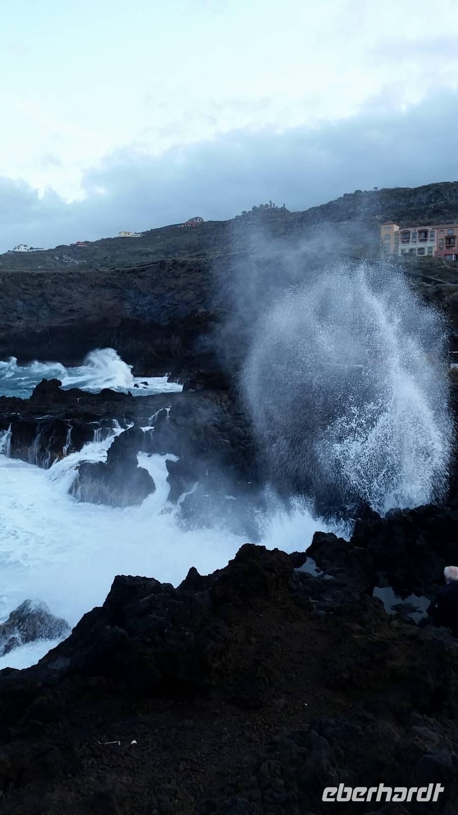 Vom Nordwesten der Insel fuhren wir nun weiter in Richtung Süden. Dabei machten wir eine kurze Pause am Aussichtspunkt von Garachico (heute aber mit Nebel), bevor wir den Gipfel Erjos überquerten, um nach Los Gigantes zu gelangen, wo uns die zweithöchste Steilküste der Welt erwartete. Die Steilküste, genannt Acantilados de los Gigantes, besteht aus gigantischen Felsen, welche an dieser Stelle bis zu 450 Meter senkrecht ins Meer abfallen. Daher kommt auch der Name, welcher in deutscher Übersetzung „Klippen der Riesen" lautet. Wunderschön.