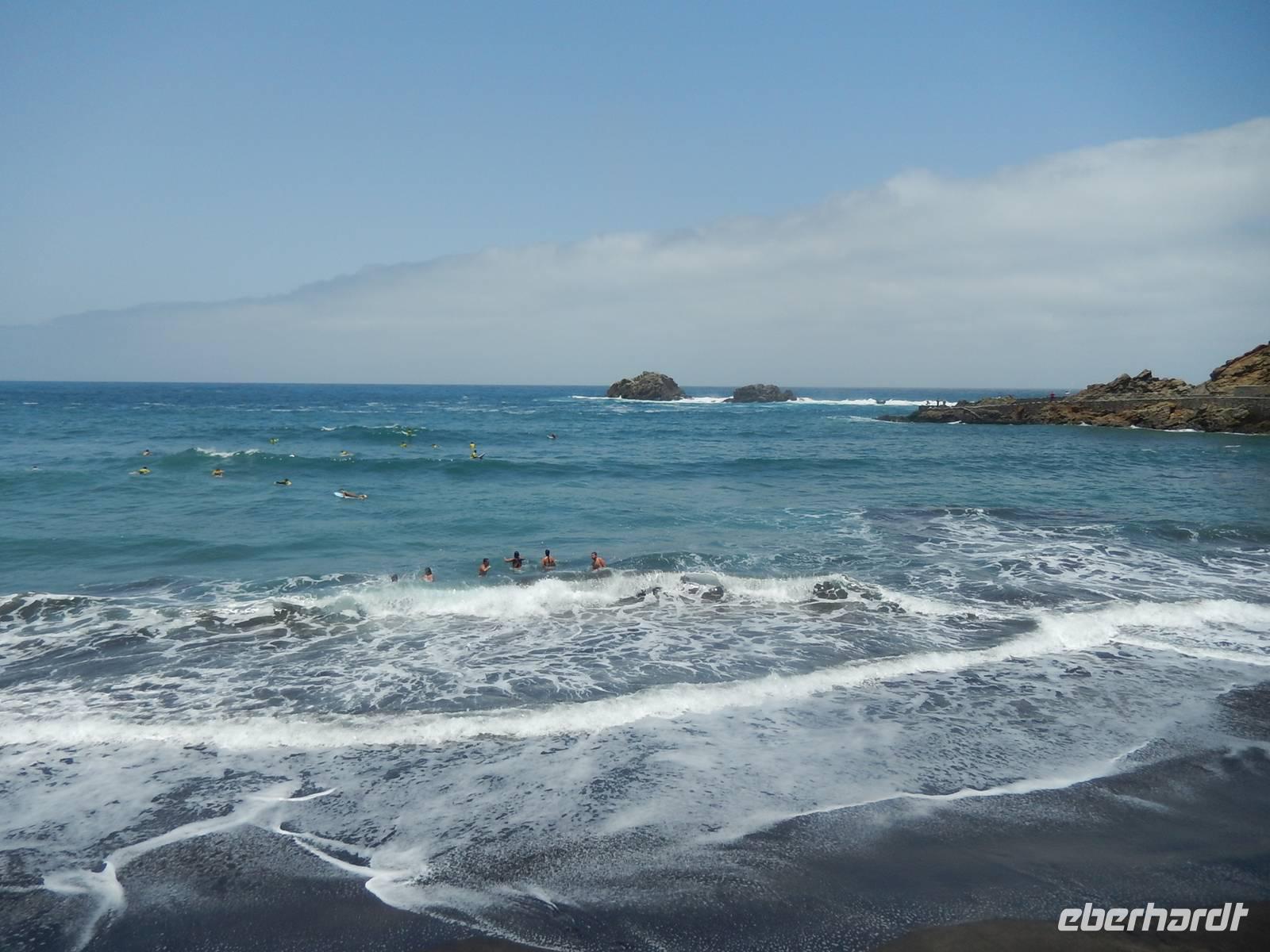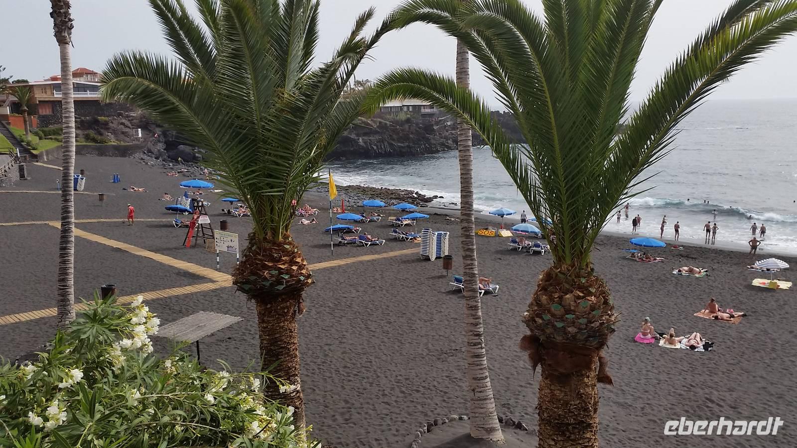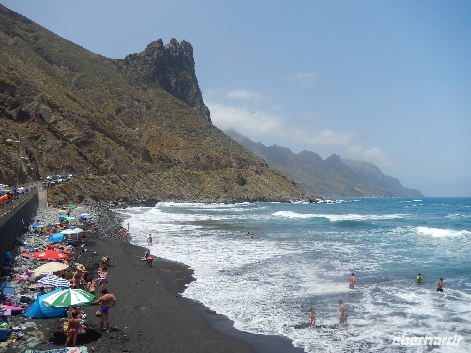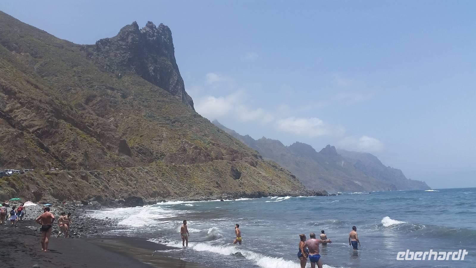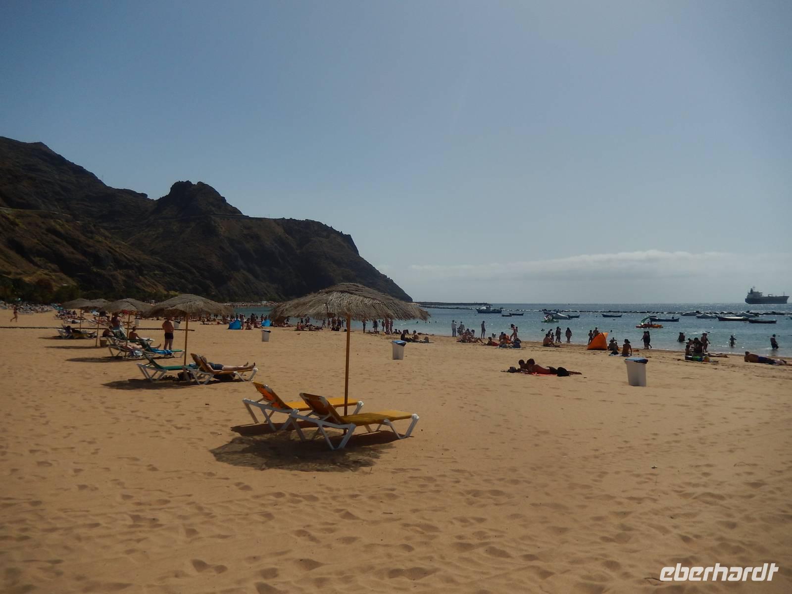 Als nächstes gingen zum 1,5 Kilometer langen, weißen Palmenstrand von Las Teresitas, welcher einem karibischen Traumstrand keinesfalls nachsteht. Zum heutigen Sonntag war es leider ziemlich voll, da auch viele Einheimische den sonnigen Tag zum Baden nutzen wollten.