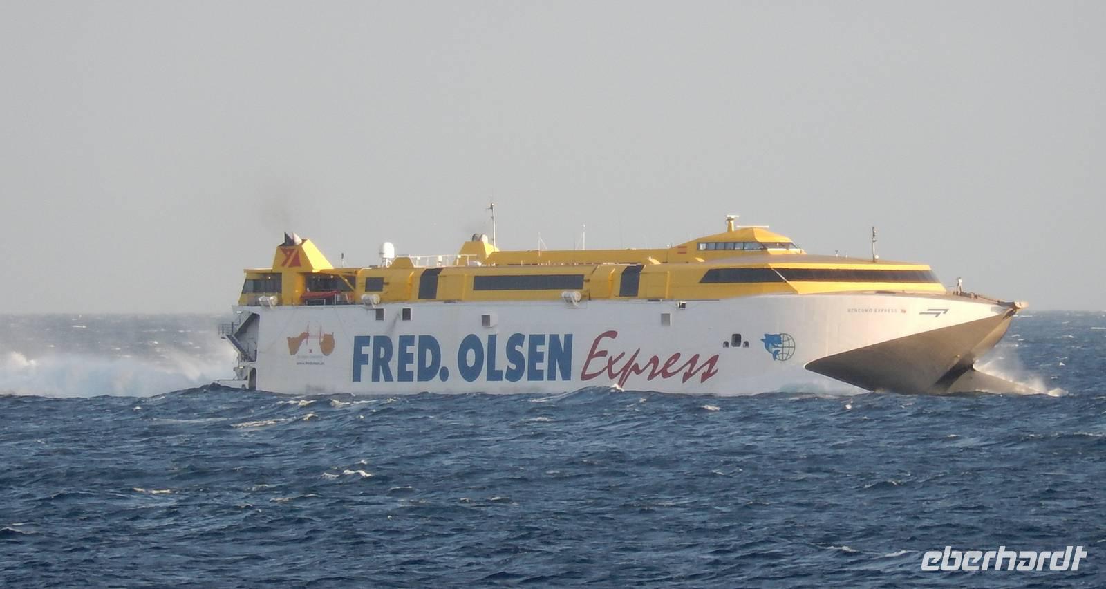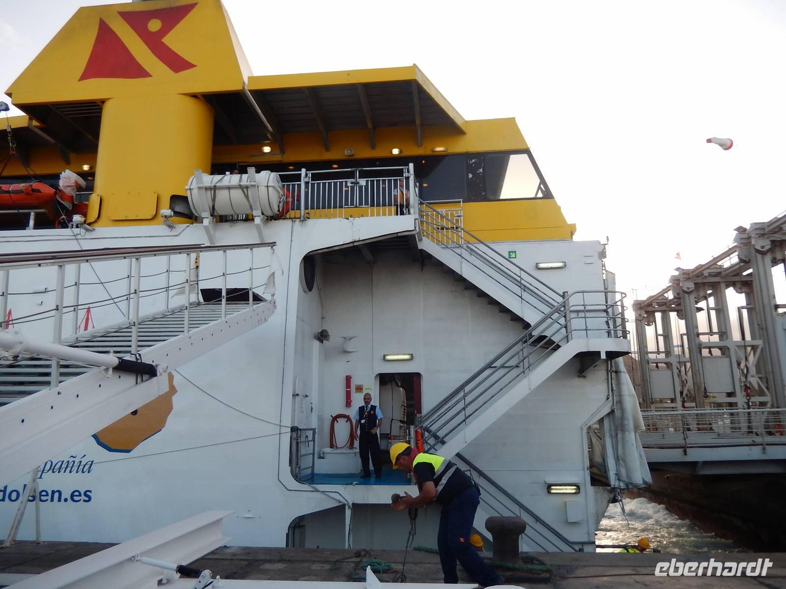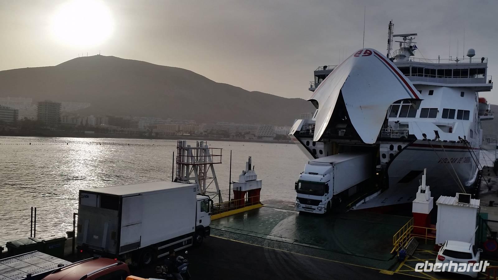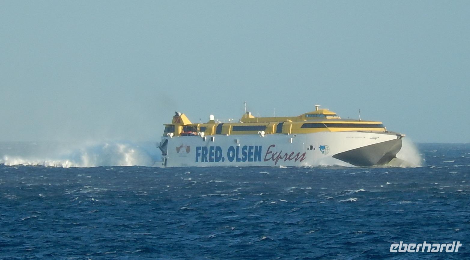 Um nicht seekrank zu werden, ist es besser, auf der Fähre nicht ganz vorn zu sitzen. Aber heute war das Meer nicht besonders ruhig und 2 von uns hatten kleine Schwierigkeiten. Die Fahrt war herrlich, vorbei an der Nordküste La Gomeras, mit Blick auf den Teide und die Steilküste von Los Gigantes und mit einem unvergesslichen Sonnenuntergang auf dem Meer. 2 Stunden später am Abend erreichten wir La Palma und wurden zu unserem wunderschönen Apparhotel Las Olas in Los Cancajos chauffiert. Wir waren schon müde und mit dem Lied „Sandmann, lieber Sandmann" gingen wir ins Bett.